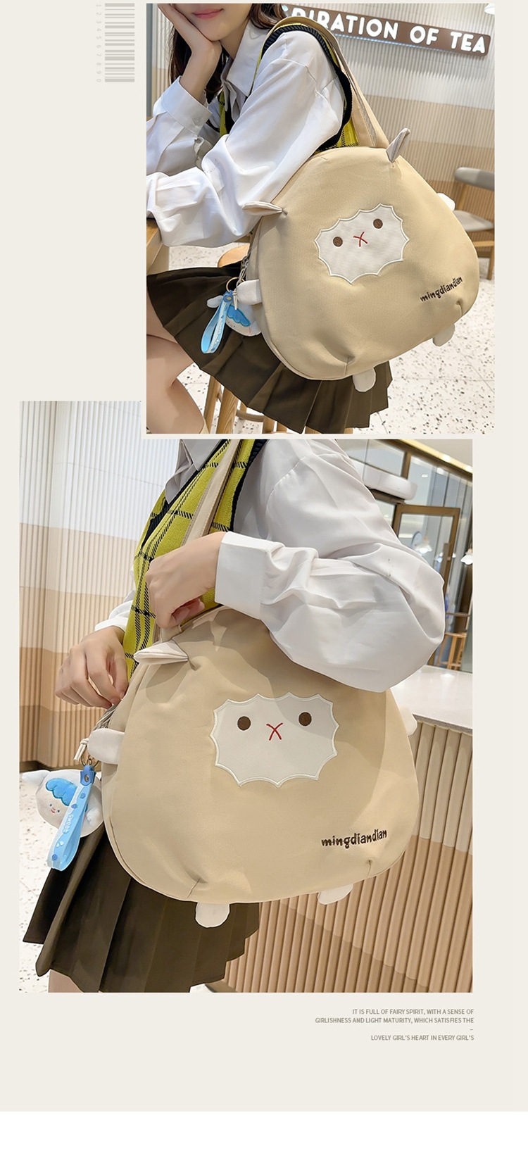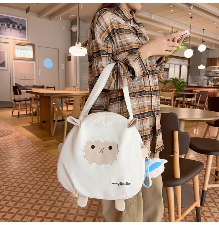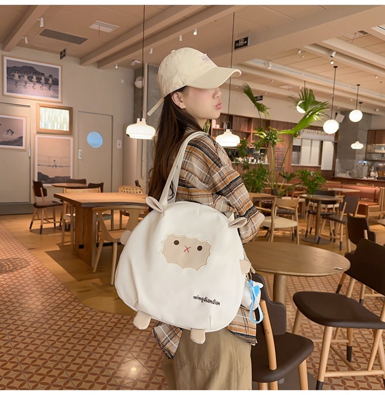 일본식 귀여운 양고기 숄더백 2023 새로운 부드러운 귀여운 소녀 토트백 학생 수업 핸드백 쇼핑백스토어 가기