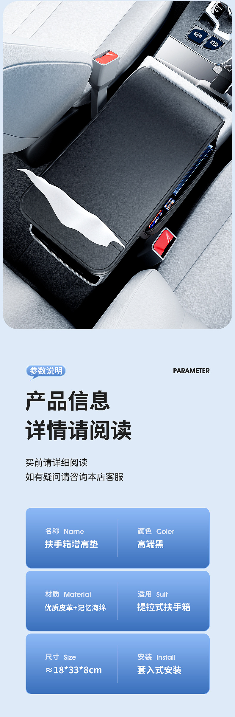 자동차 팔걸이 박스 높이 조절 패드 범용 차량용 팔걸이 패드 차량용 중앙 고급 팔걸이 티슈 박스 자동차 인테리어스토어 가기