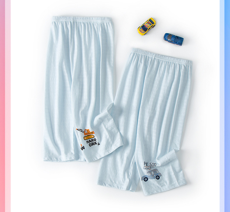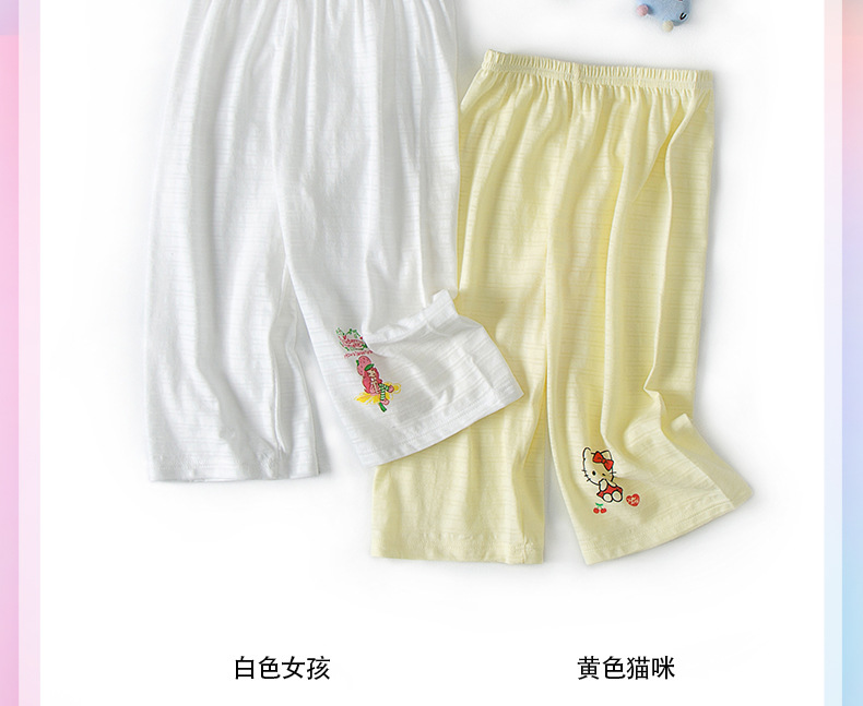 어린이 면 크롭 팬츠 남성용 및 여성용 보물 대나무 면 얇은 느슨한 미드 웨이스트 반바지 홈베이스 파자마 팬츠 2 팩스토어 가기