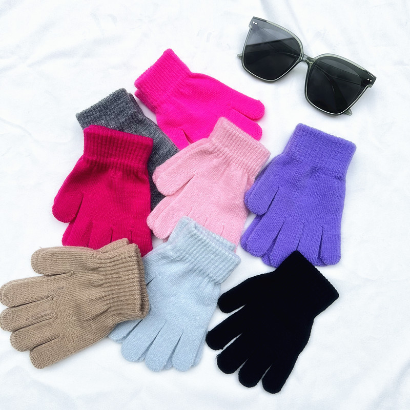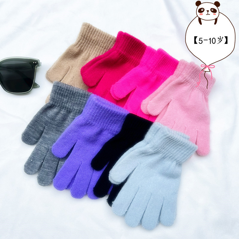 어린이 니트 따뜻한 장갑 가을과 겨울 신학생 다섯 손가락 단색 방한 장갑 소년과 소녀 겨울 장갑