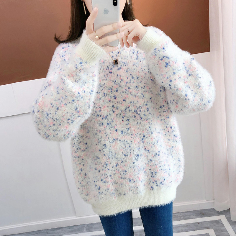한국 스타일 모조 밍크 풀오버 캐시미어 스웨터 여성용 2023 가을과 겨울 새로운 느슨한 게으른 스타일 여성용 두꺼운 니트 베이스 셔츠스토어 가기