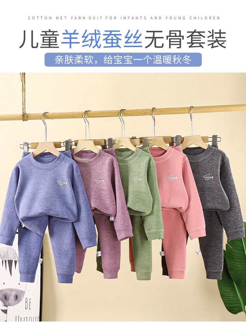 캐시미어 뽕나무 실크 어린이 열 속옷 세트 남녀 독일 벨벳 AB 얼굴 가을 옷 가을 바지 어린이 홈 옷스토어 가기