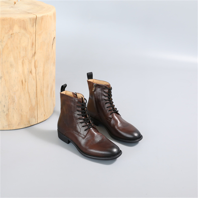 这又是一双重磅胎水牛皮的手工复古短靴