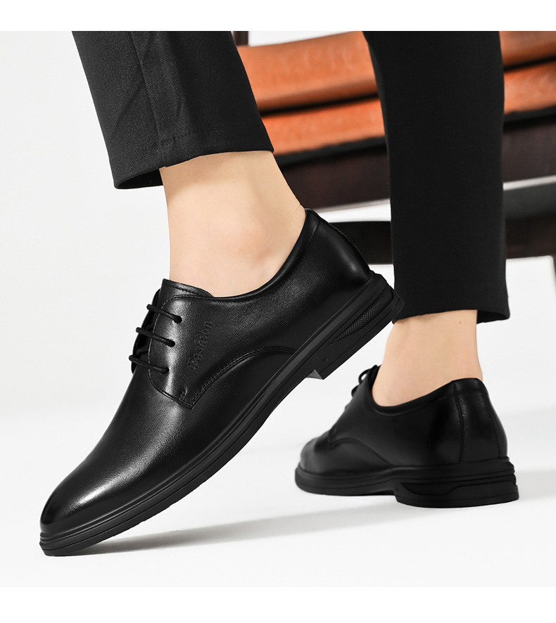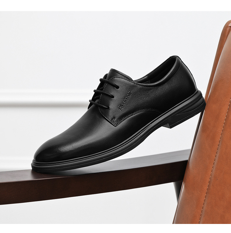 2023 가죽 신발 남자의 비즈니스 원피스 가을 새로운 로우 탑 뾰족한 블랙 가죽 신발 모든 일치 유행 세트 남성 신발스토어 가기