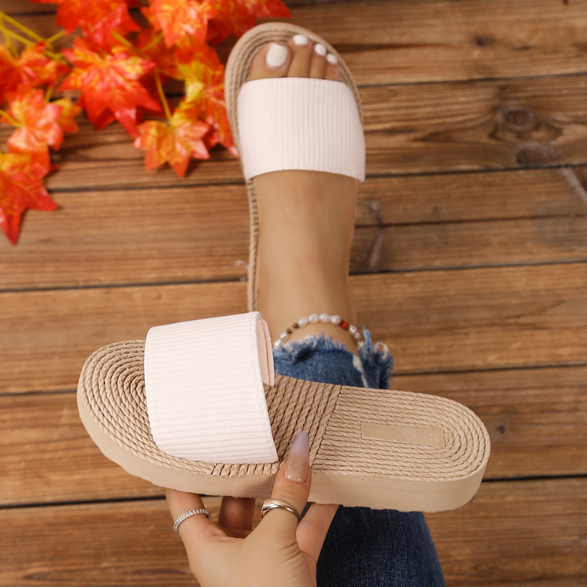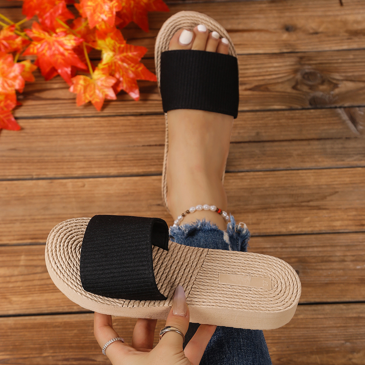 麻绳款号码为压码,一字条为贴标