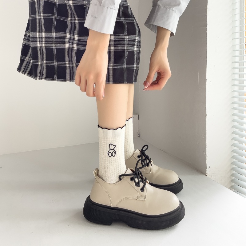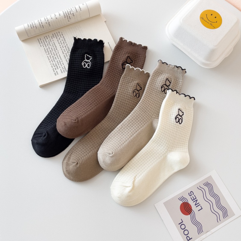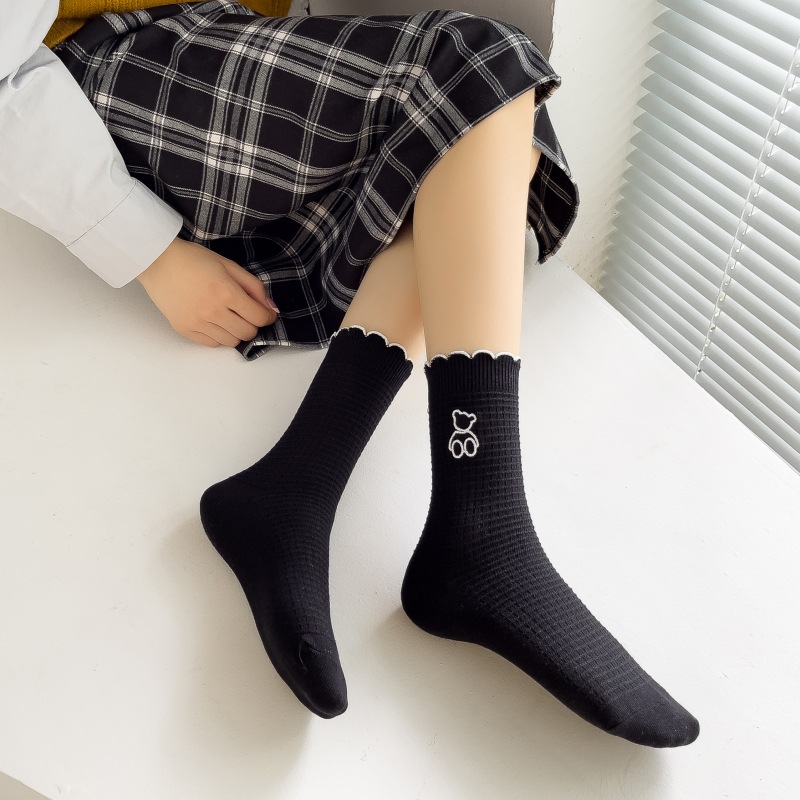 2023 가을과 겨울 새 양말 여성용 자수 팬더 더블 니들 코튼 양말 와플 레이스 미드 튜브 양말 캐주얼 양말스토어 가기