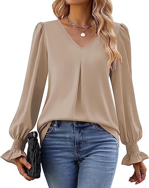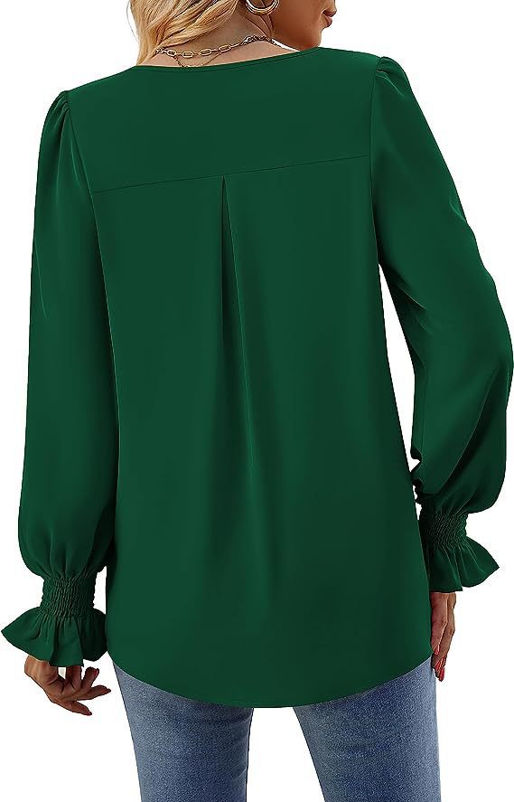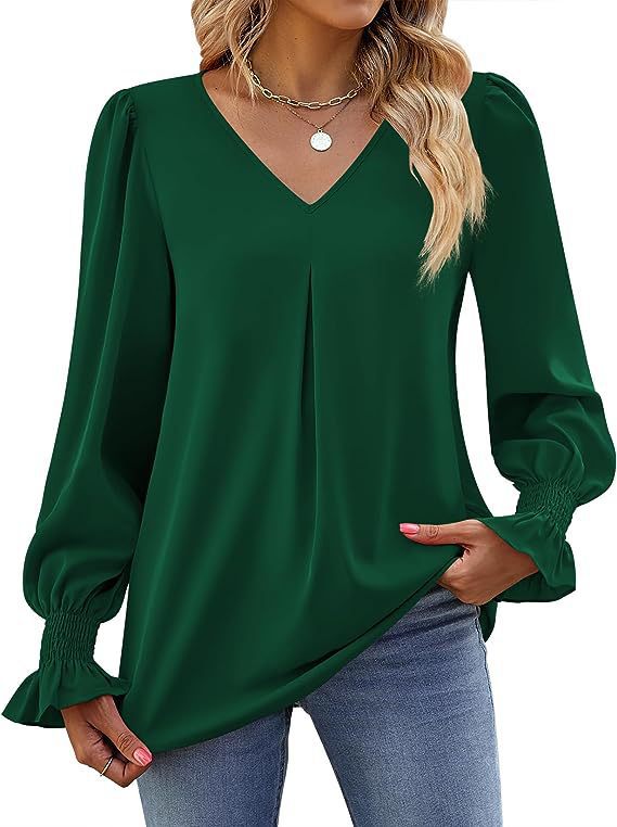 국경 간 유럽과 미국 여성 의류 아마존 가을과 겨울 새로운 단색 쉬폰 셔츠 V-넥 풀오버 혼 긴 소매 셔츠스토어 가기