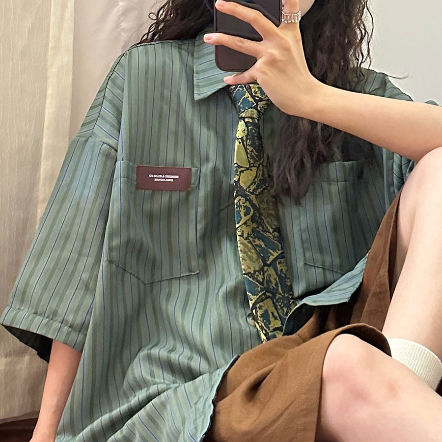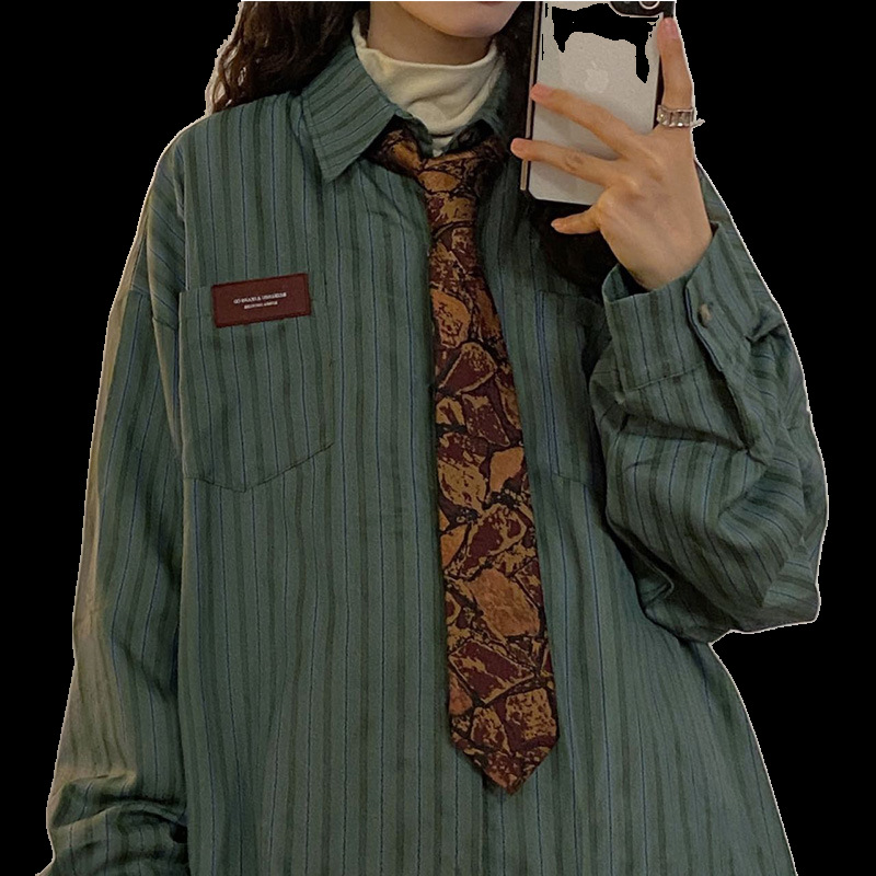 커피 스트라이프 넥타이 복고풍 스타일 대조 색상 녹색 손 넥타이 빈티지 캐주얼 다용도 다크 브라운 트렌디 셔츠