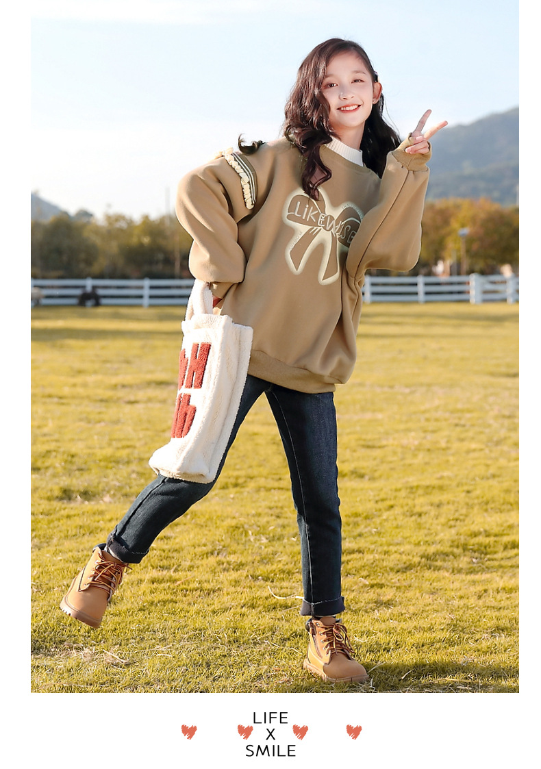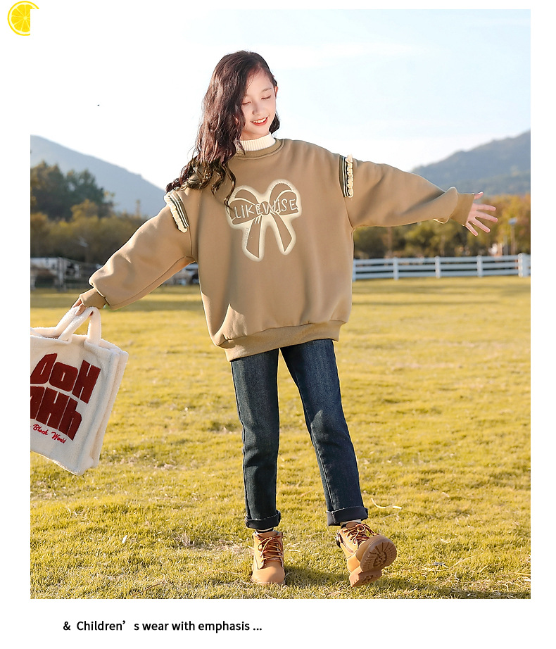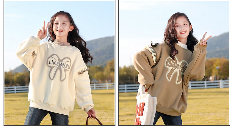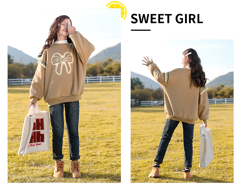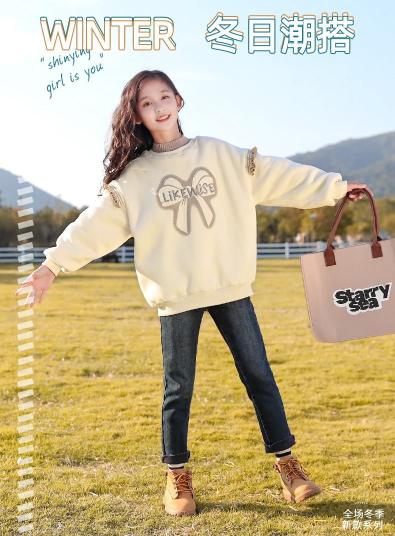 아동복 여아 스웨트 셔츠 가을, 겨울 2025 새로운 스타일 아동 겨울 의류 여아 패션상의 큰 아동 벨벳 옷스토어 가기