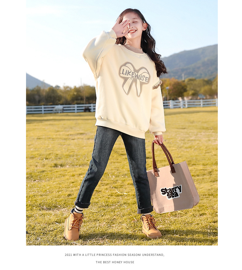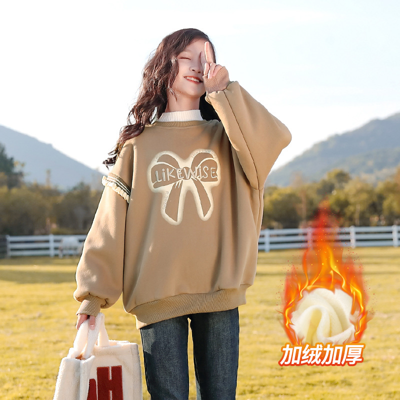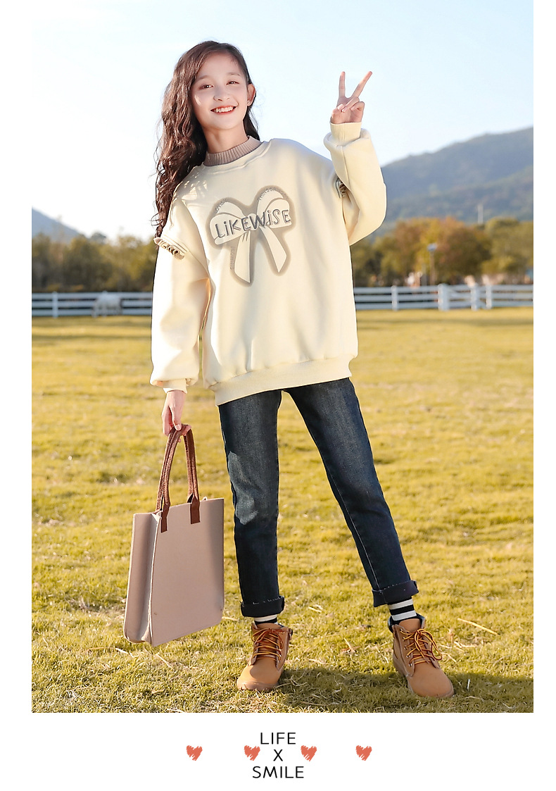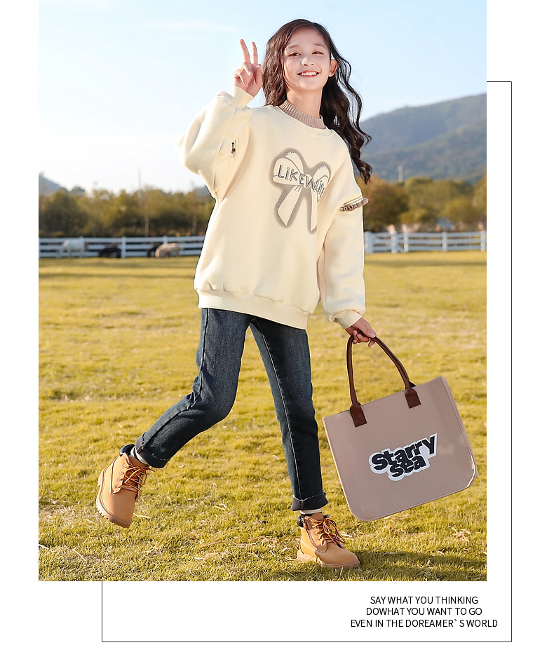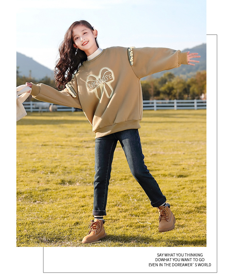 아동복 여아 스웨트 셔츠 가을, 겨울 2025 새로운 스타일 아동 겨울 의류 여아 패션상의 큰 아동 벨벳 옷스토어 가기
