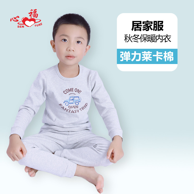 Xinfu 소년 열 속옷 세트 어린이 잠옷 가을과 겨울 가정 의류 어린이 아기의 가을 옷과 바지스토어 가기