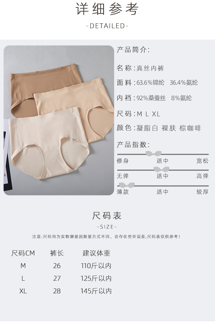 천연 뽕나무 실크 하이 웨이스트 원활한 숙녀 속옷 원피스 원활한 알몸 통기성 실크 반바지 편안한스토어 가기