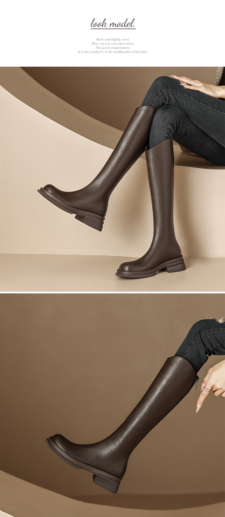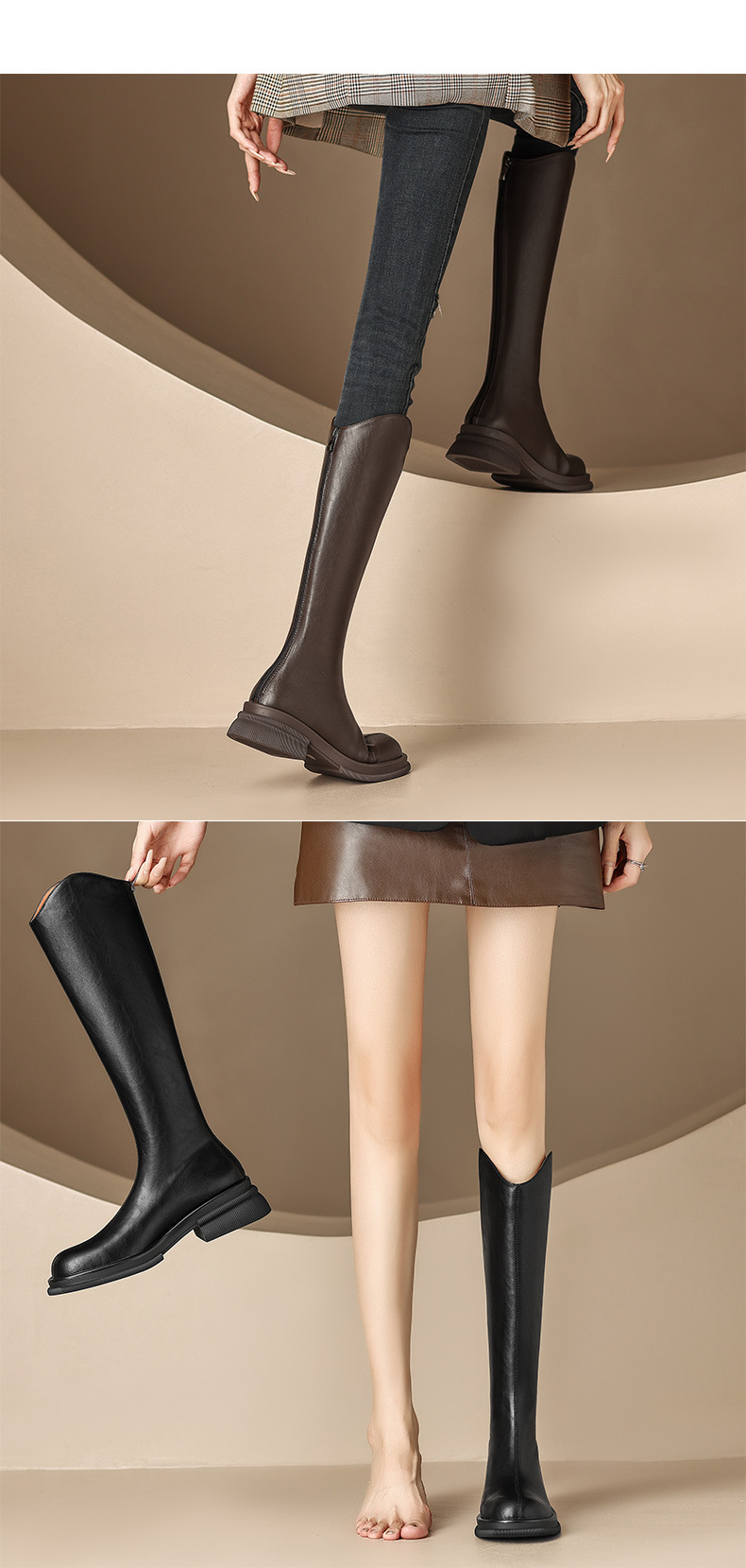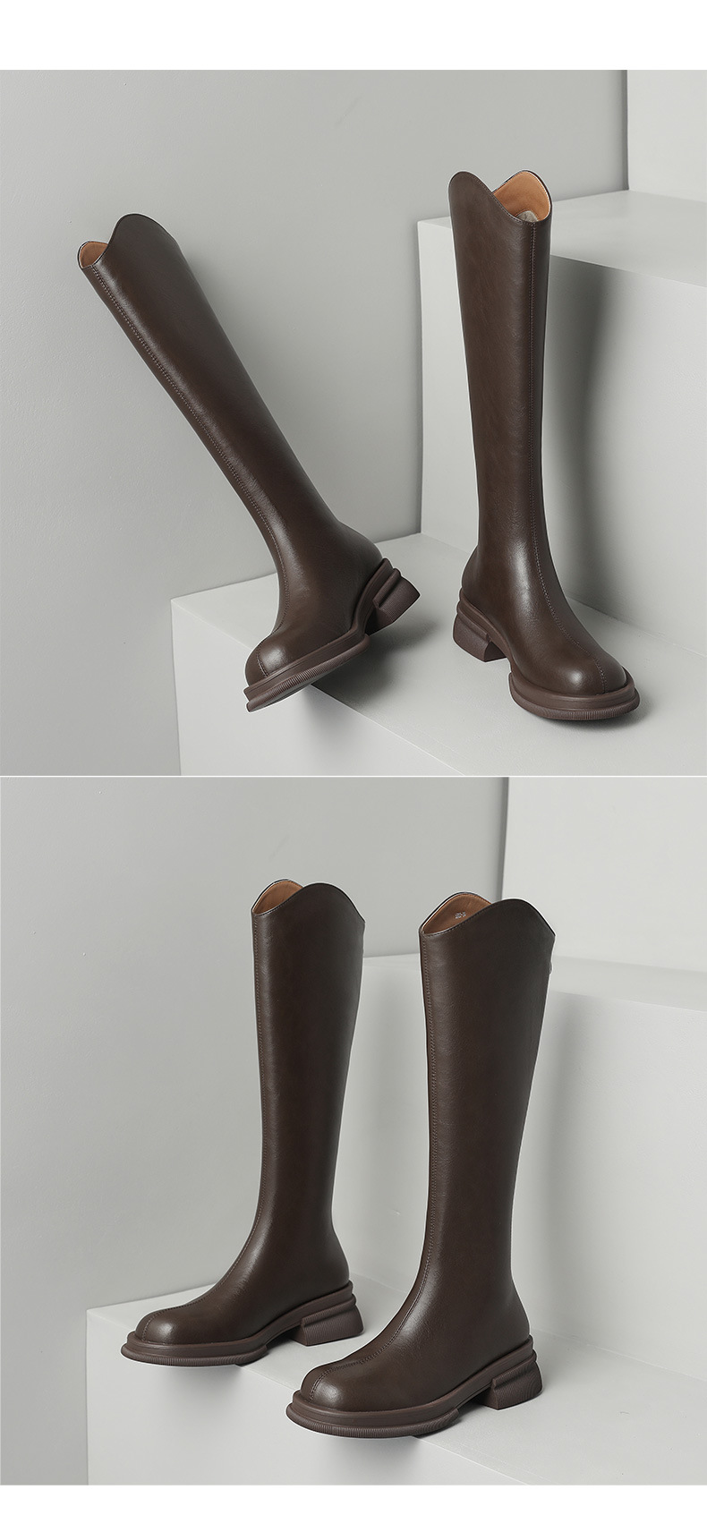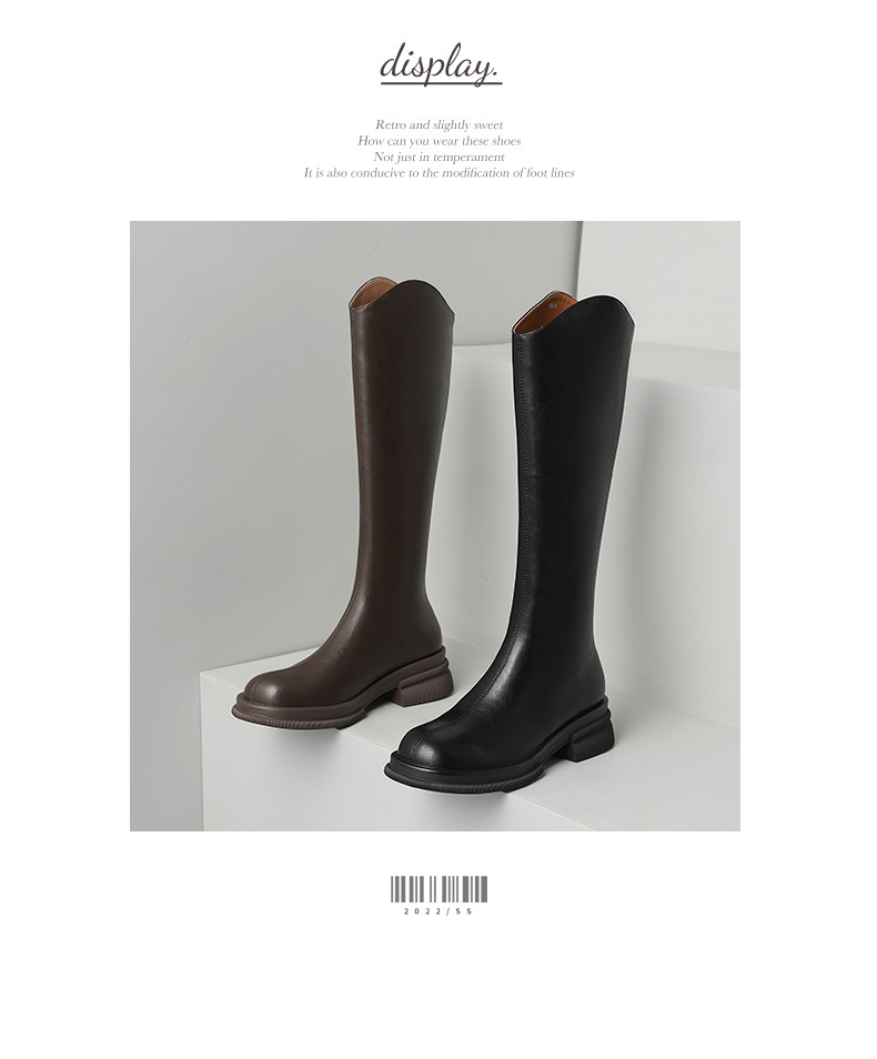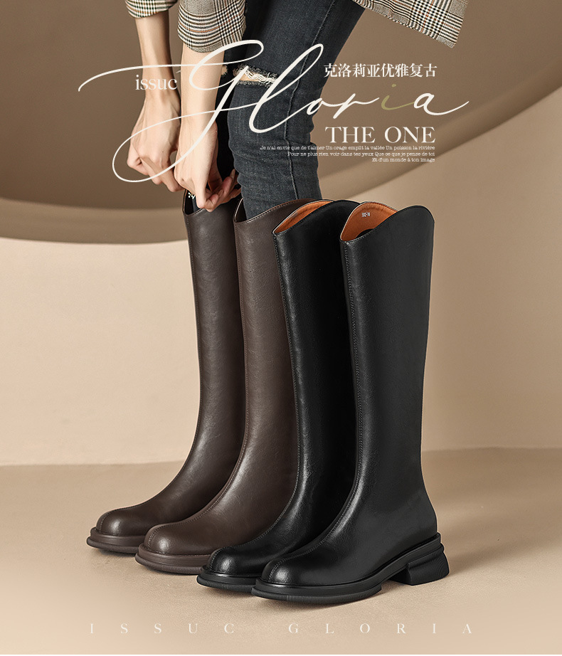 모든 소가죽 부츠 여성 2023 겨울 기모 슬림하지만 무릎 V 부츠 하드 두꺼운 바닥 높은 기사 부츠스토어 가기
