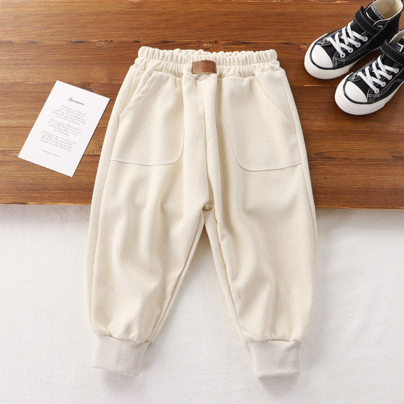 어린이 가을 코듀로이 바지 단색 소년 소녀 캐주얼 바지 큰 어린이 코드 바지