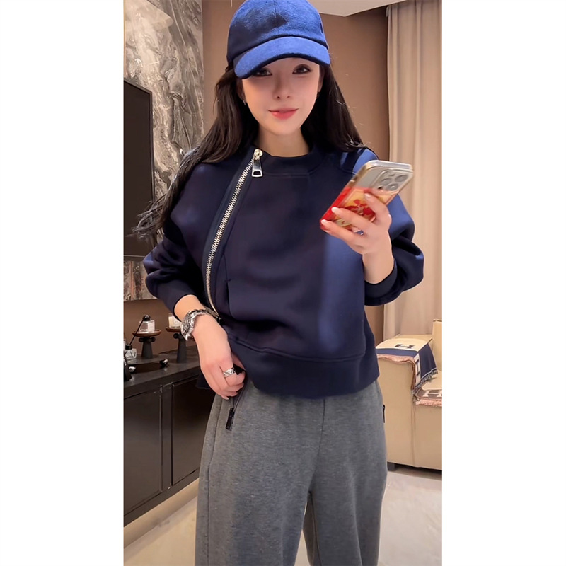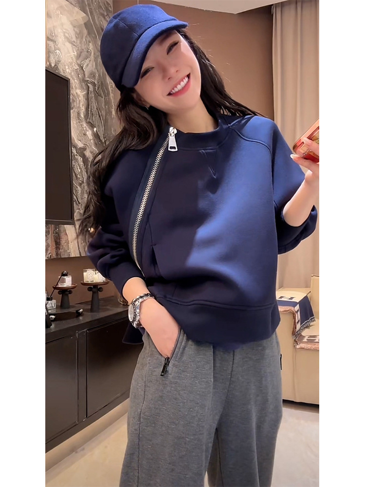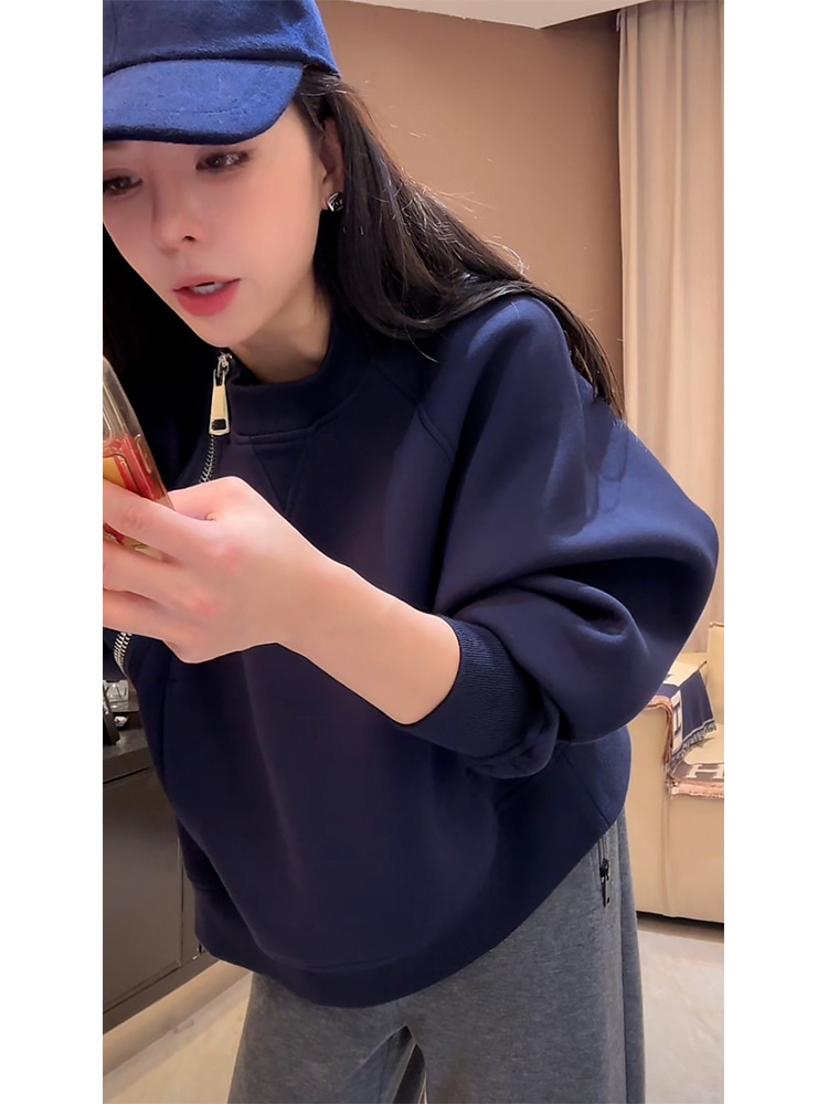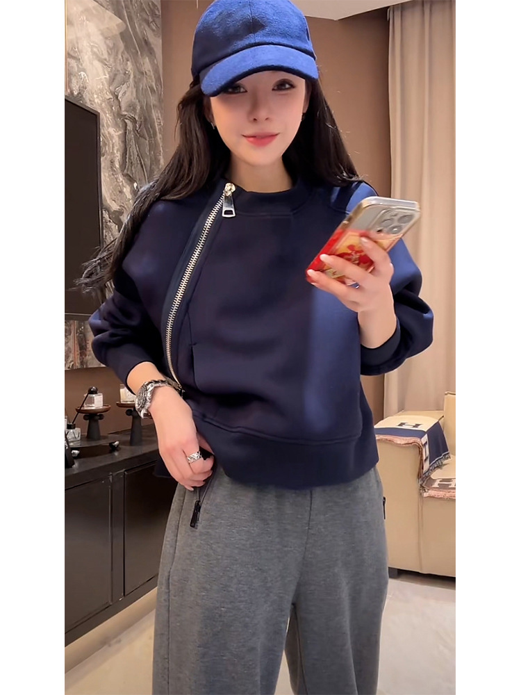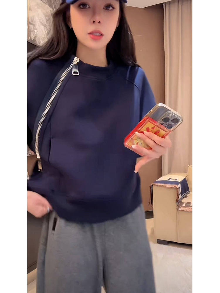 YT91009 가을 새로운 유럽 고급 슈퍼 잘 보이는 느슨한 게으른 바람 긴 소매 네이비 스웨터 짧은스토어 가기