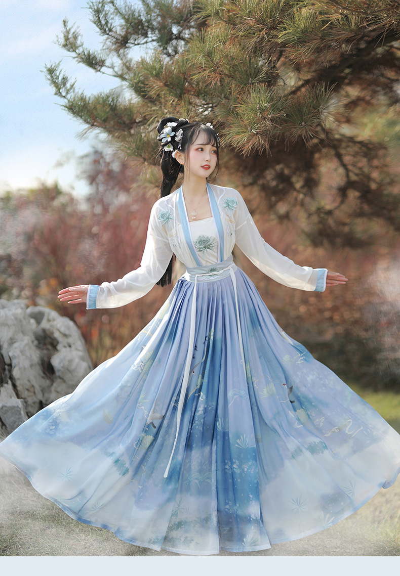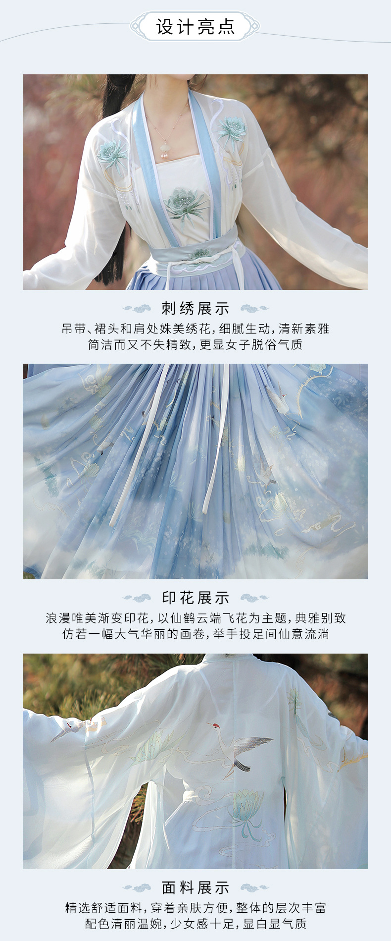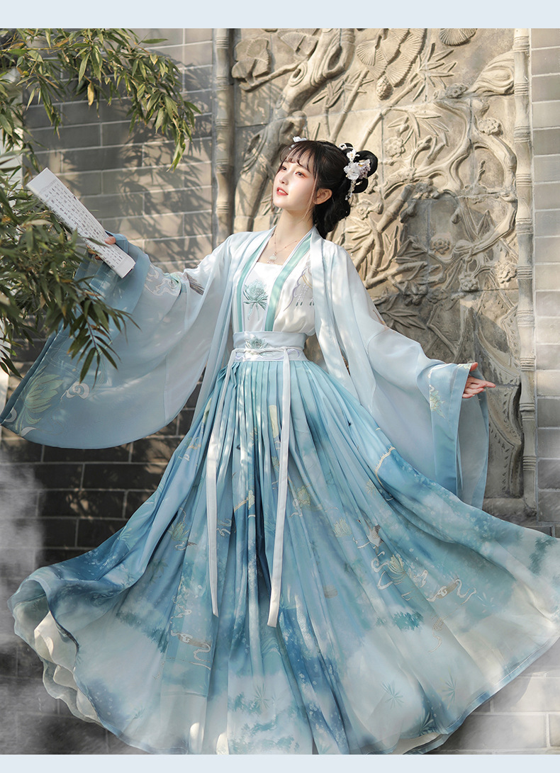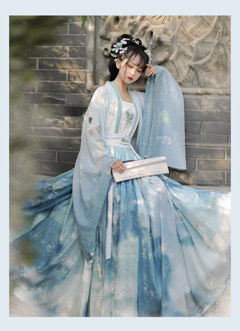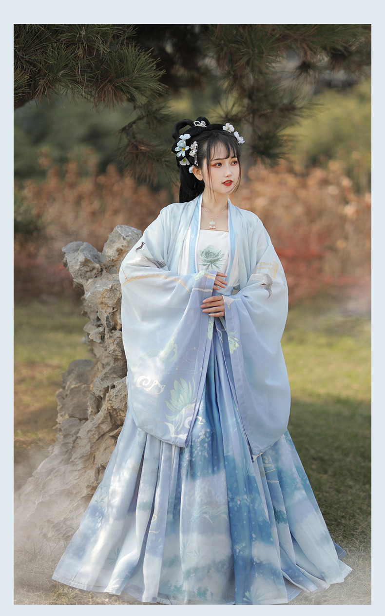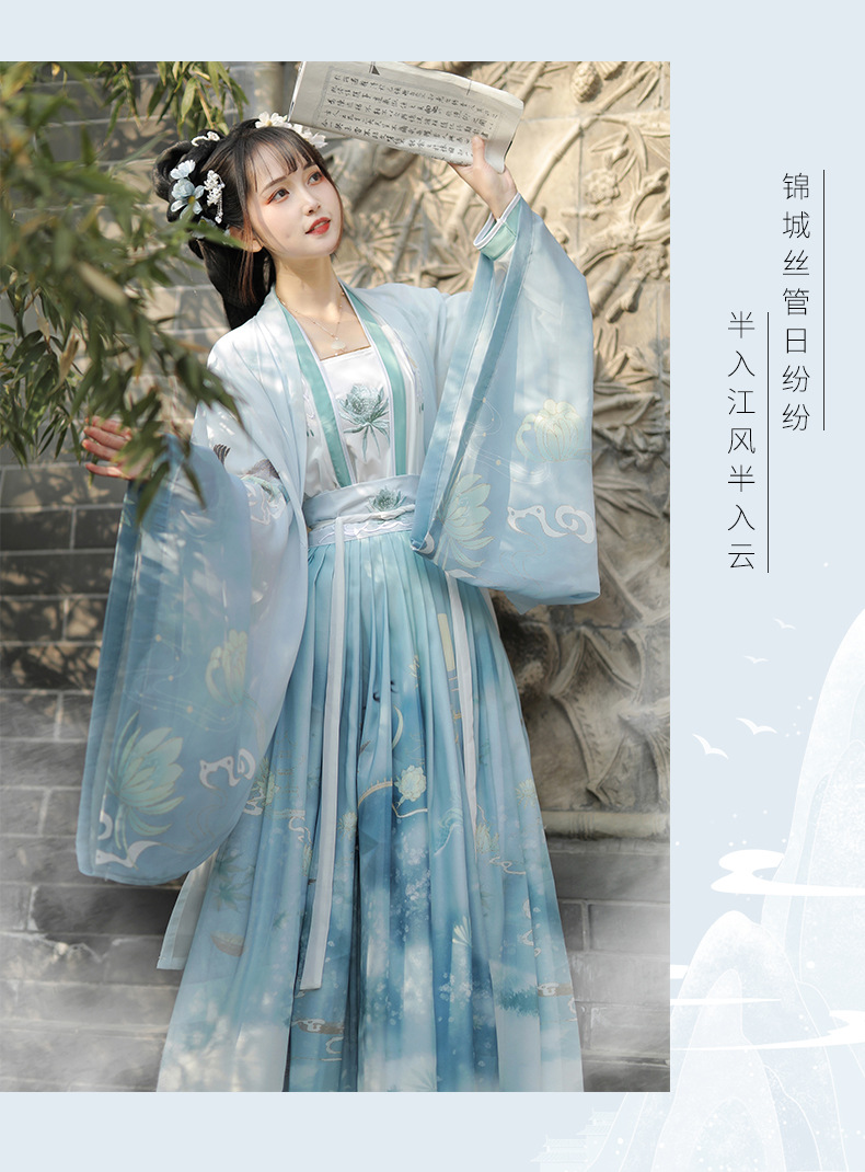 성인 허리 길이 인쇄 Hanfu 여성의 새로운 여름 개선 허리 길이 우아한 요정 스타일 고대 의상 풀 세트 매일 와이드 슬리브 Hanfu스토어 가기