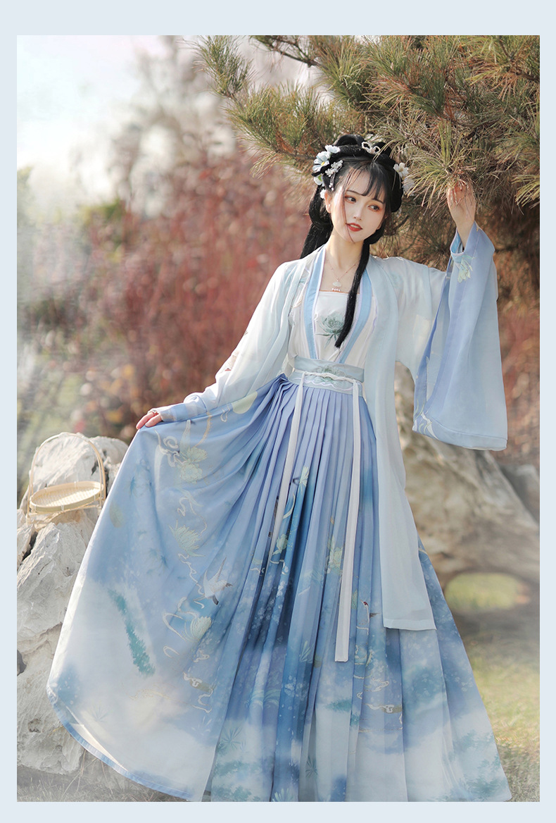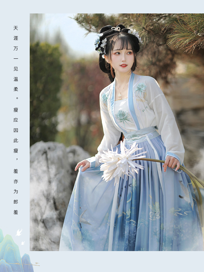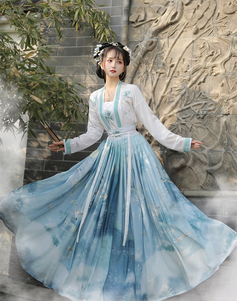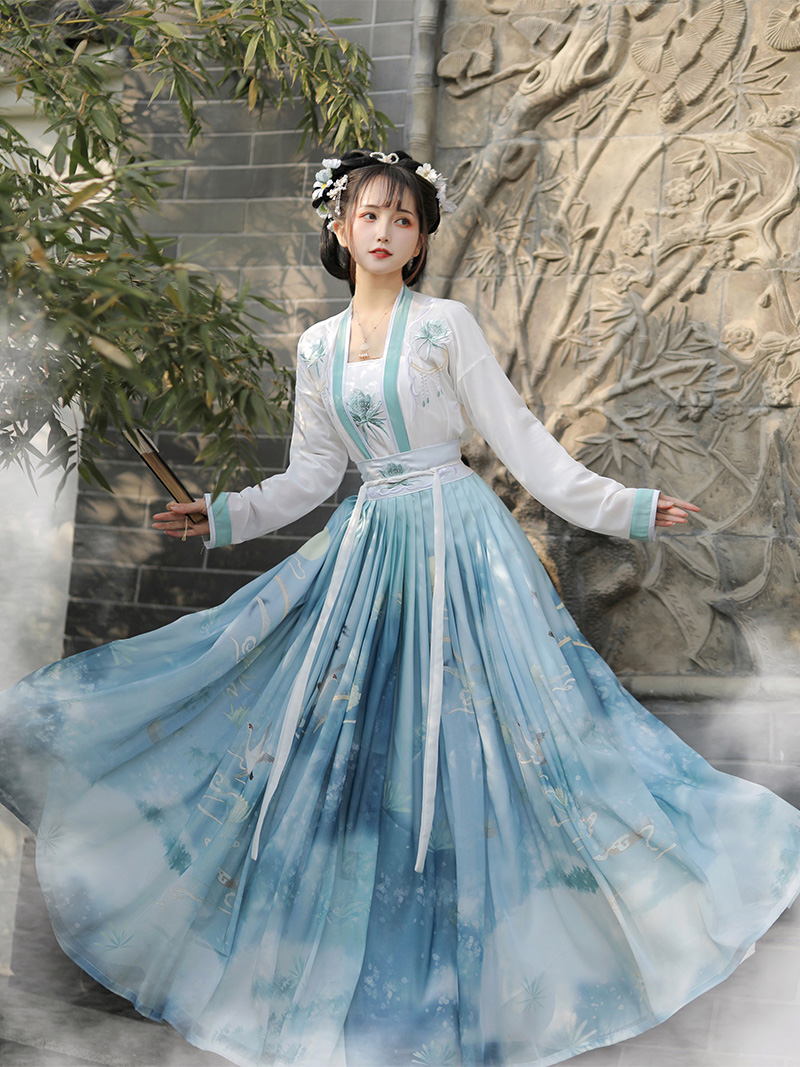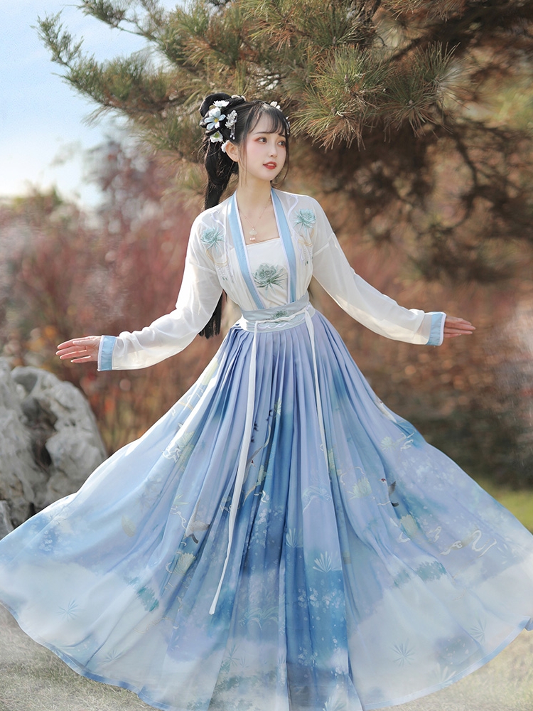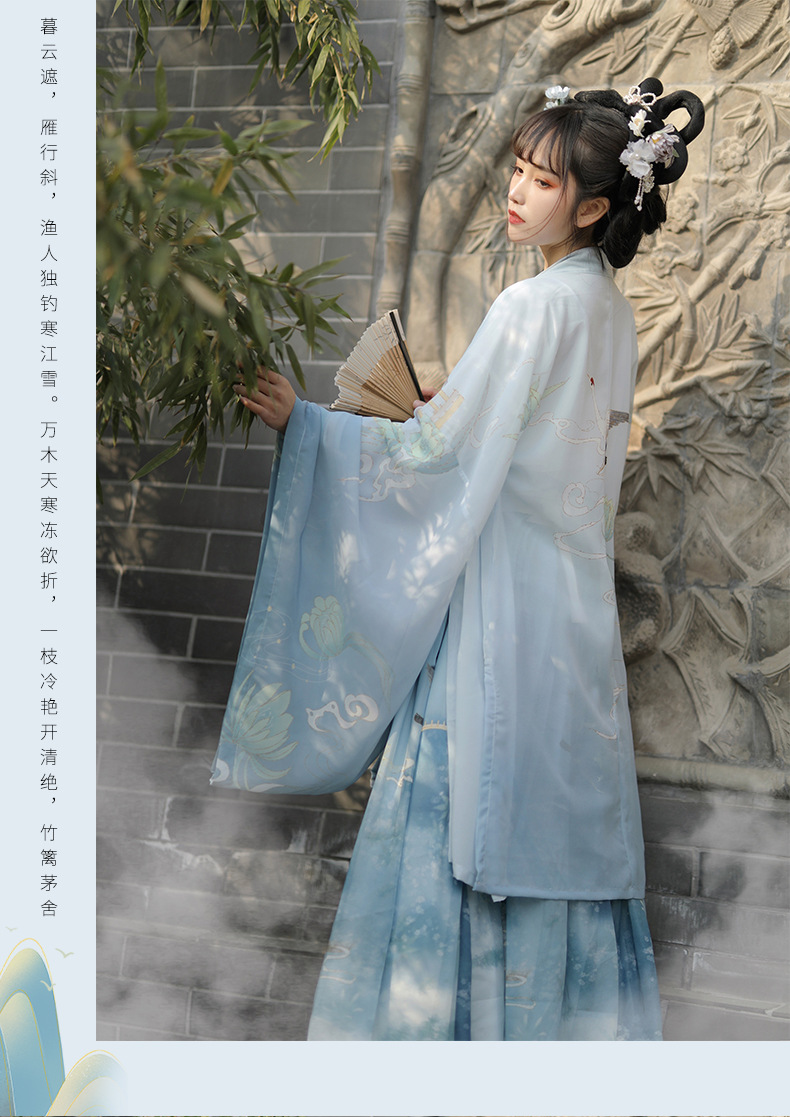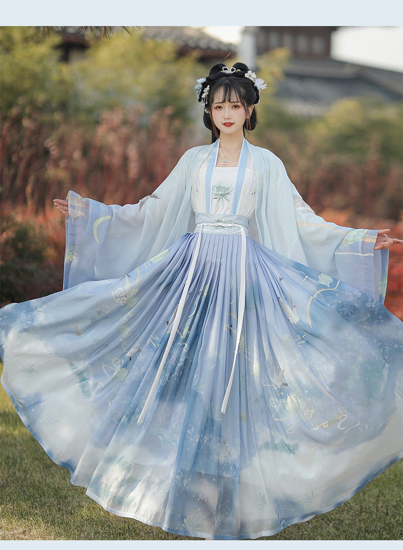 성인 허리 길이 인쇄 Hanfu 여성의 새로운 여름 개선 허리 길이 우아한 요정 스타일 고대 의상 풀 세트 매일 와이드 슬리브 Hanfu스토어 가기