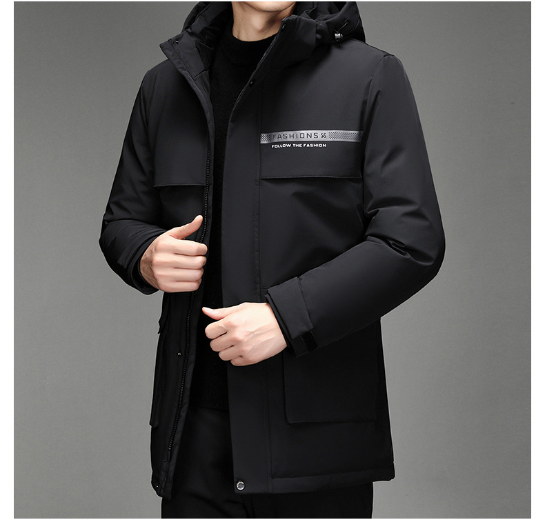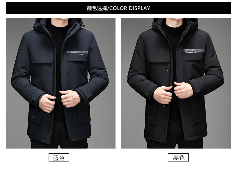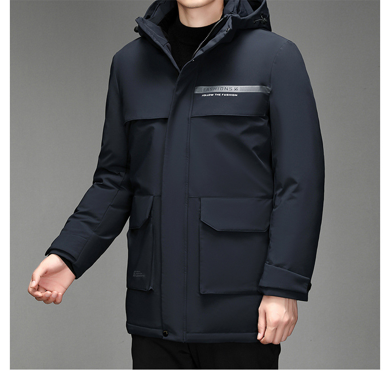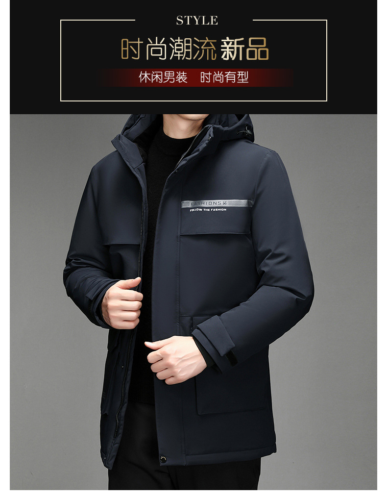 구스 다운 남성 다운 재킷 겨울 두꺼운 중년 및 노인 후드 따뜻한 패션 캐주얼 다운 재킷 남성 아빠 옷