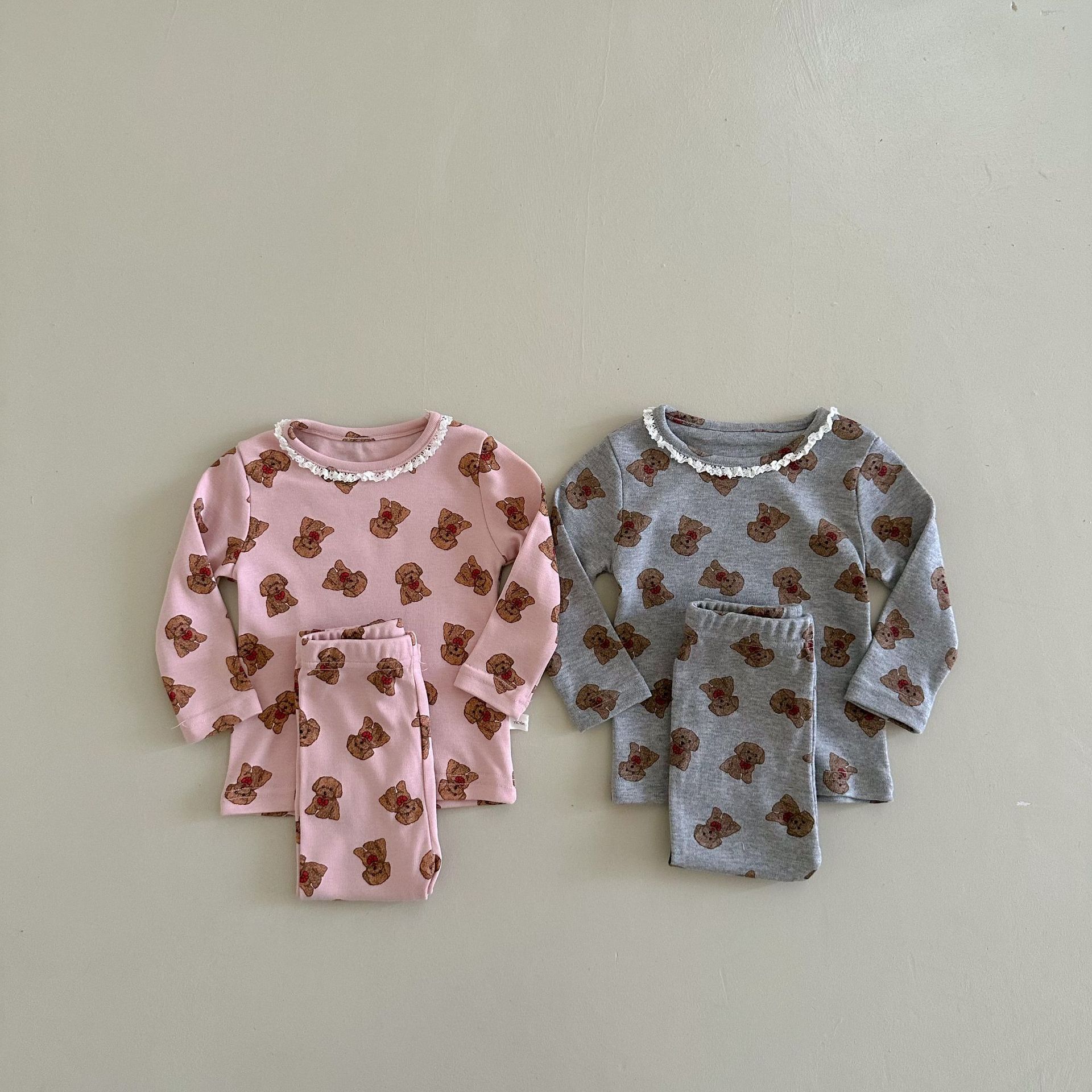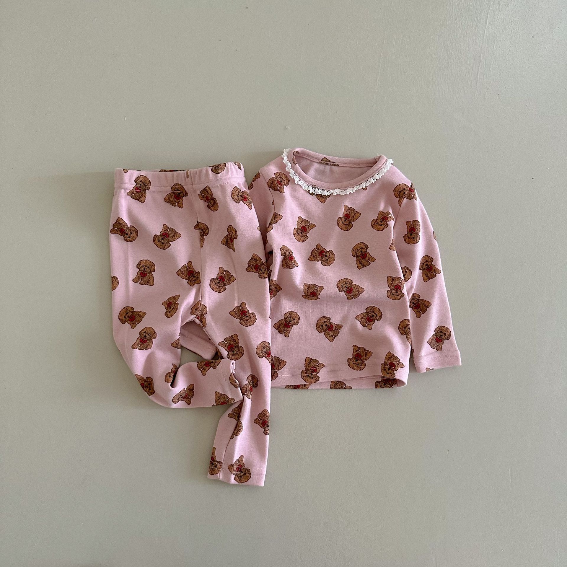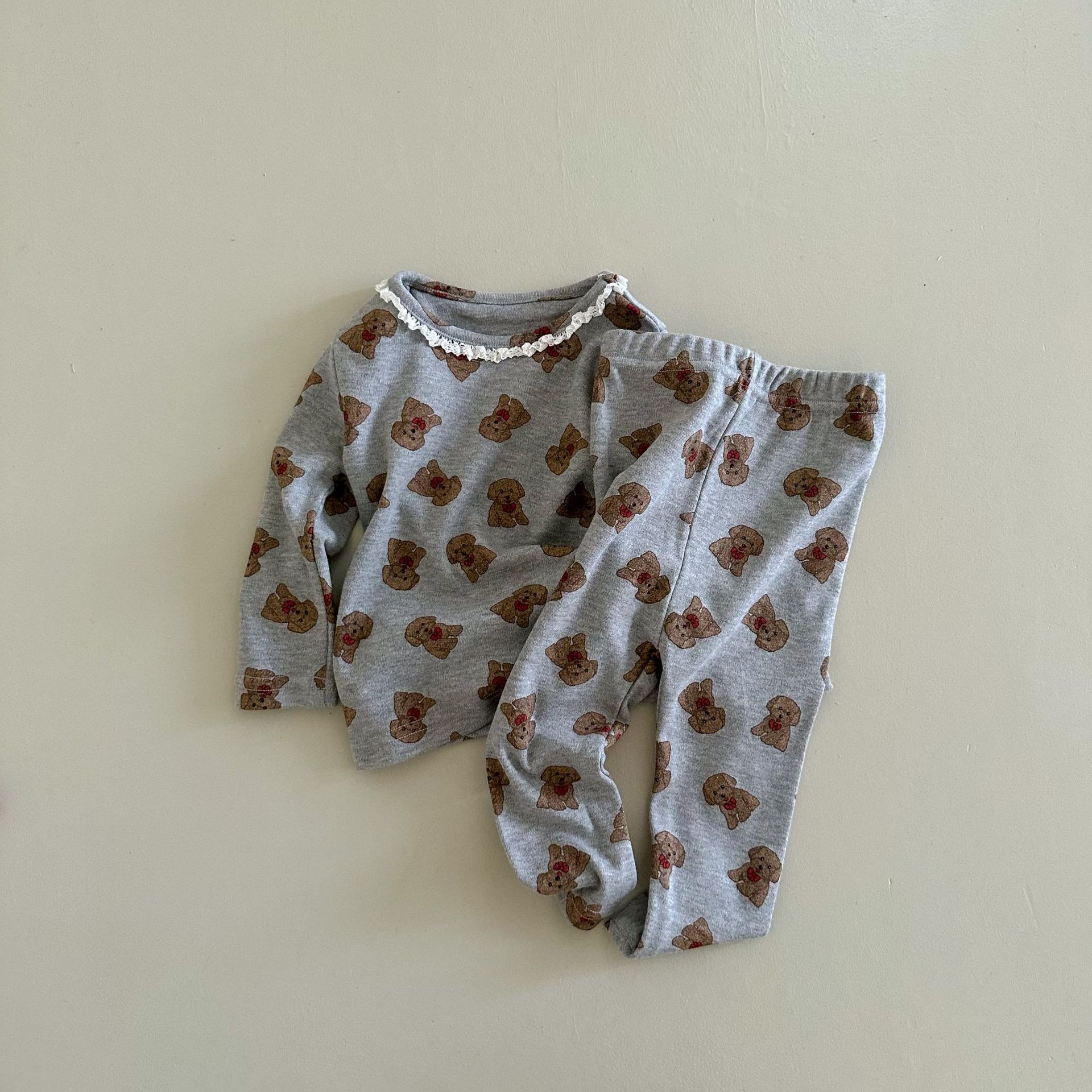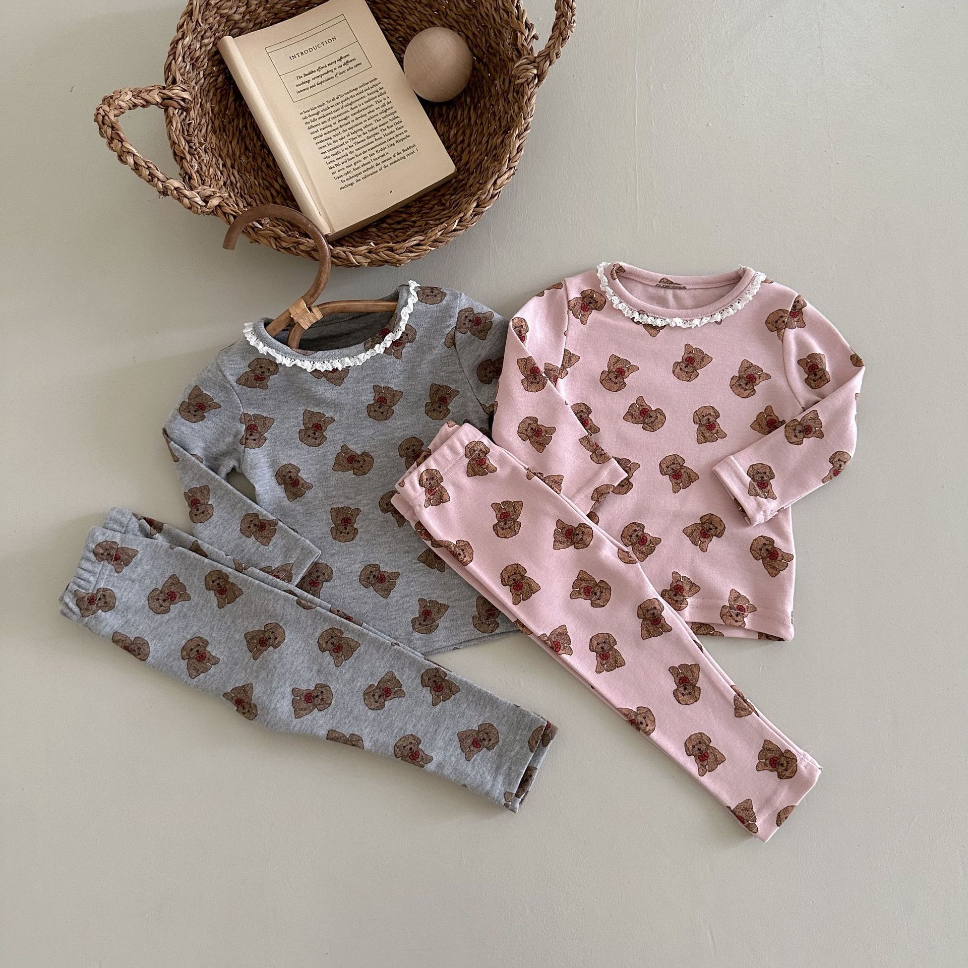 소년과 소녀를위한 어린이 잠옷 봄과 가을 클래스 라운드 넥 만화 속옷 세트 아기 곰 울 스트레치 홈 의류스토어 가기