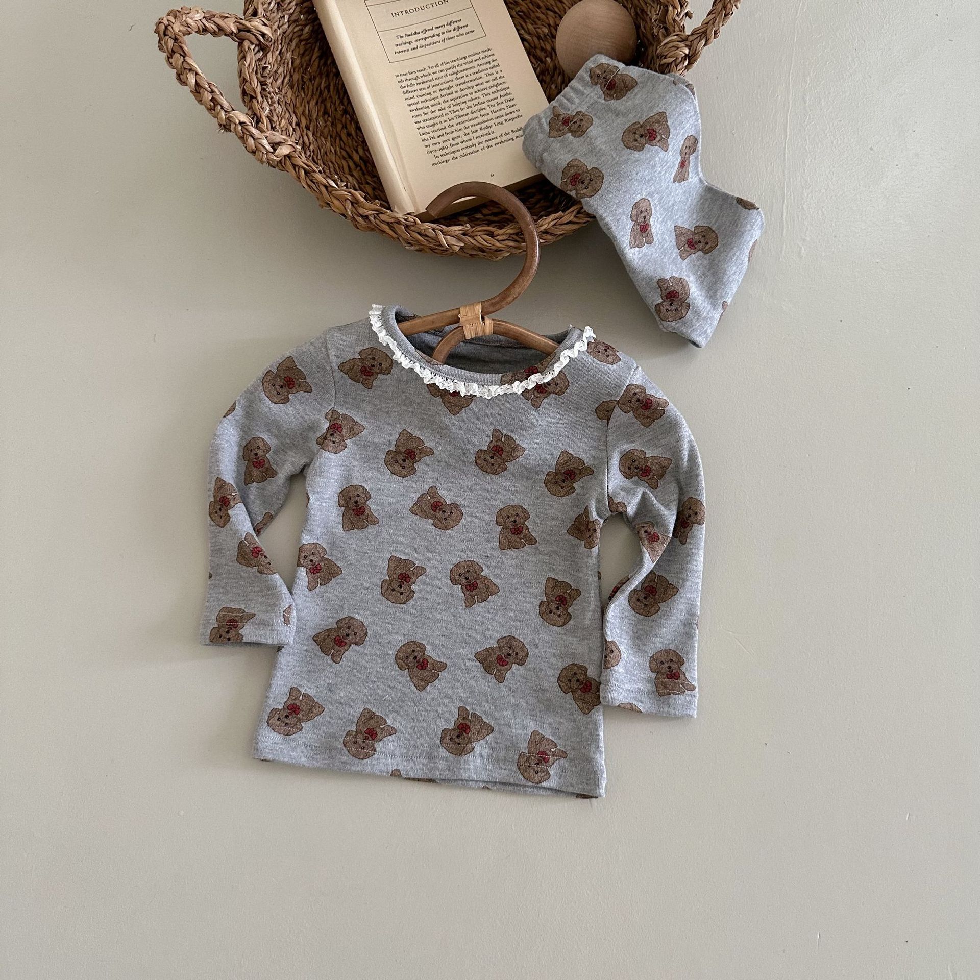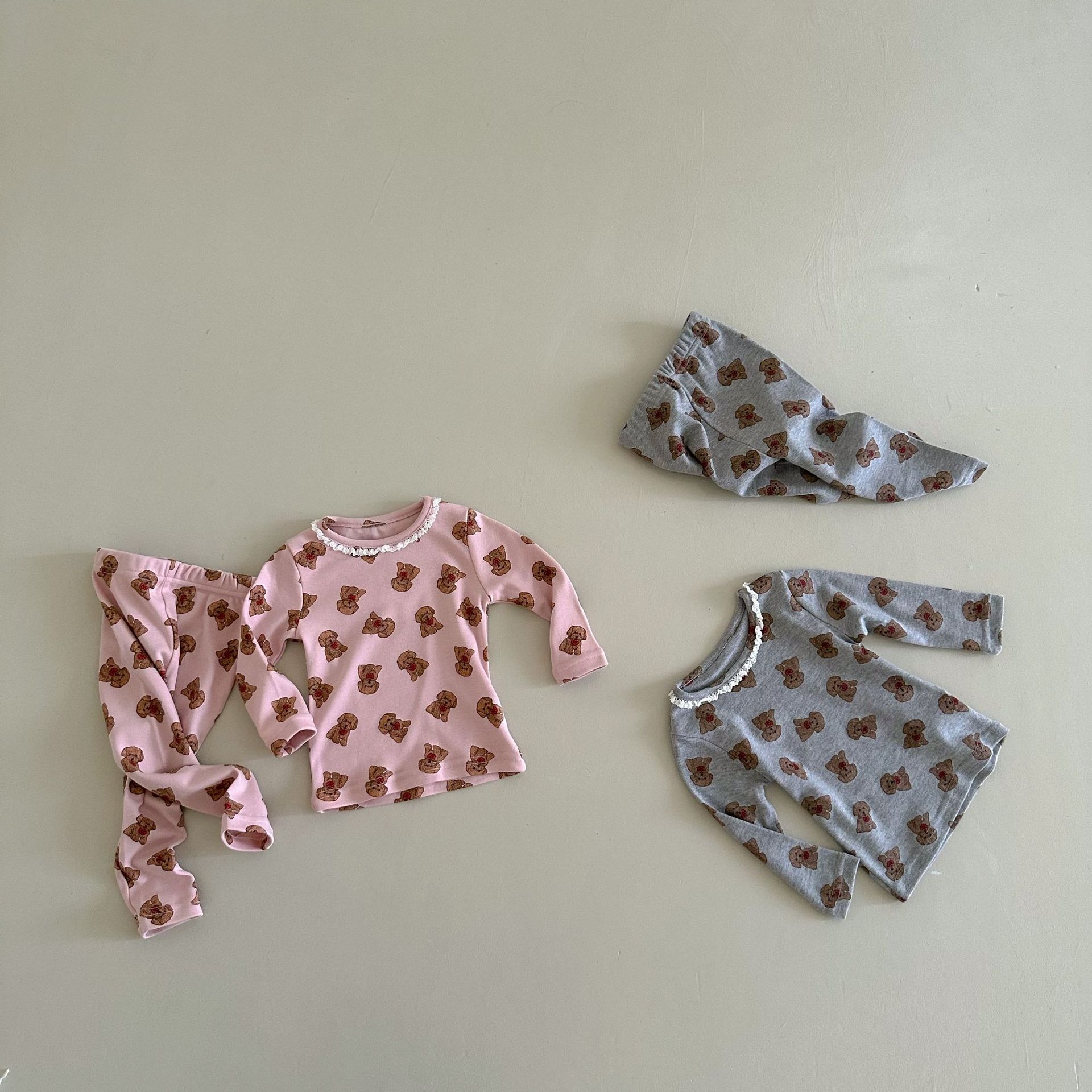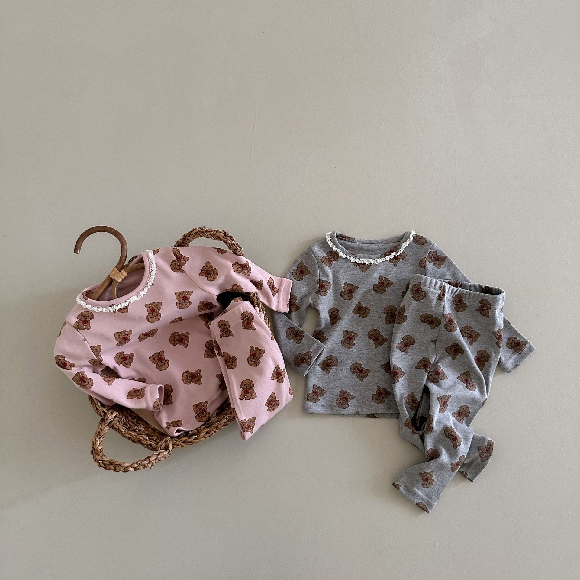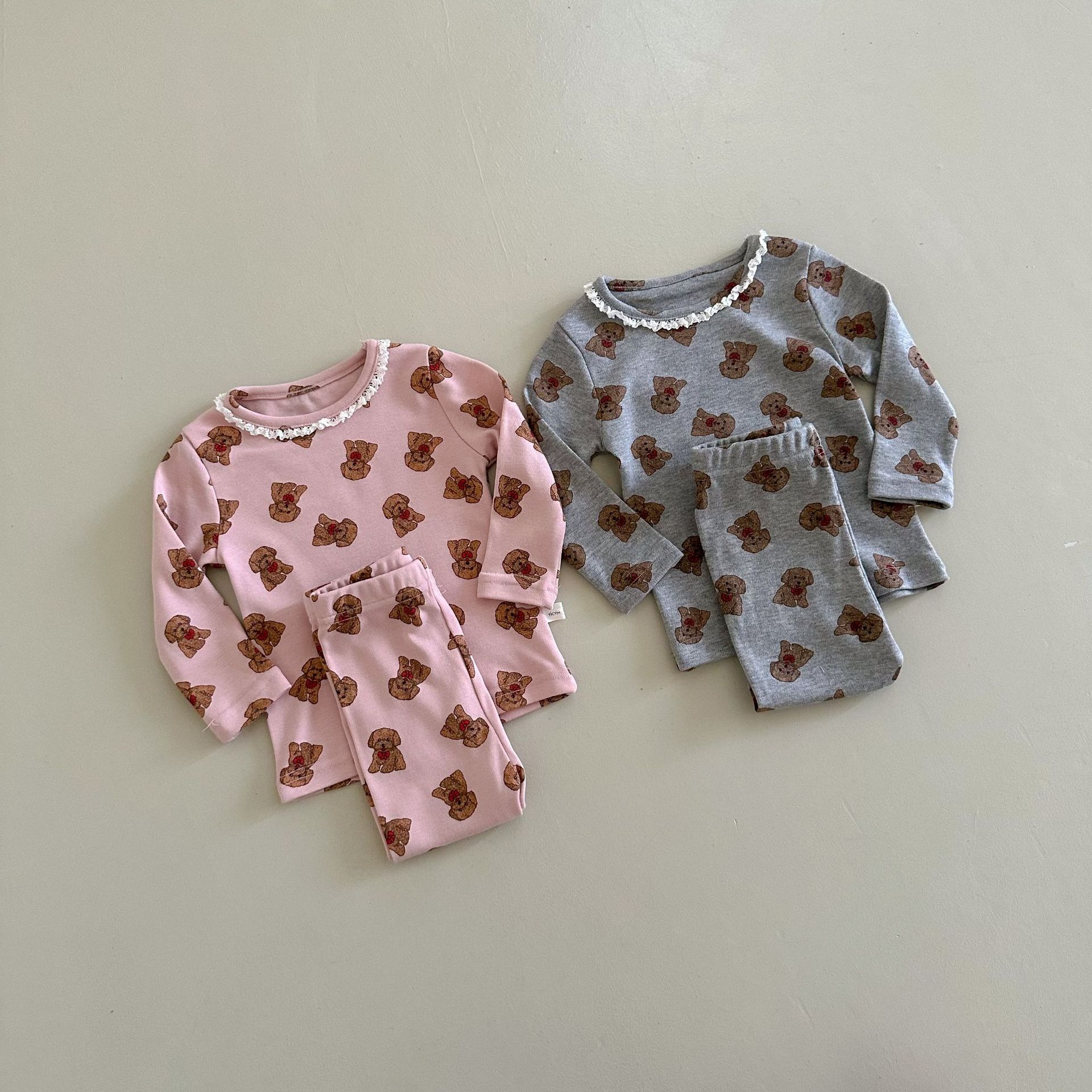 소년과 소녀를위한 어린이 잠옷 봄과 가을 클래스 라운드 넥 만화 속옷 세트 아기 곰 울 스트레치 홈 의류스토어 가기