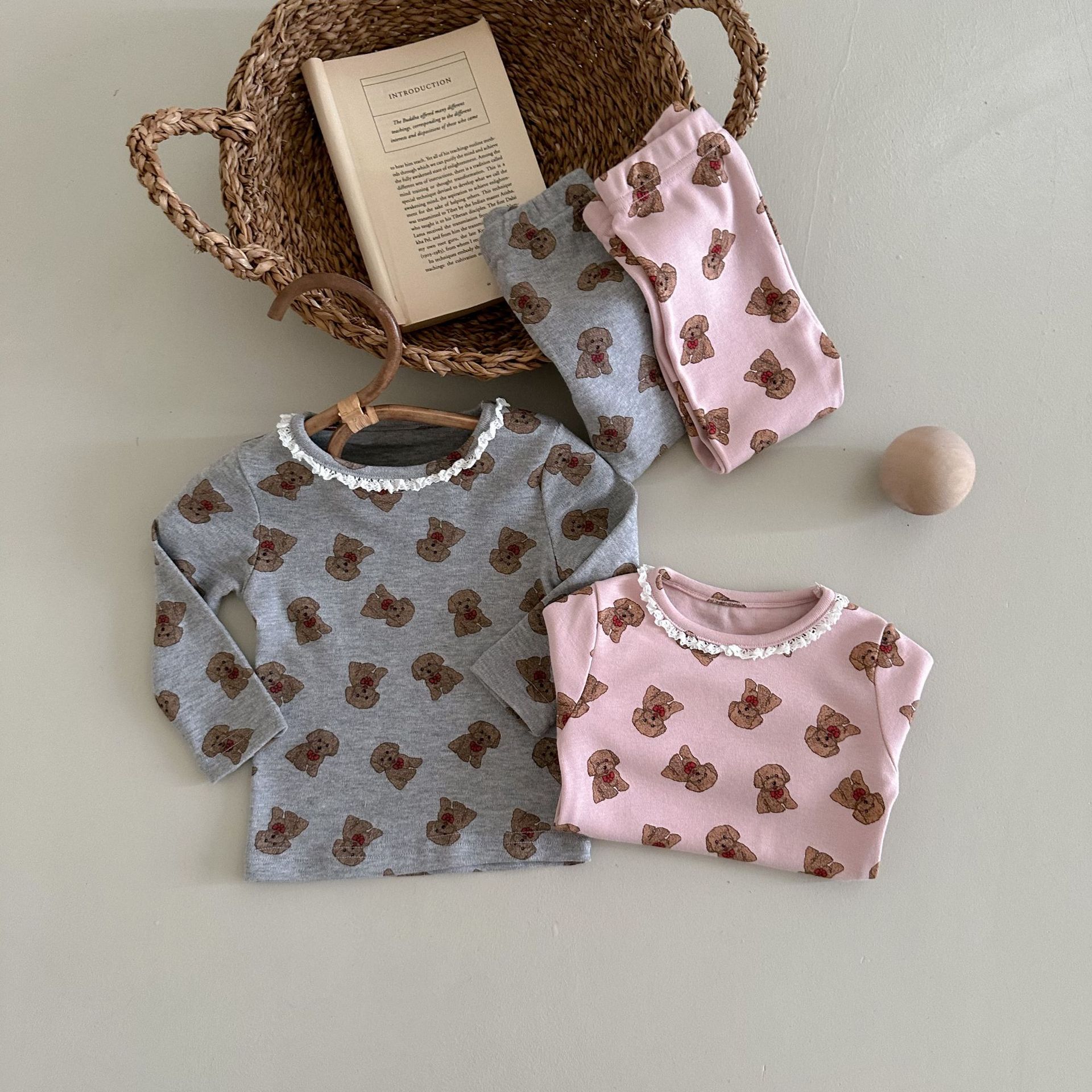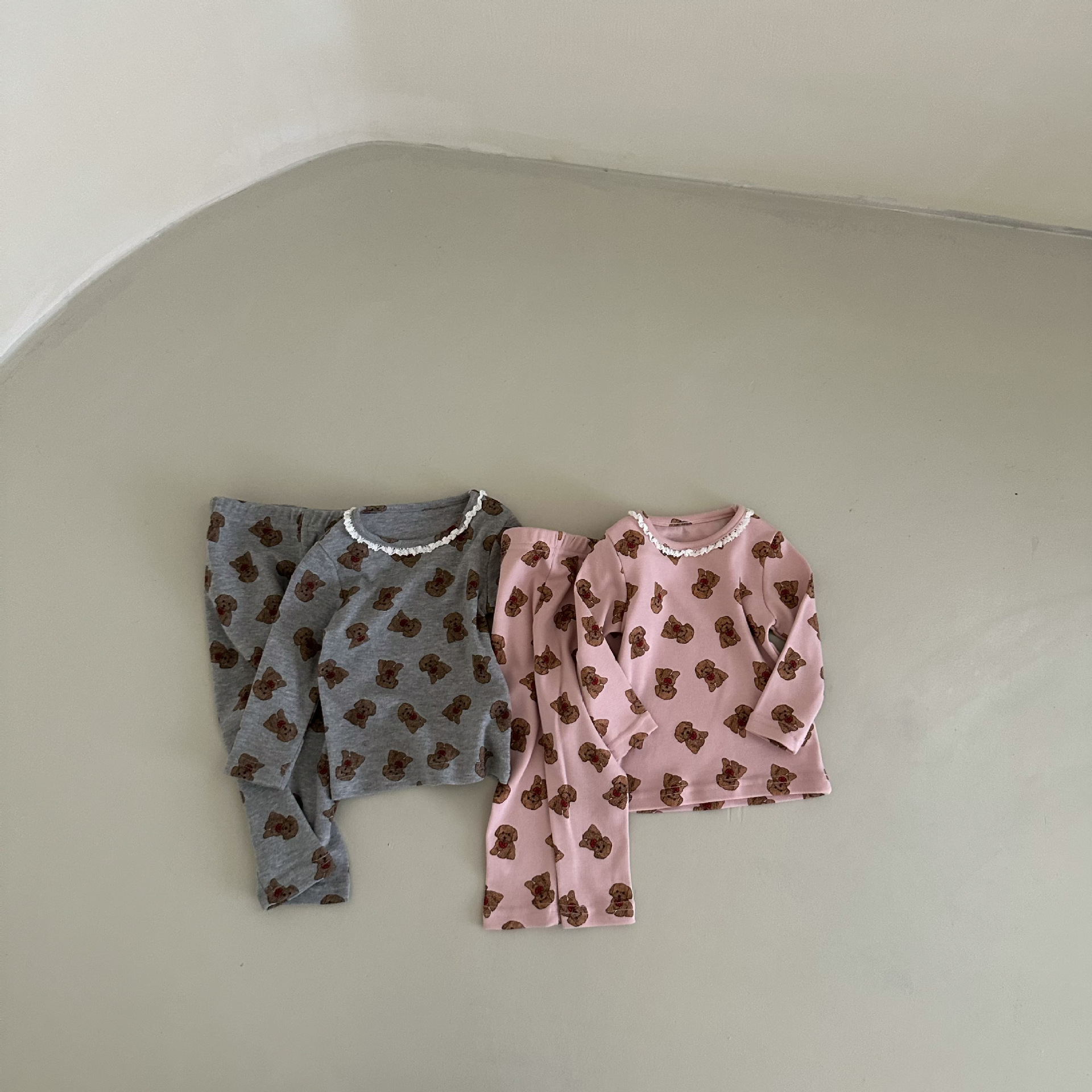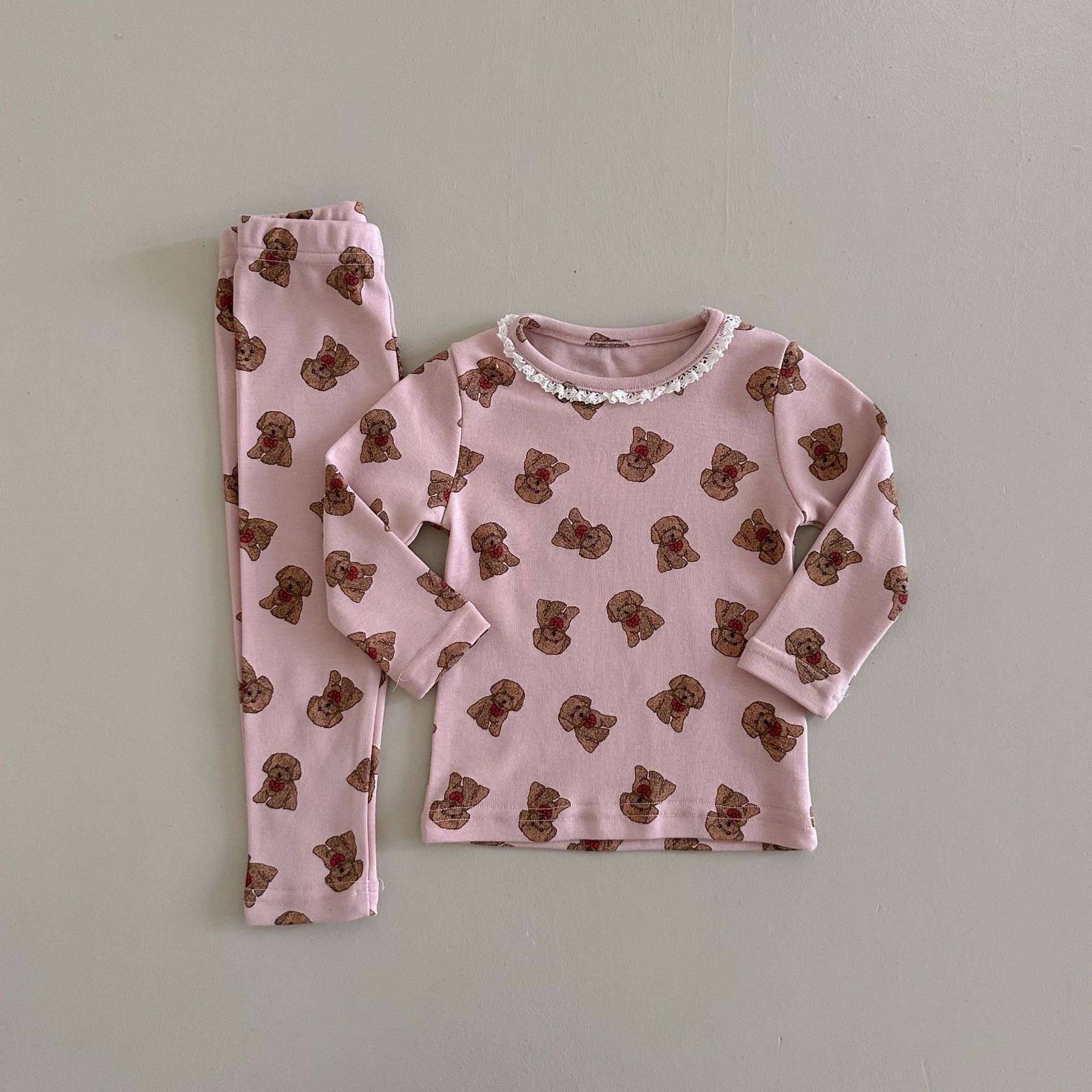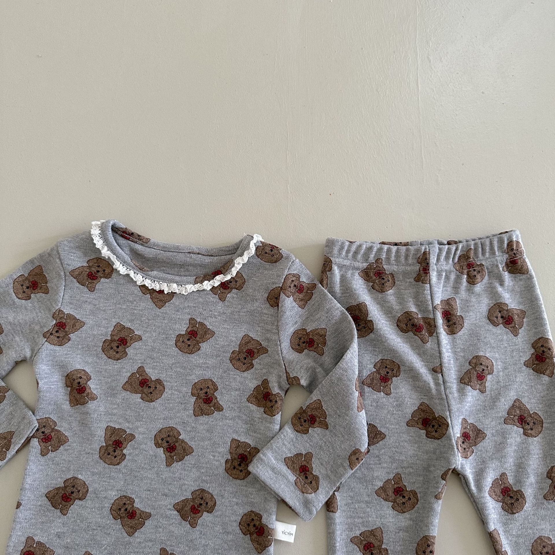 소년과 소녀를위한 어린이 잠옷 봄과 가을 클래스 라운드 넥 만화 속옷 세트 아기 곰 울 스트레치 홈 의류스토어 가기