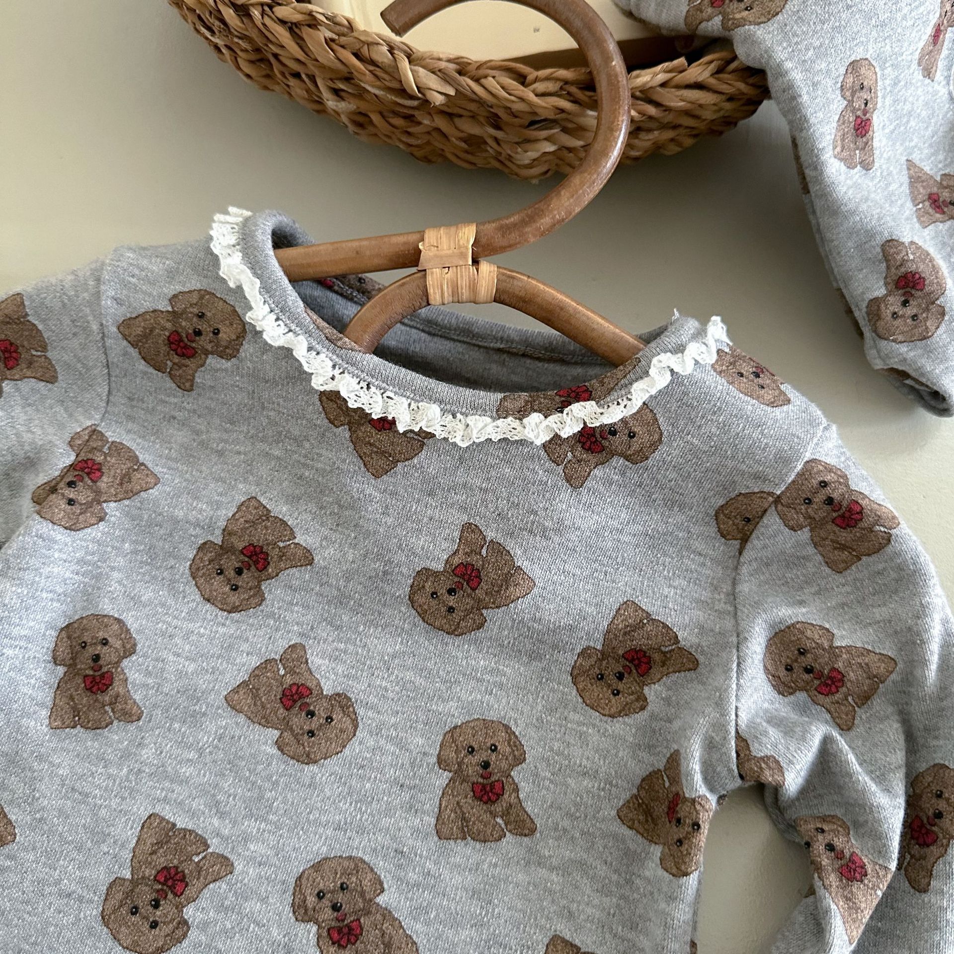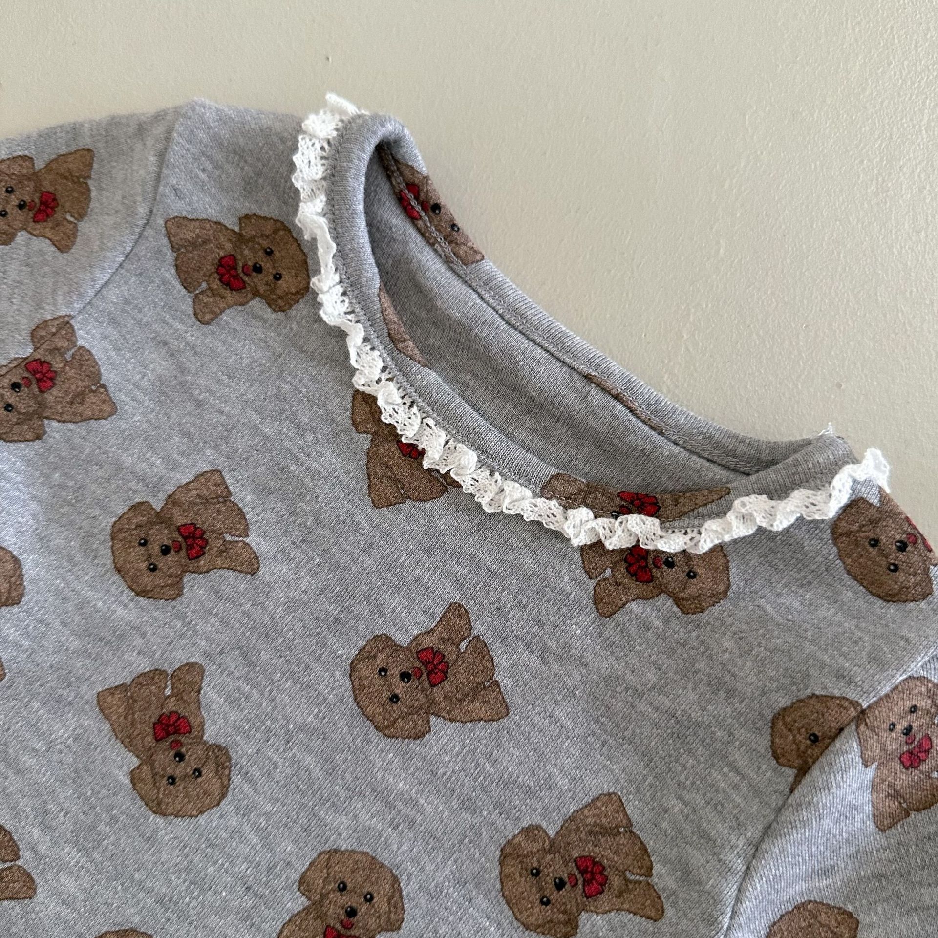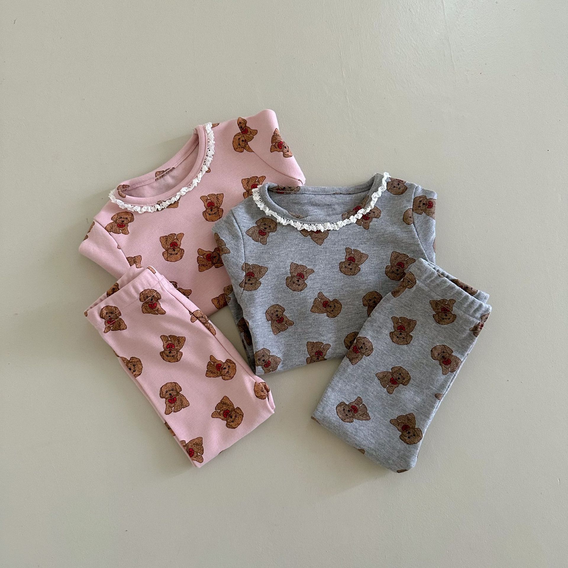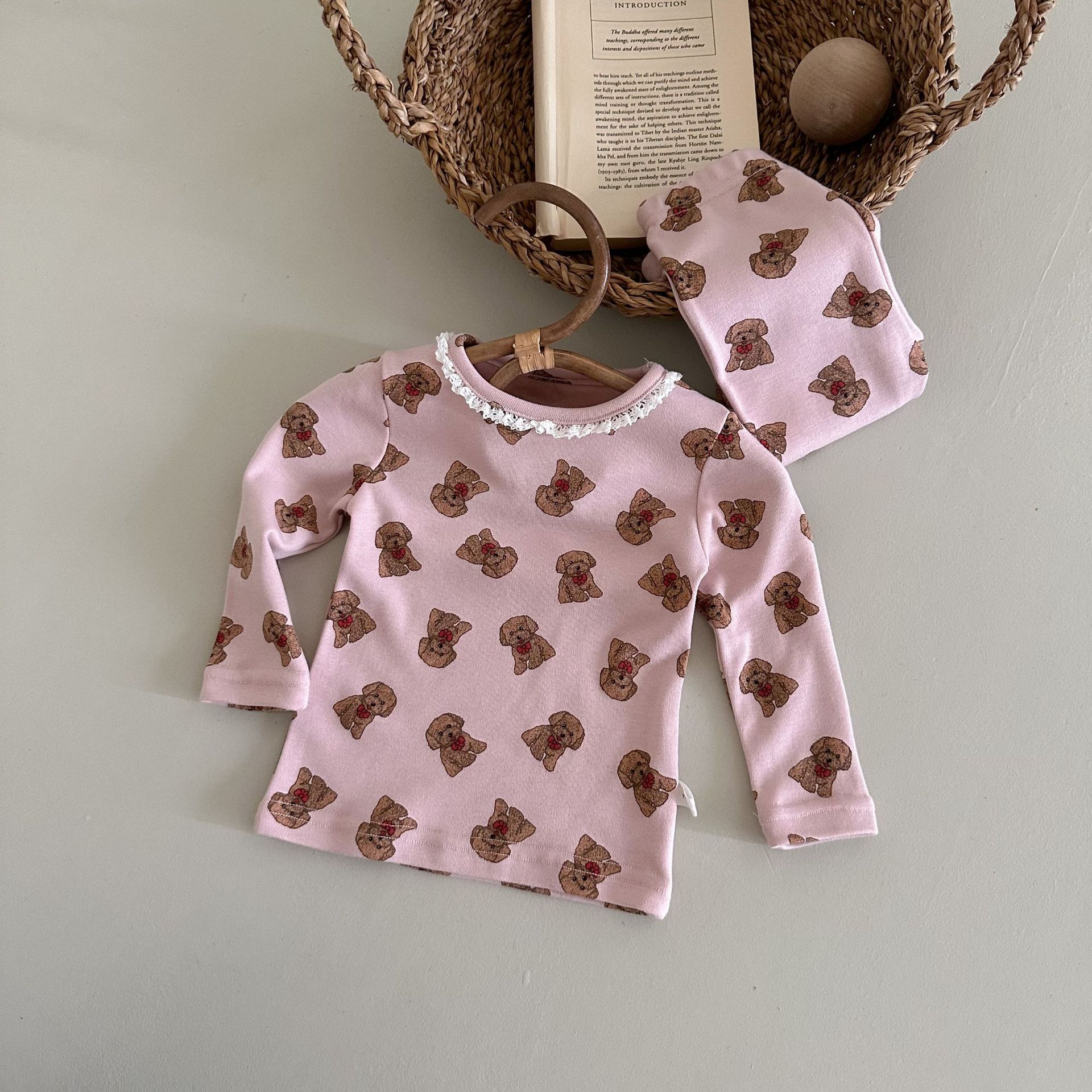소년과 소녀를위한 어린이 잠옷 봄과 가을 클래스 라운드 넥 만화 속옷 세트 아기 곰 울 스트레치 홈 의류스토어 가기