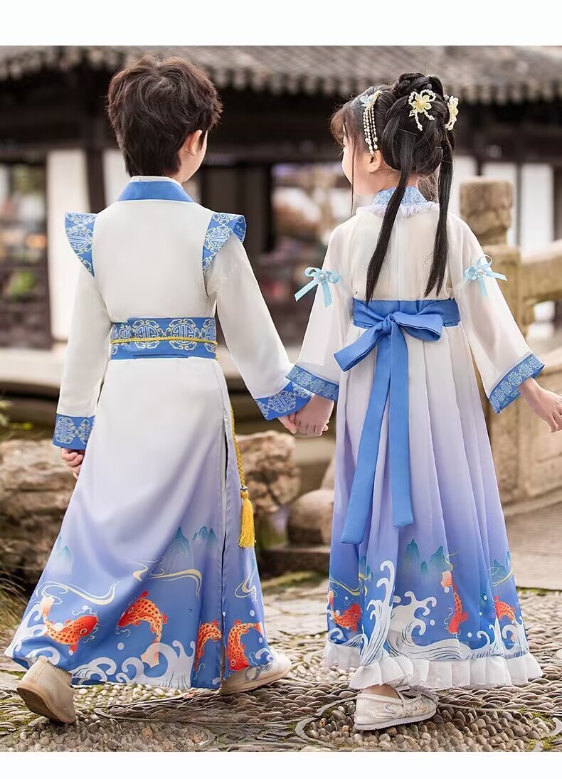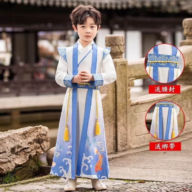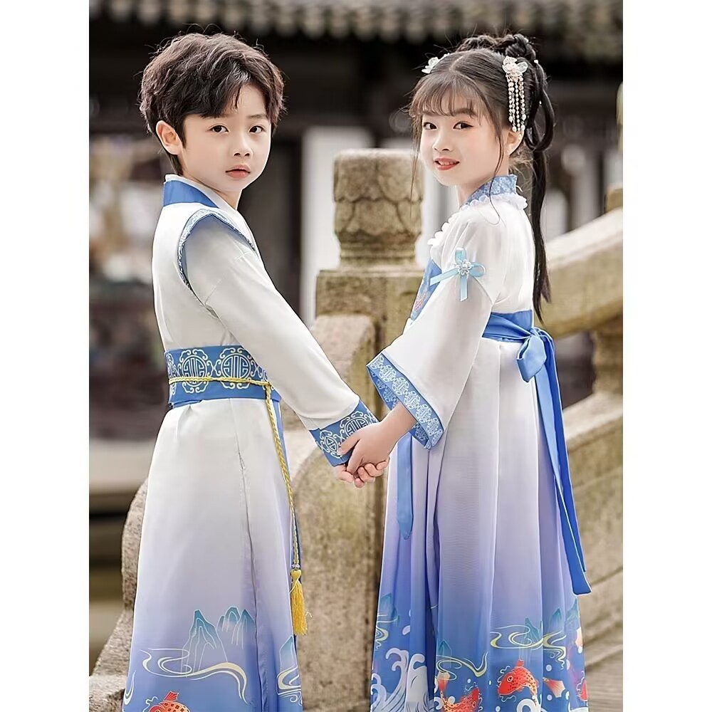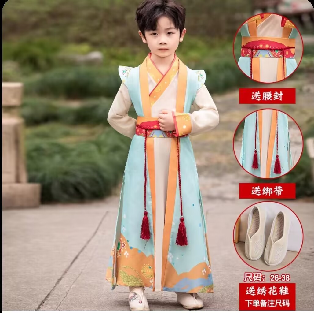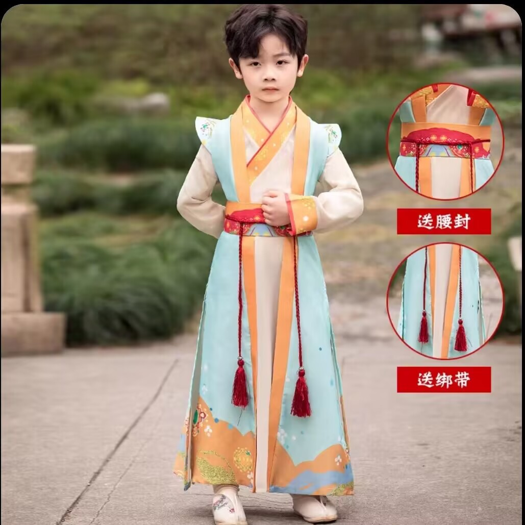 Hanfu 소녀 가을 어린이의 2023 새로운 고대 세트 슈퍼 요정 당나라 세트 스커트 가을 원피스 소년 중간 가을 축제