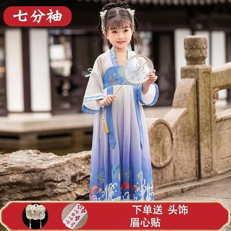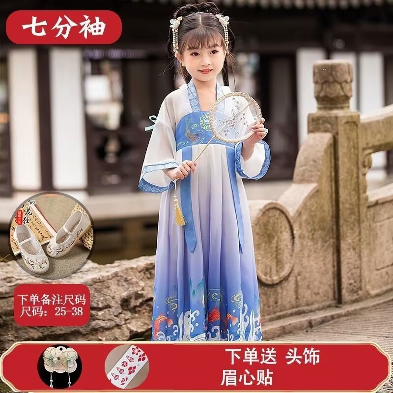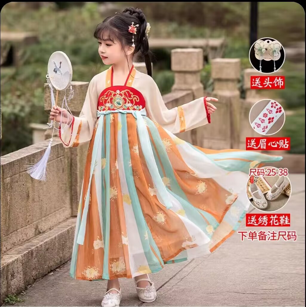 Hanfu 소녀 가을 어린이의 2023 새로운 고대 세트 슈퍼 요정 당나라 세트 스커트 가을 원피스 소년 중간 가을 축제스토어 가기