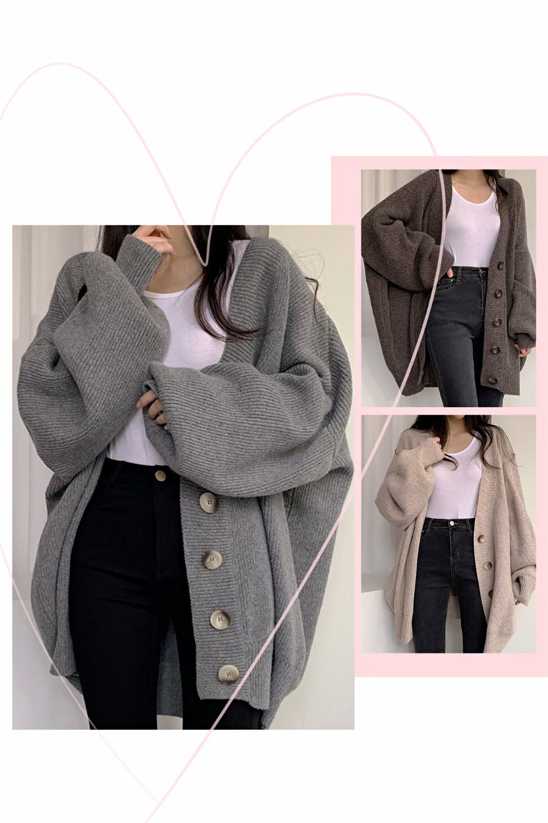 단색 게으른 스타일 스웨터 코트 여자의 2023 가을과 겨울 새로운 느슨한 플러스 사이즈 세련된 니트 카디건 여자의 한국 스타일