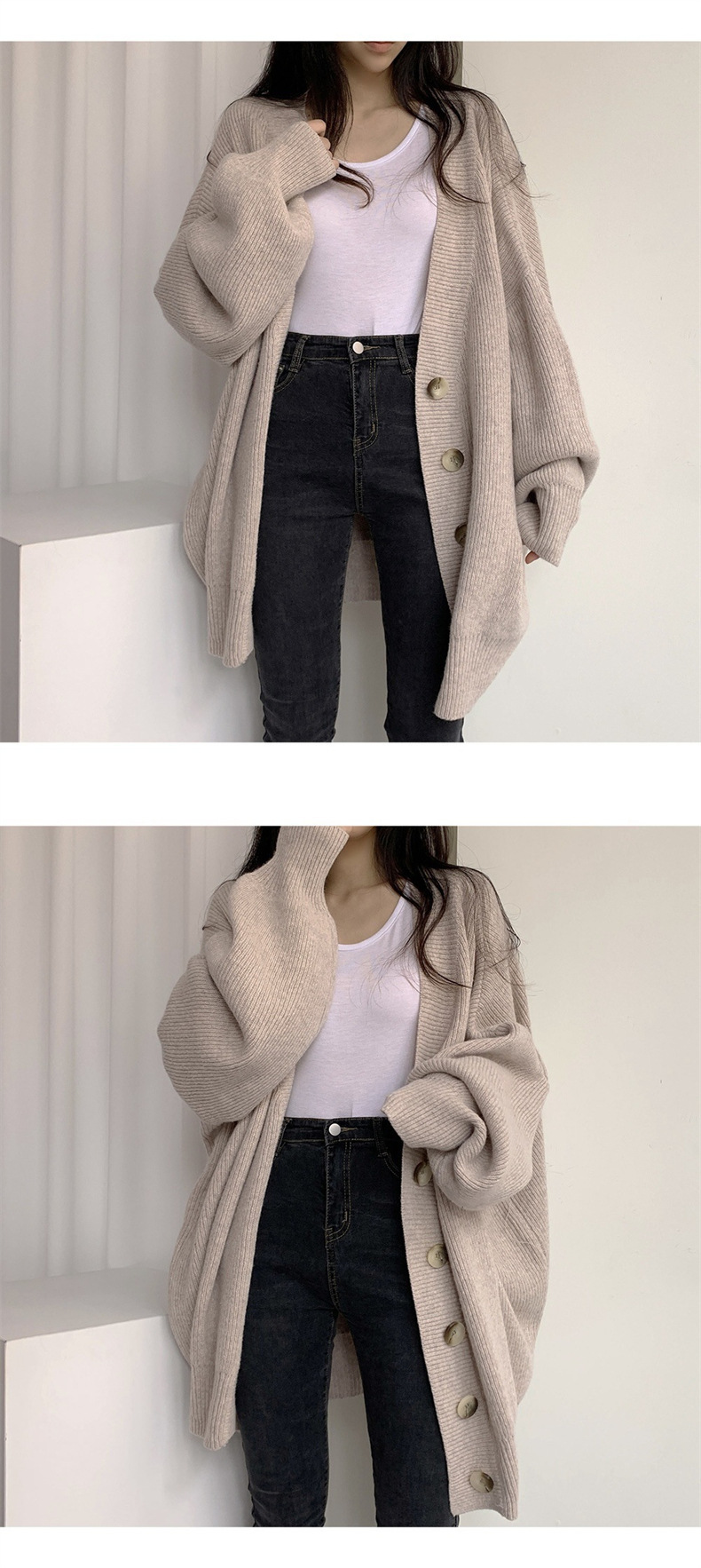 단색 게으른 스타일 스웨터 코트 여자의 2023 가을과 겨울 새로운 느슨한 플러스 사이즈 세련된 니트 카디건 여자의 한국 스타일스토어 가기