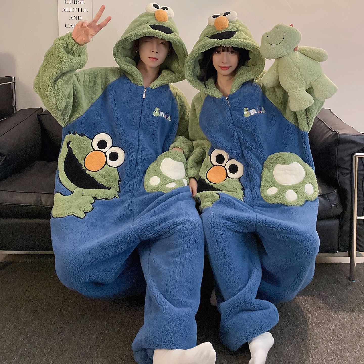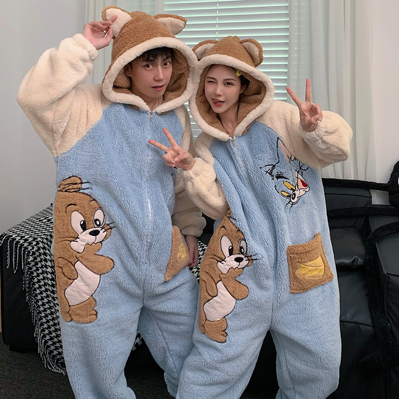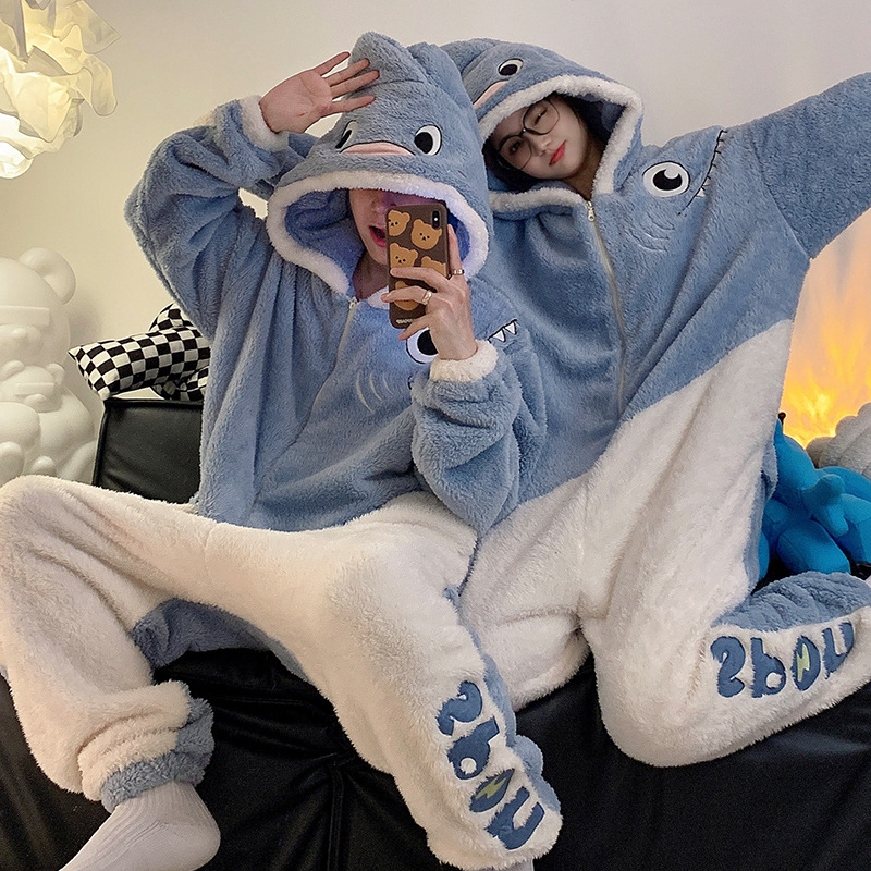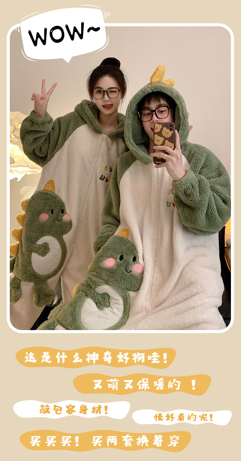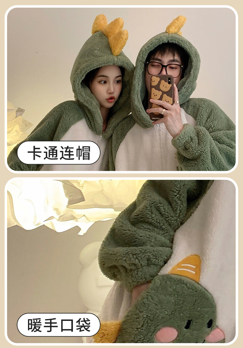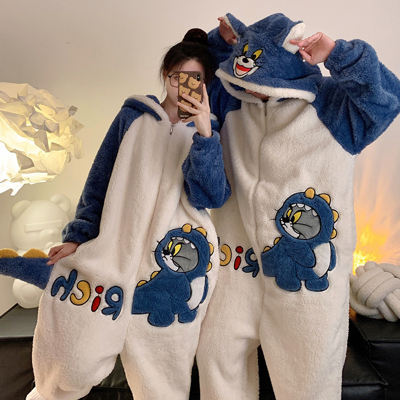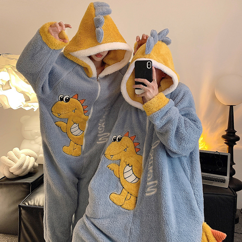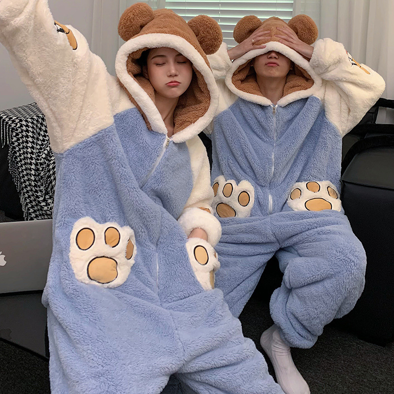 커플 잠옷 남자와 여자의 가을과 겨울 산호 양털 점프 슈트 두꺼운 기모 플란넬 귀여운 가정 옷 세트스토어 가기