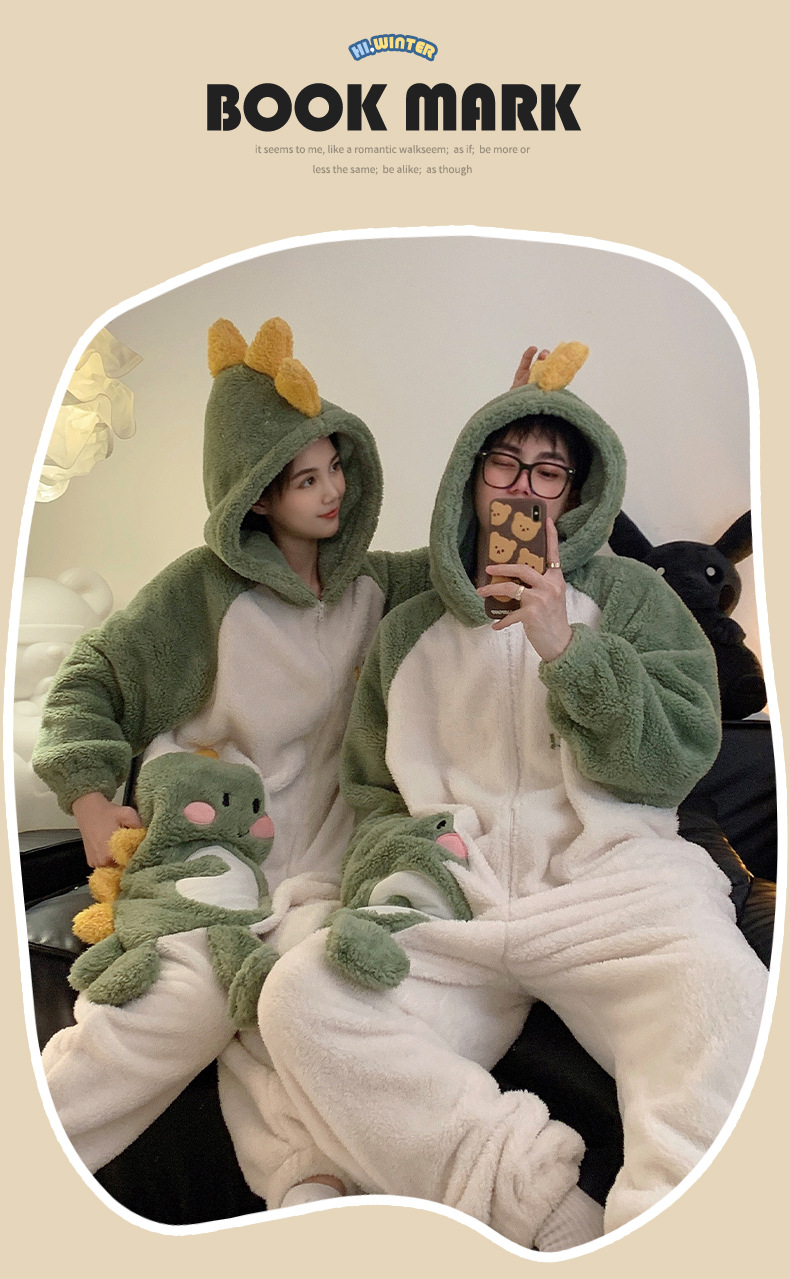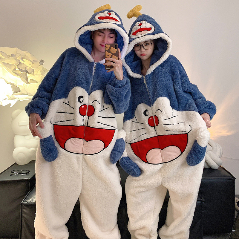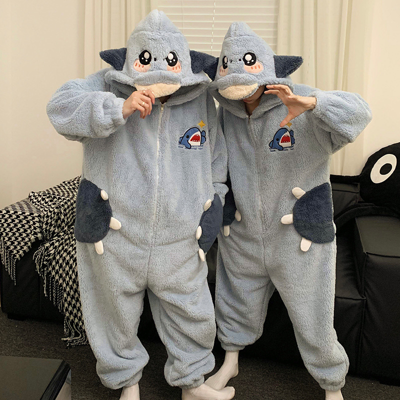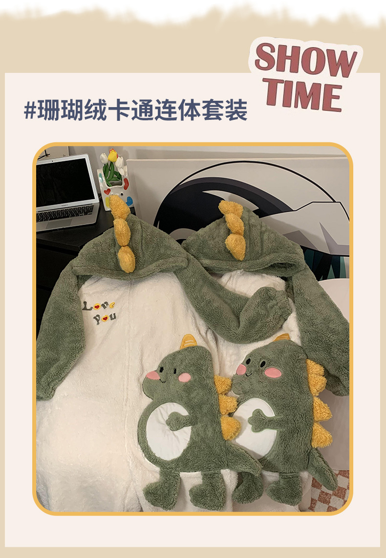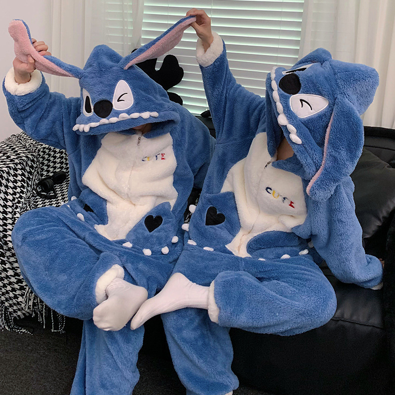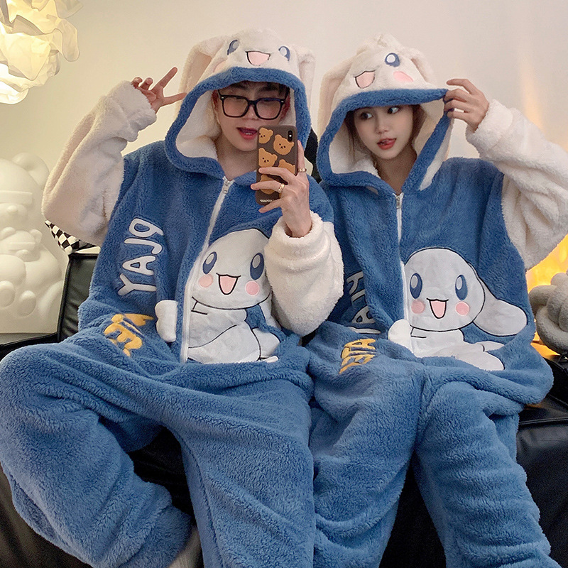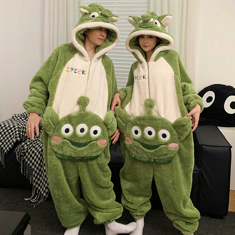 커플 잠옷 남자와 여자의 가을과 겨울 산호 양털 점프 슈트 두꺼운 기모 플란넬 귀여운 가정 옷 세트스토어 가기