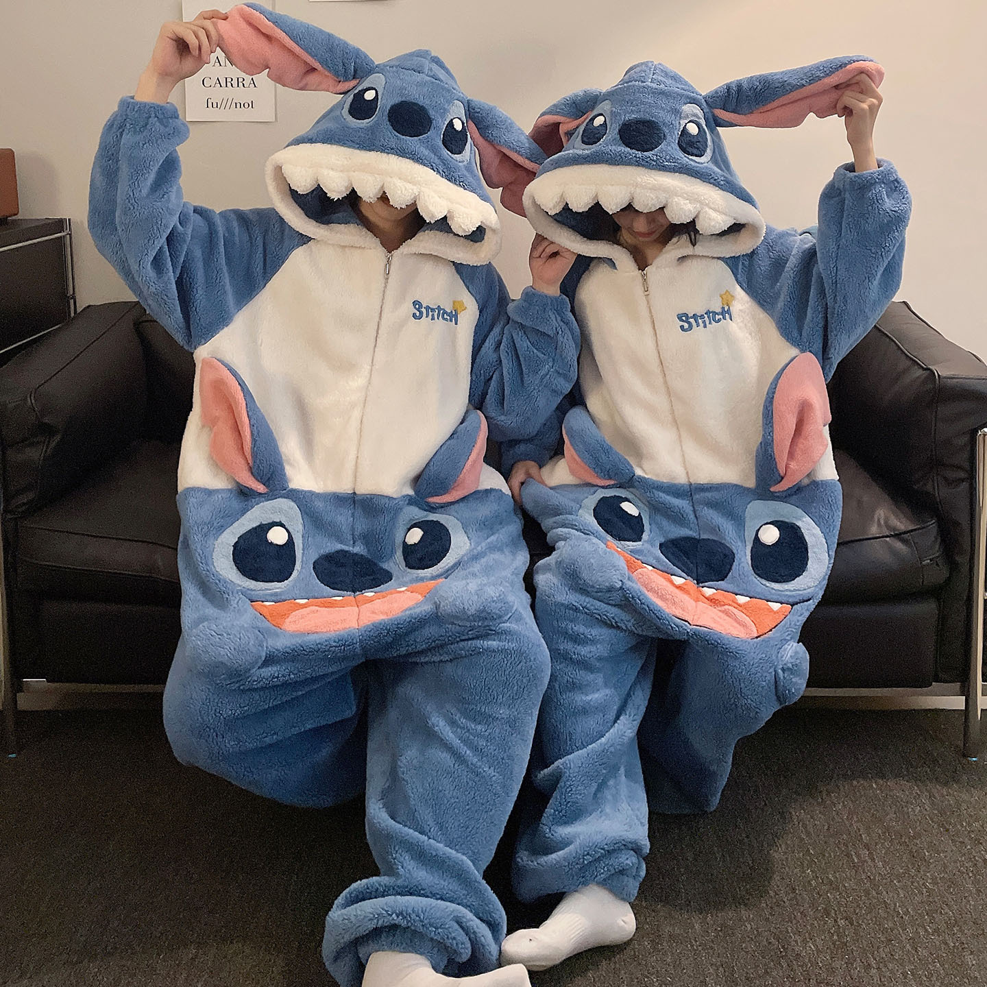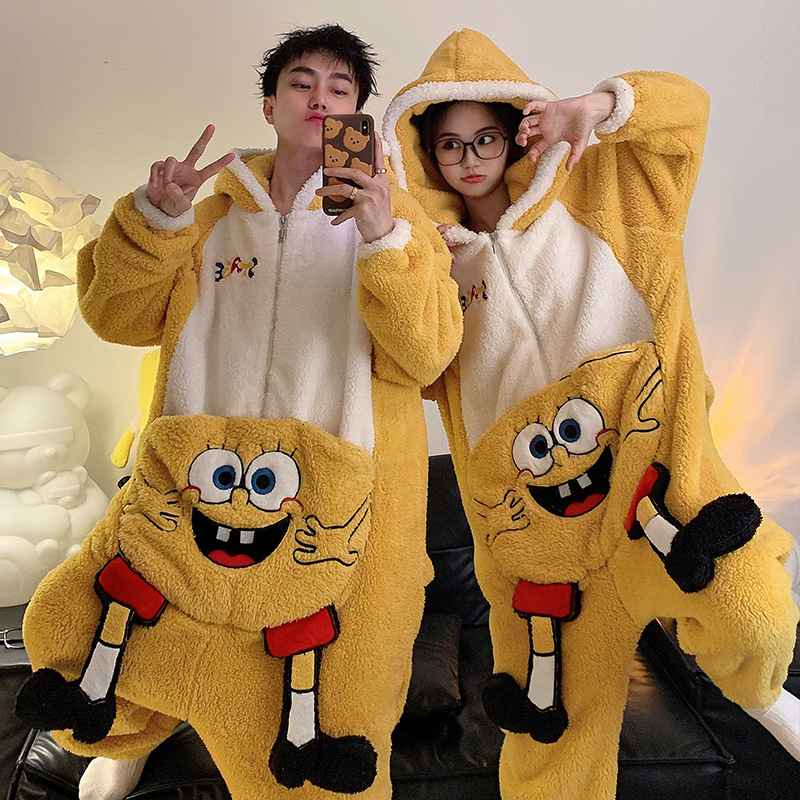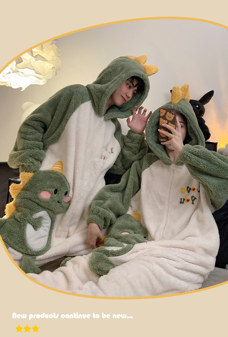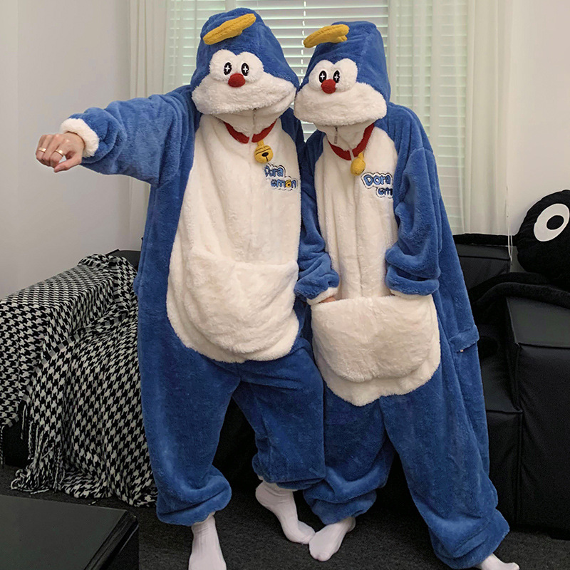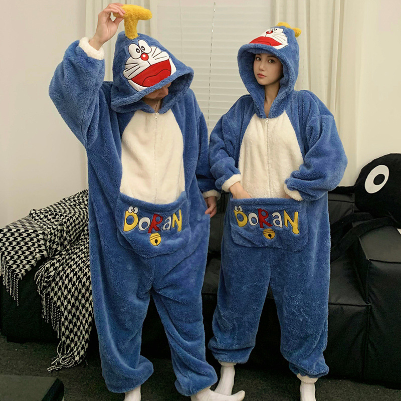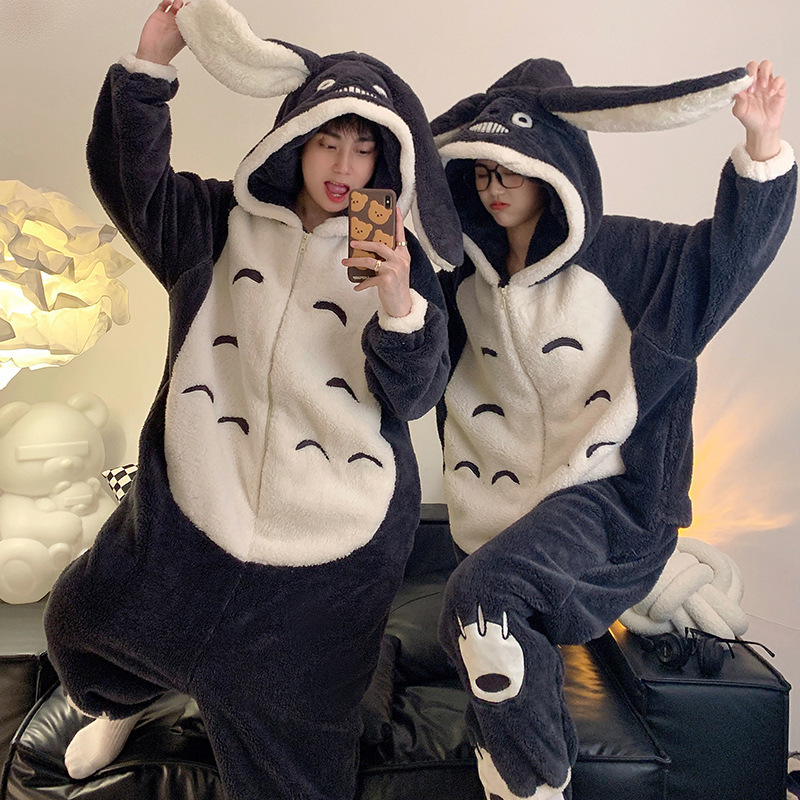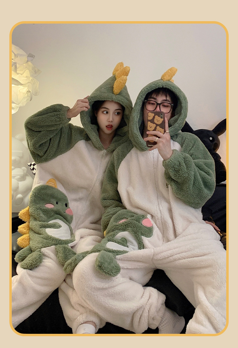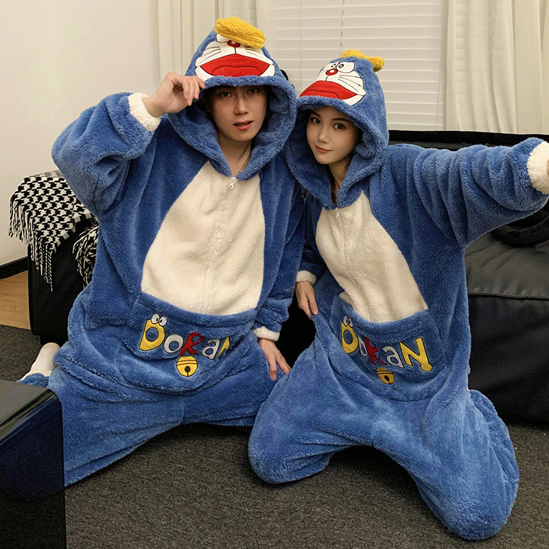 커플 잠옷 남자와 여자의 가을과 겨울 산호 양털 점프 슈트 두꺼운 기모 플란넬 귀여운 가정 옷 세트스토어 가기
