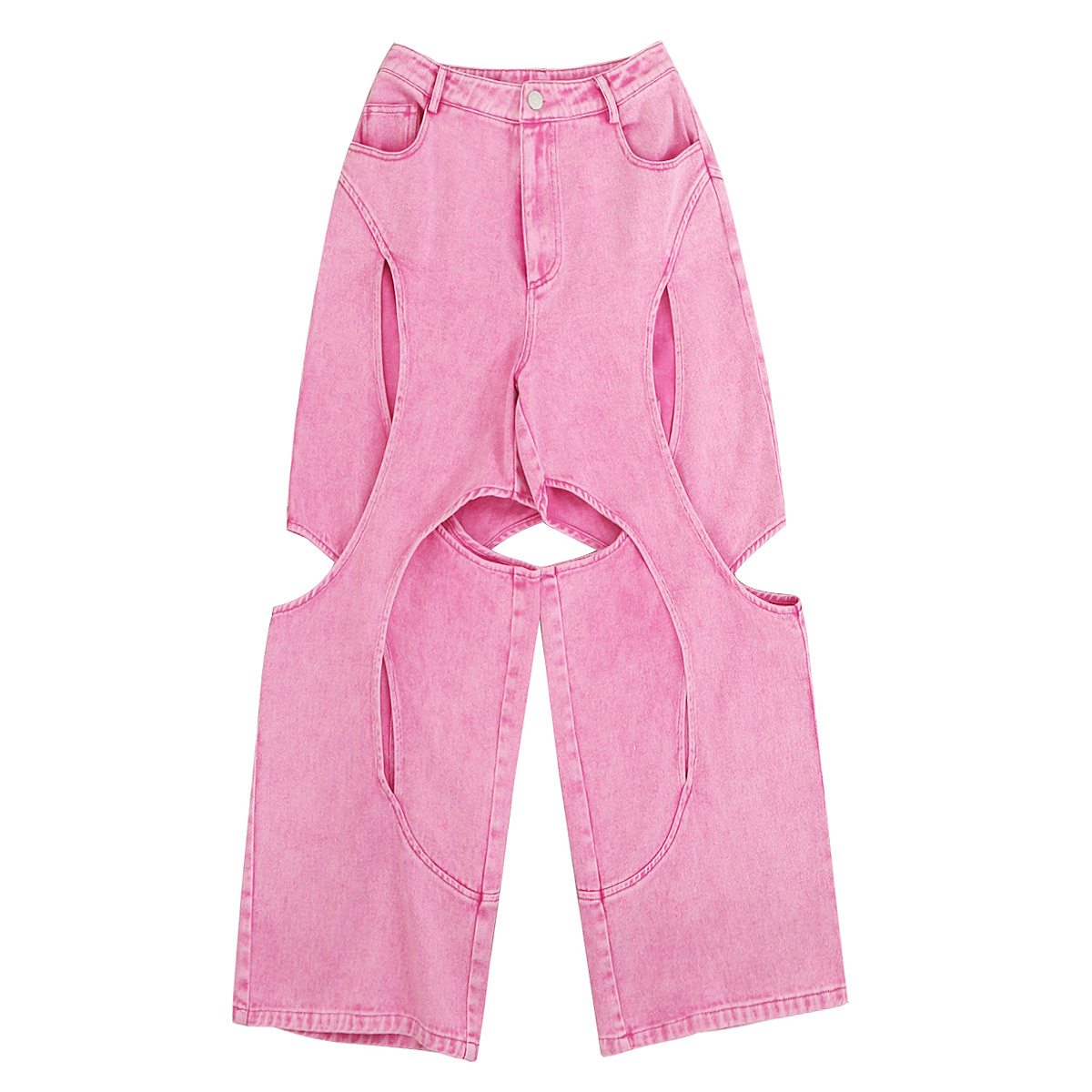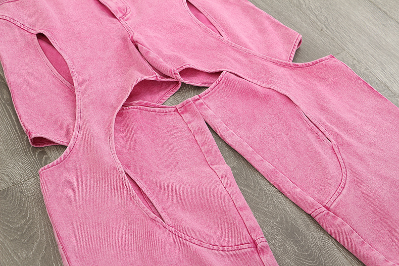25신상 속이 비치는 불규칙 바비핑크 데님 팬츠 캐주얼 팬츠 여성용 1689