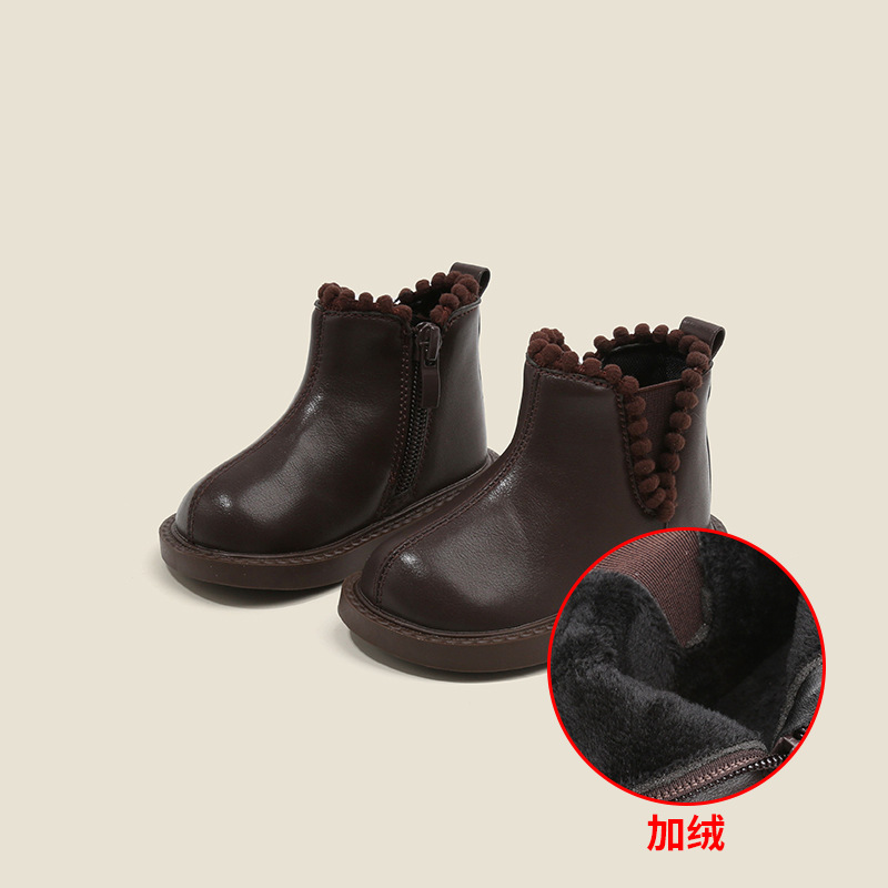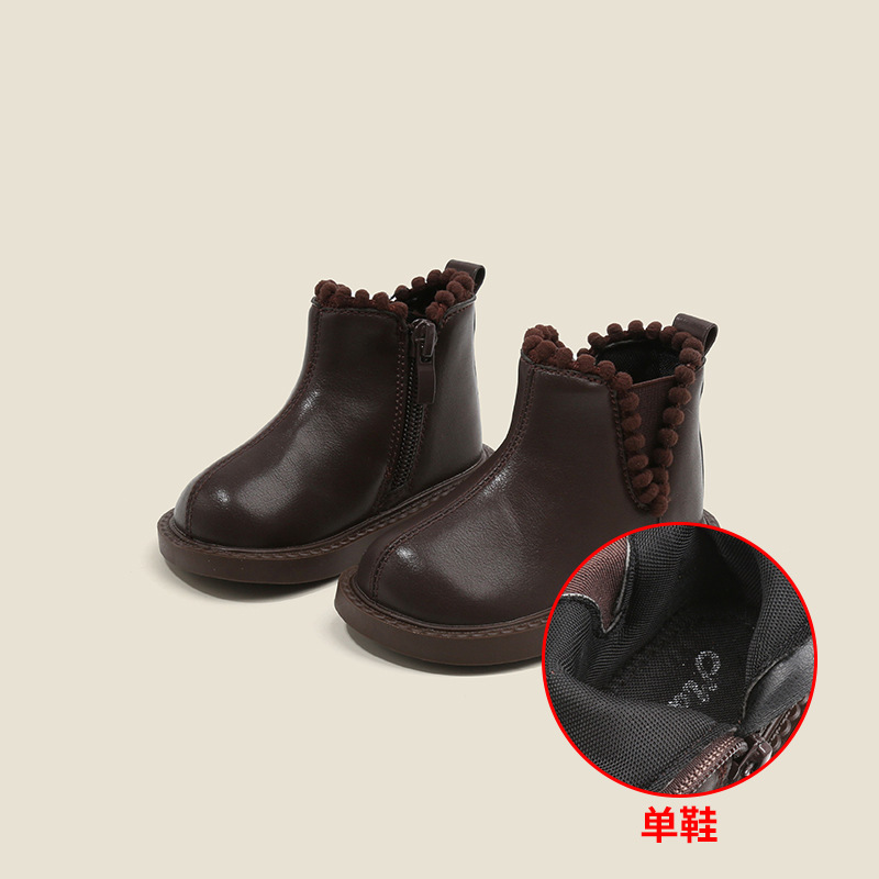 Maibu Bear 키즈 유아 신발 한국 스타일 마틴 부츠 소녀 아기 어린이 신발 봄과 가을 아기 소녀 부드러운 가죽 부츠 단층 신발스토어 가기