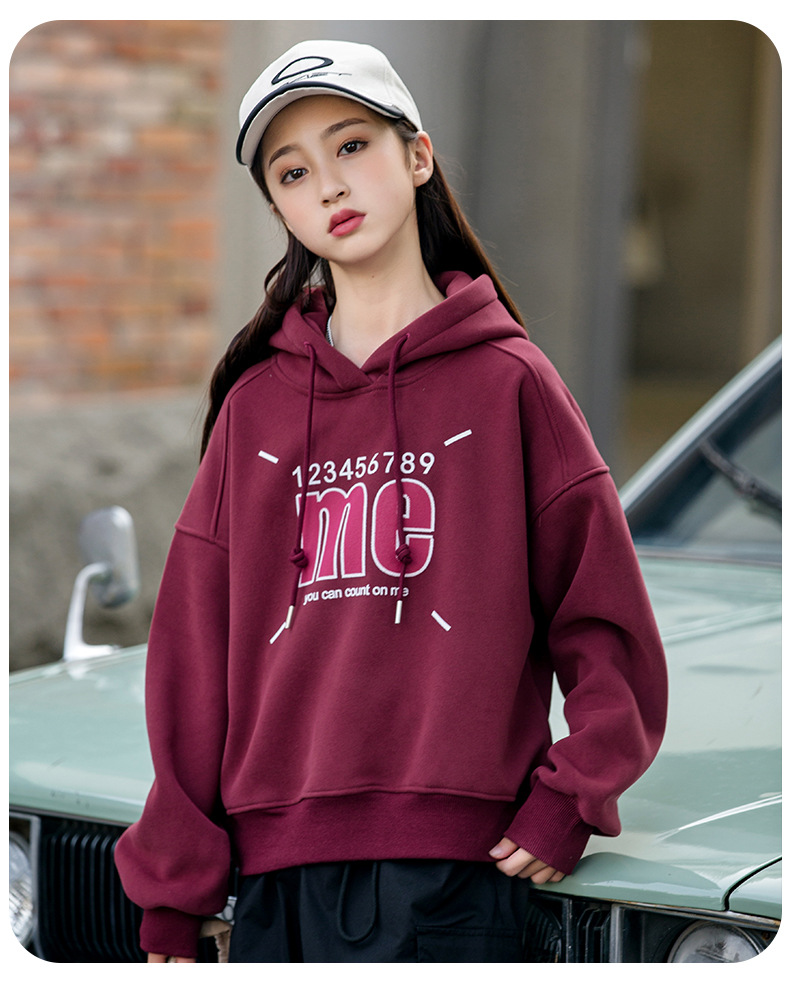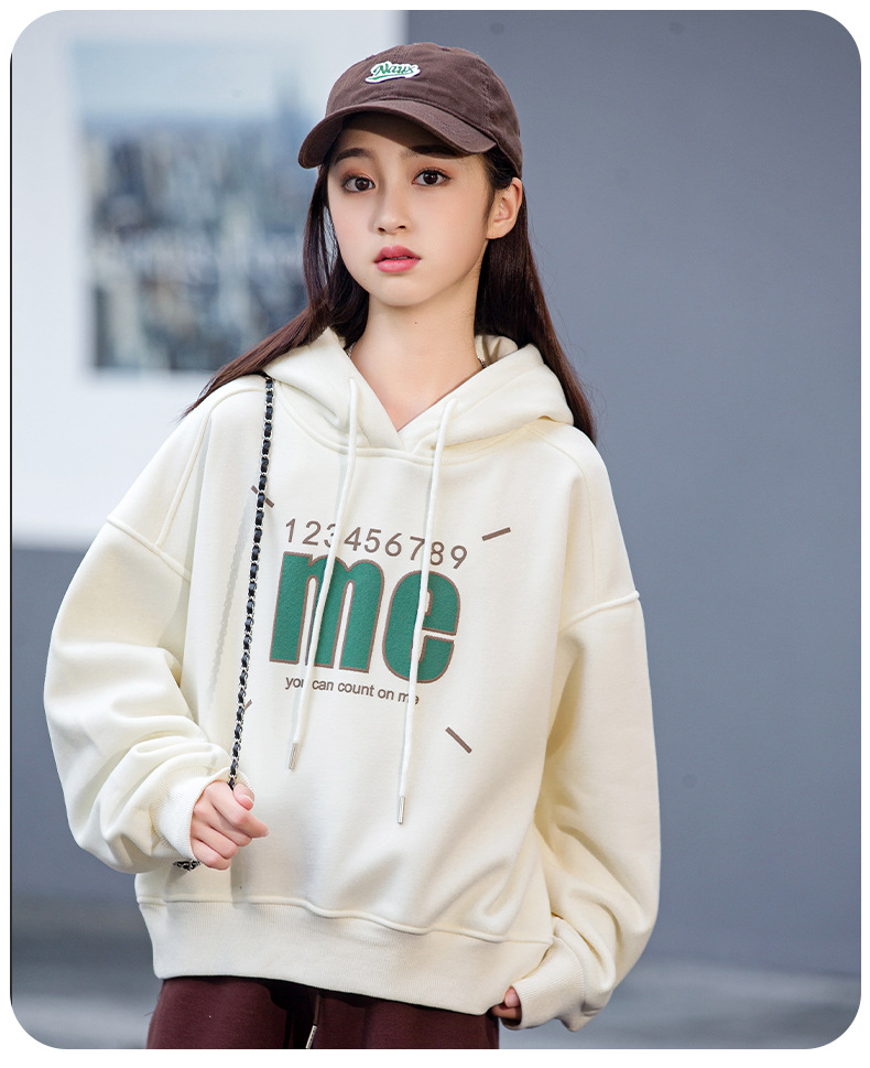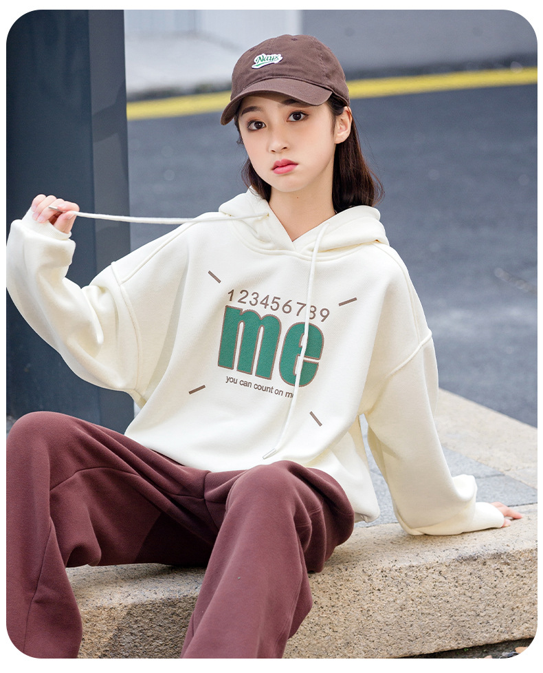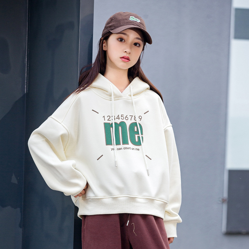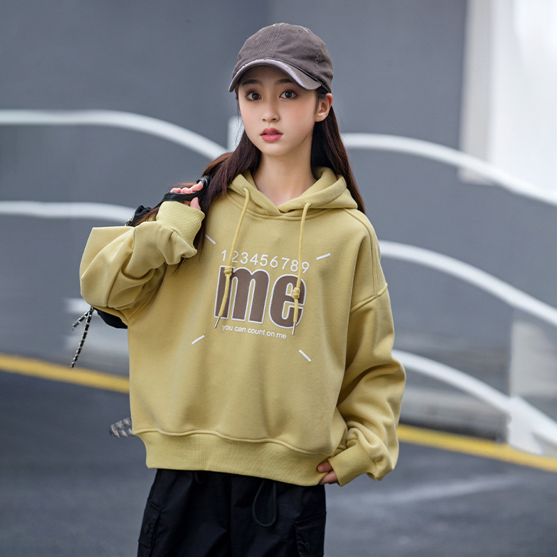 소녀의 큰 소년의 기모 두꺼운 가을 2023 새로운 중학교 학생의 편지 인쇄 후드 스웨터 12 세 소녀의 상의