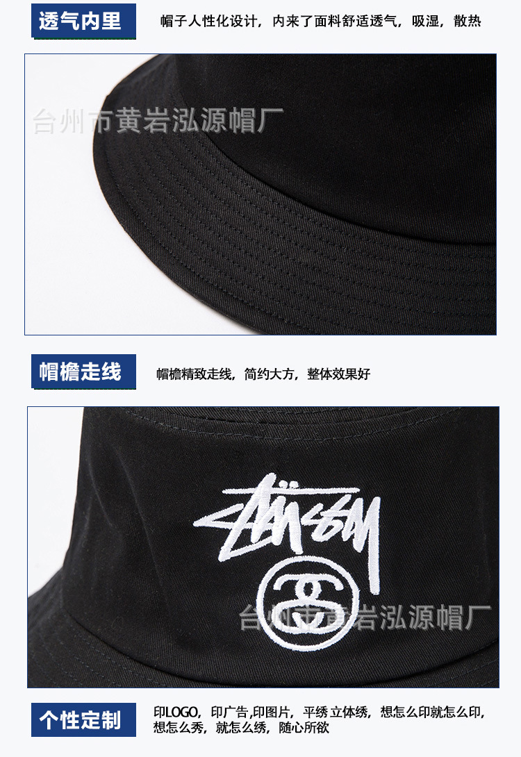 인쇄 가능한 로고로 공식화 된 어부 모자 야외 등산 버킷 모자 남성용 단색 라이트 플레이트 순면 분지 모자 여성 도매스토어 가기