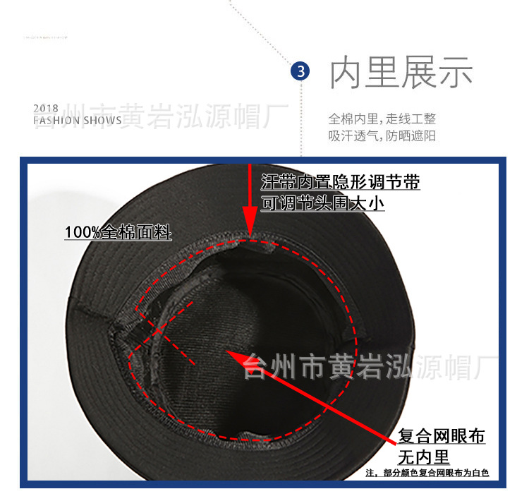 인쇄 가능한 로고로 공식화 된 어부 모자 야외 등산 버킷 모자 남성용 단색 라이트 플레이트 순면 분지 모자 여성 도매