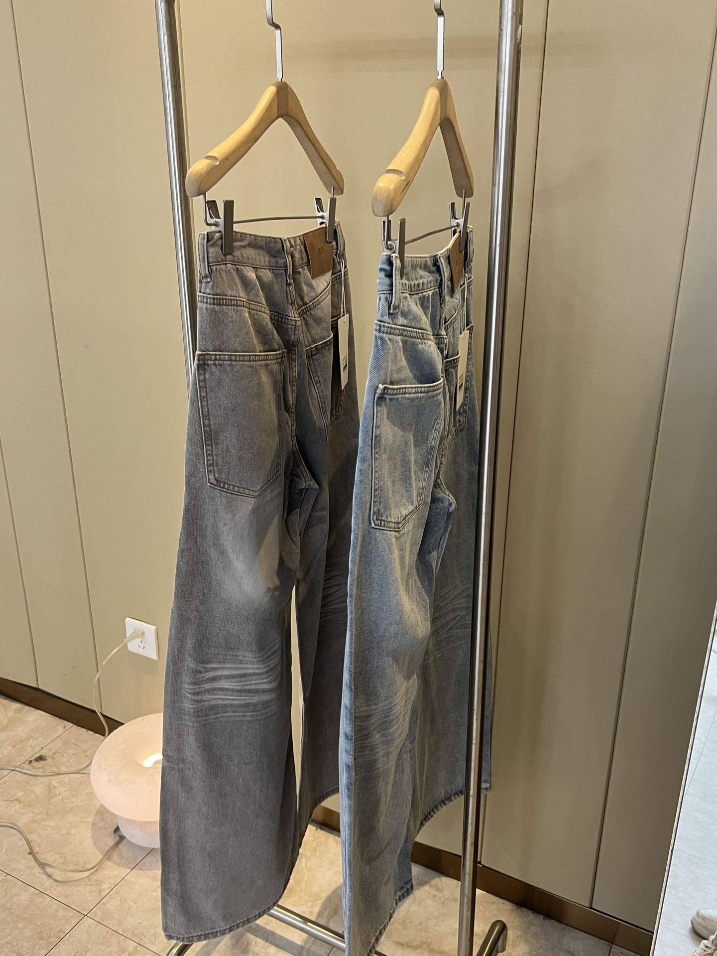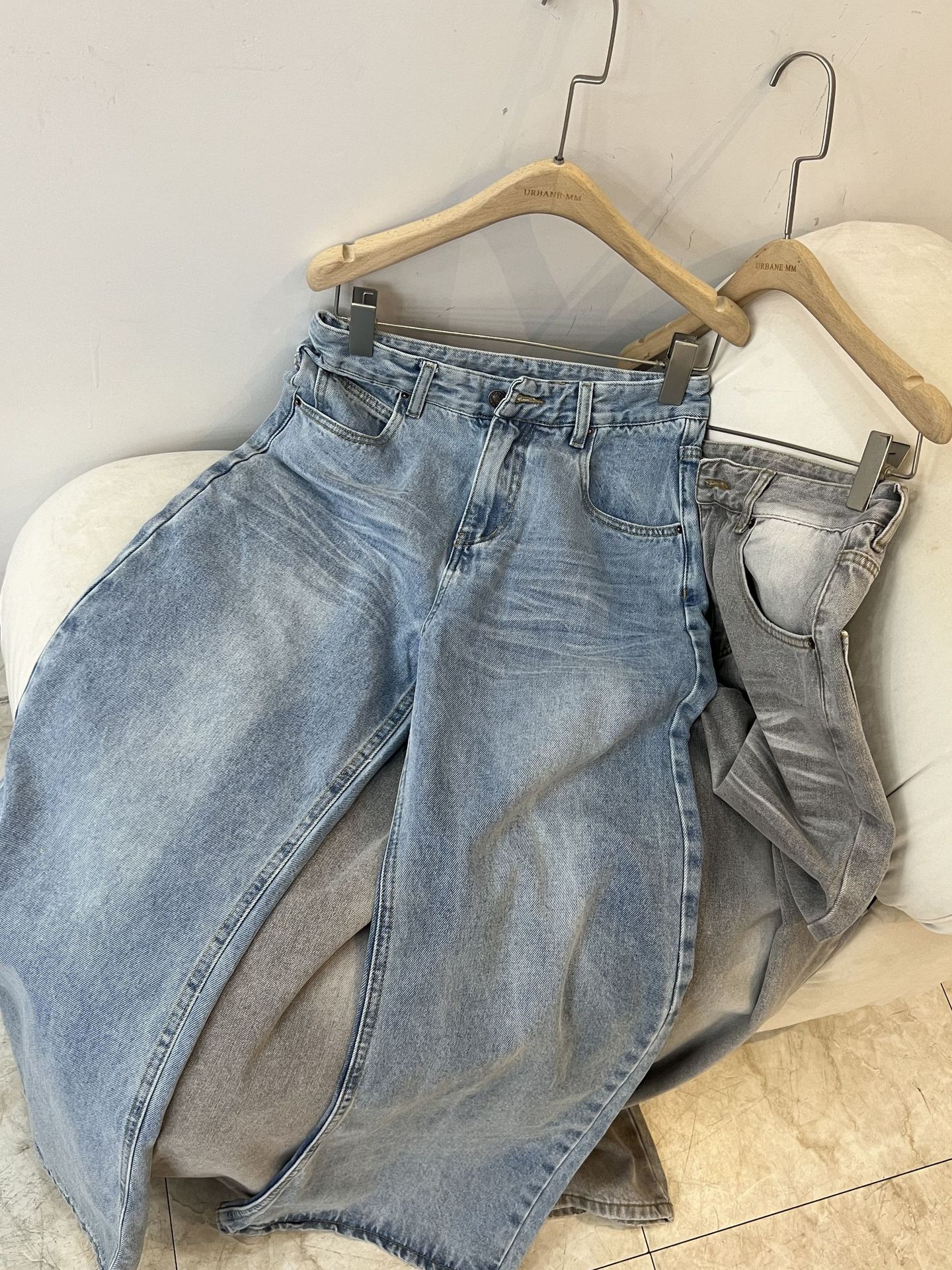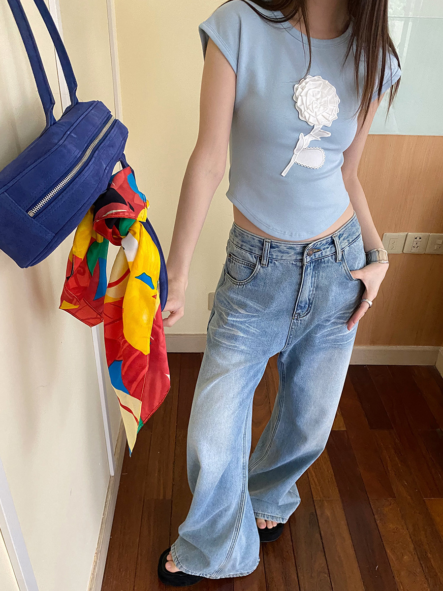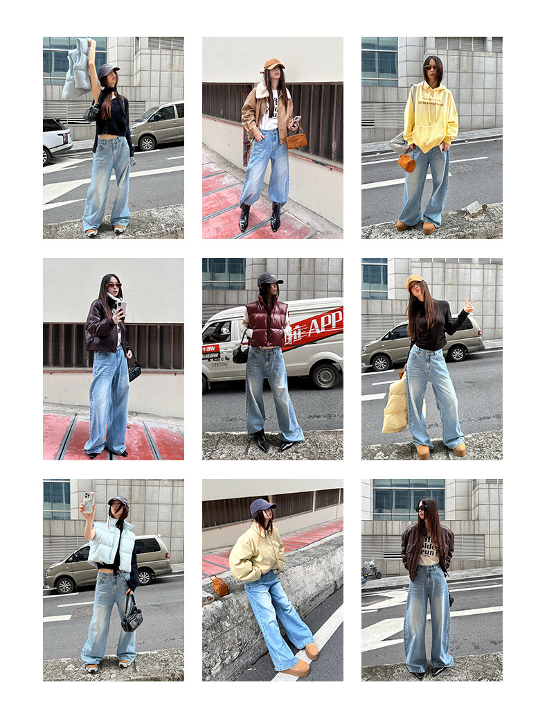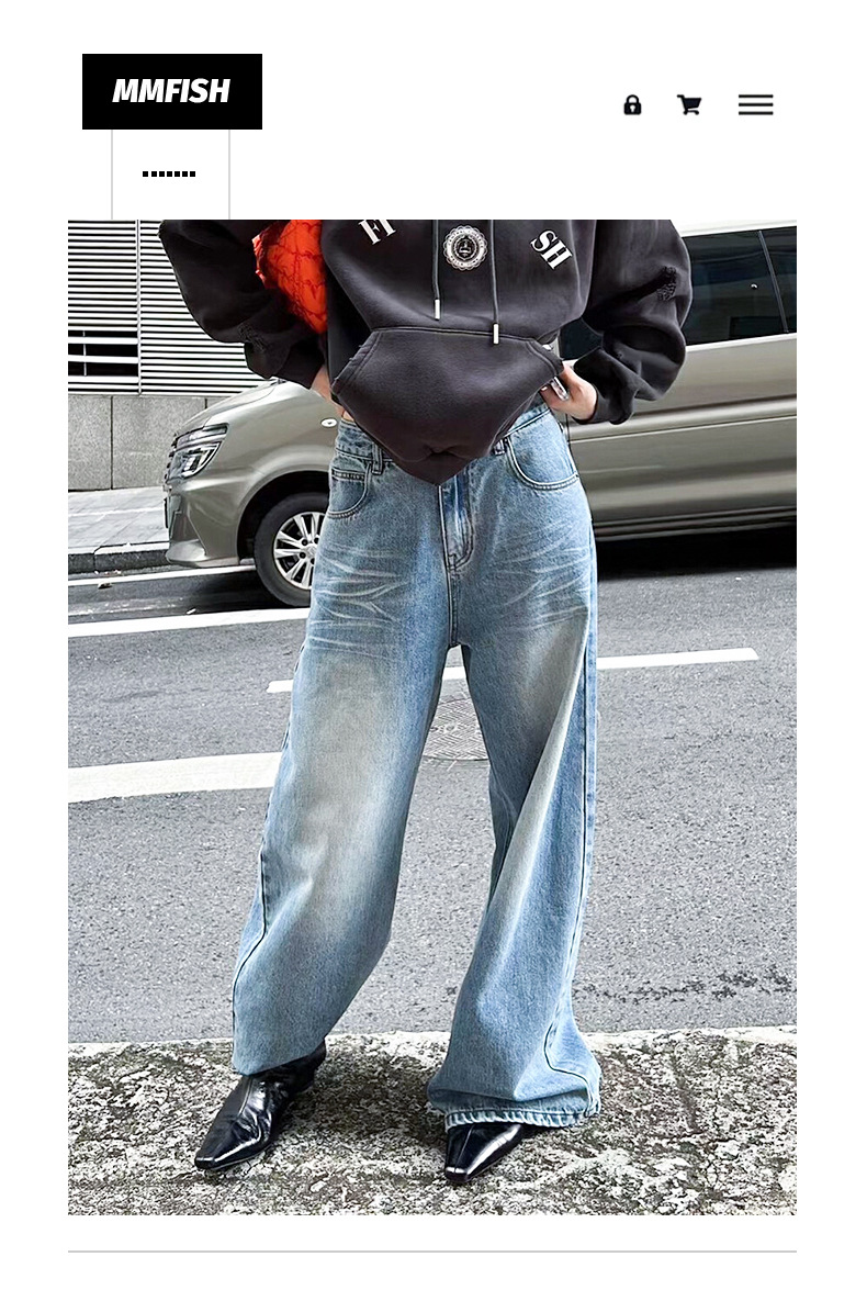 MMFISH 레트로 유행 캐주얼 세척 물 오래 된 느슨한 복용량 스트레이트 슬림 룩 고양이 수염 데님 넓은 다리 바지 K787스토어 가기