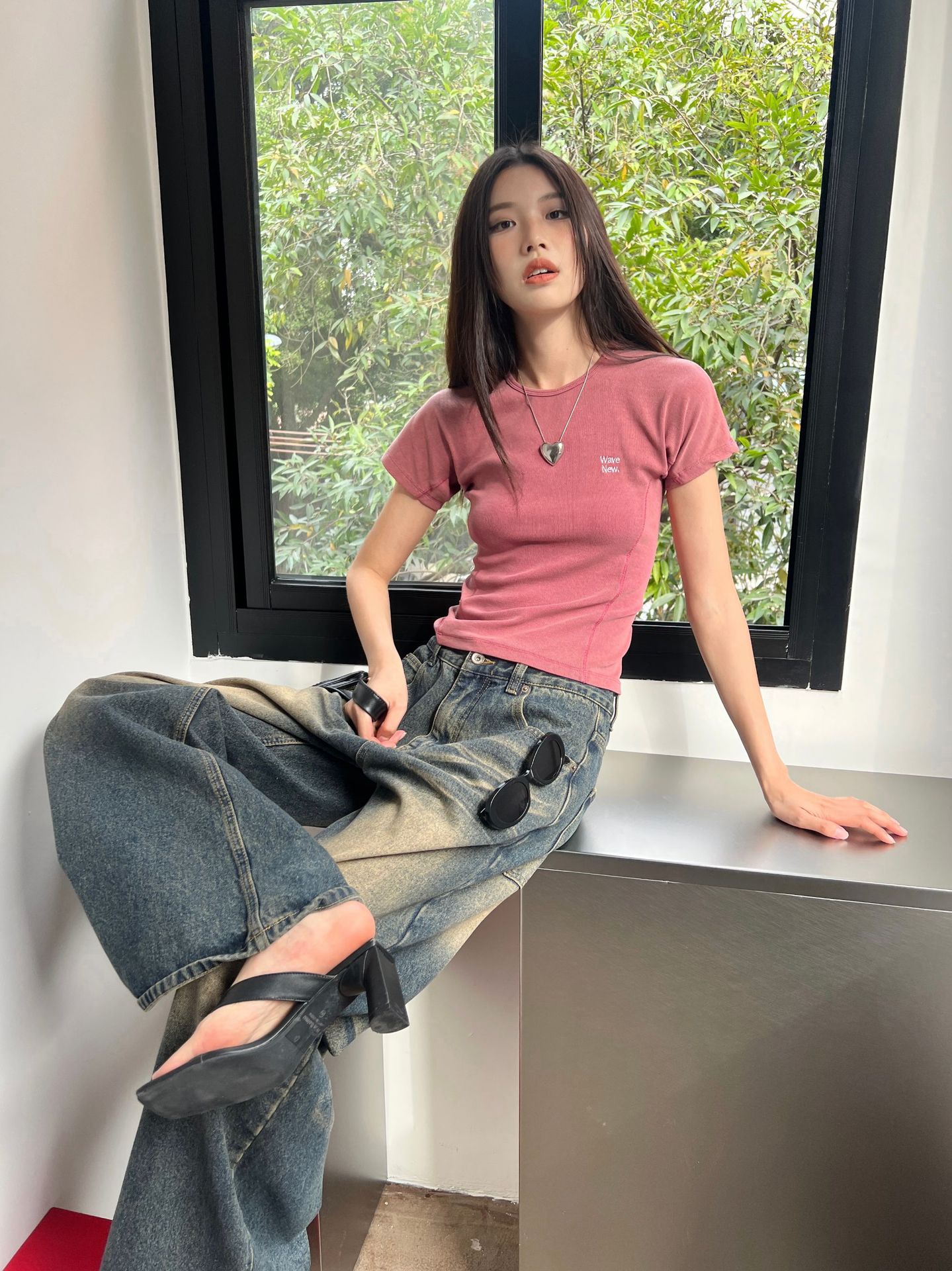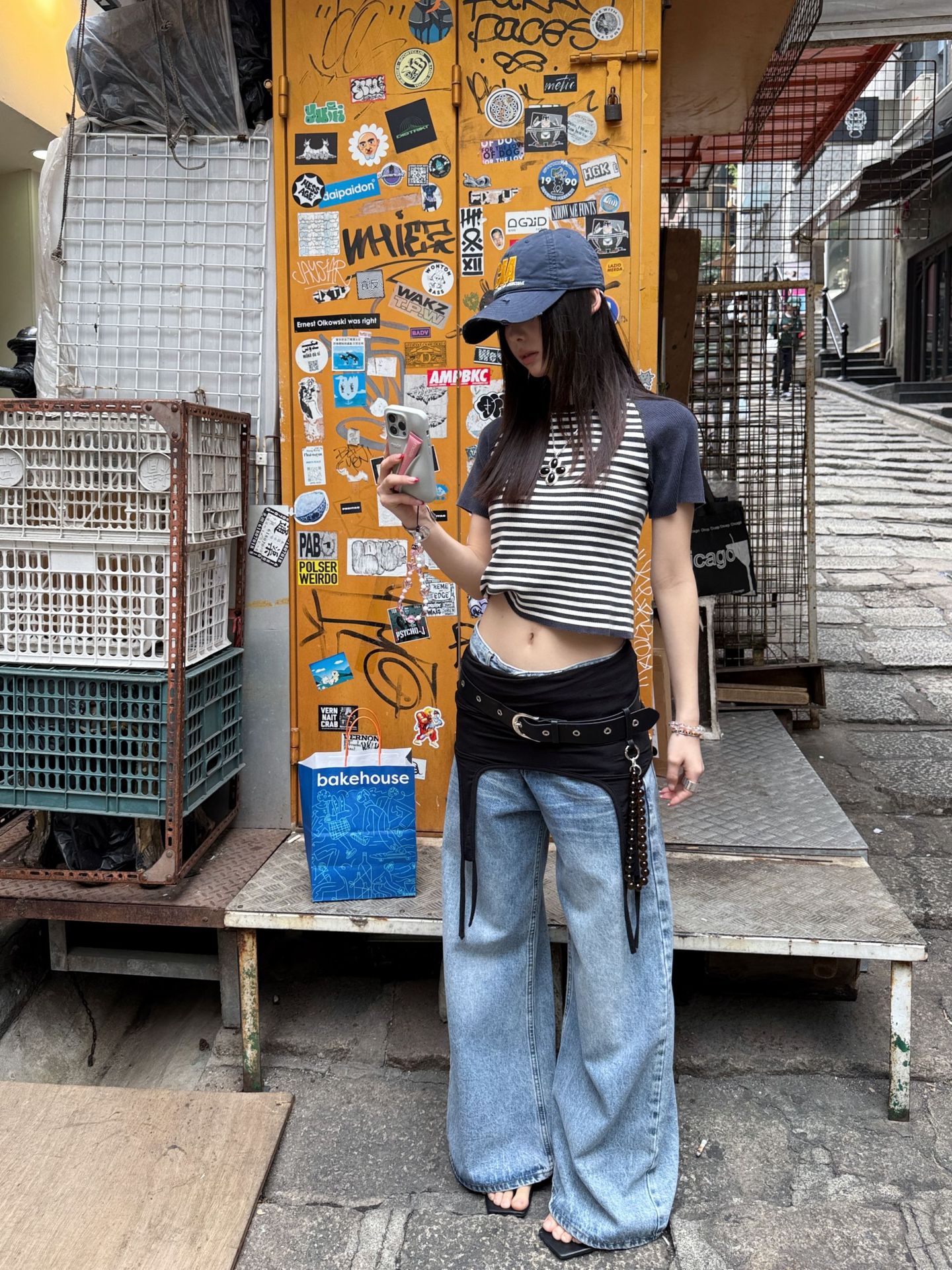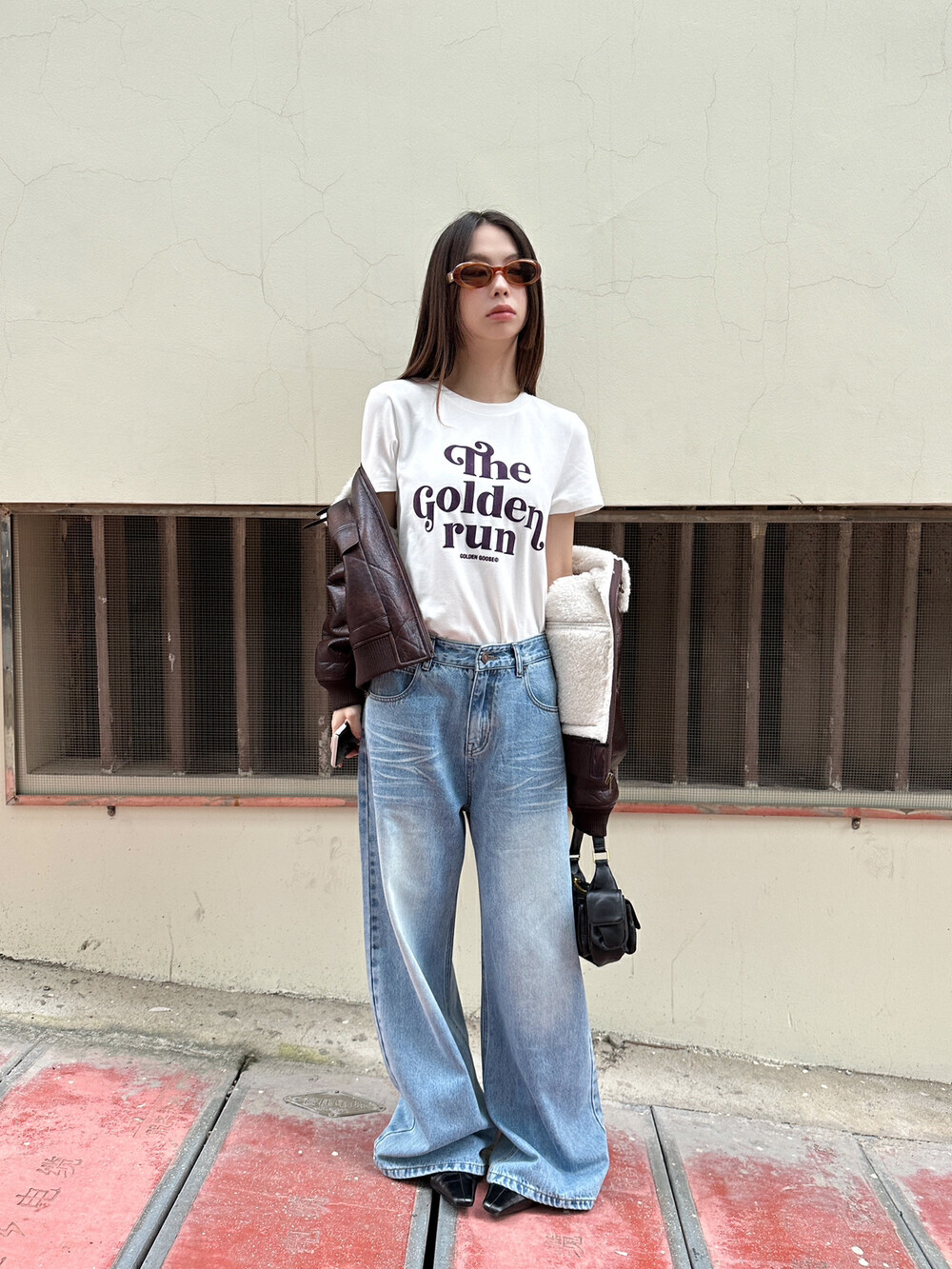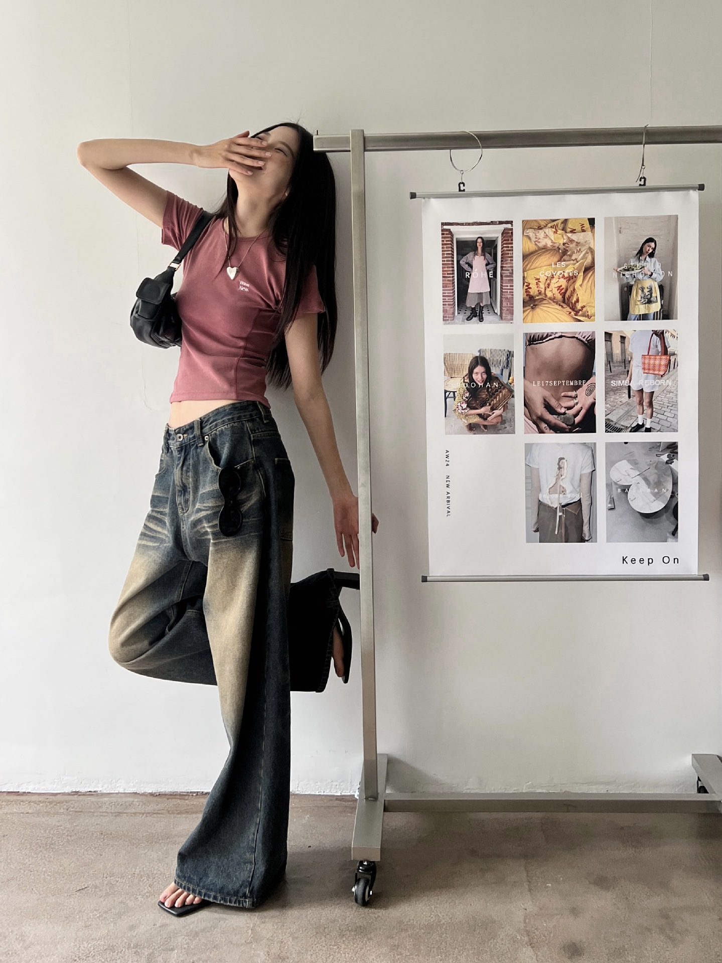 MMFISH 레트로 유행 캐주얼 세척 물 오래 된 느슨한 복용량 스트레이트 슬림 룩 고양이 수염 데님 넓은 다리 바지 K787스토어 가기