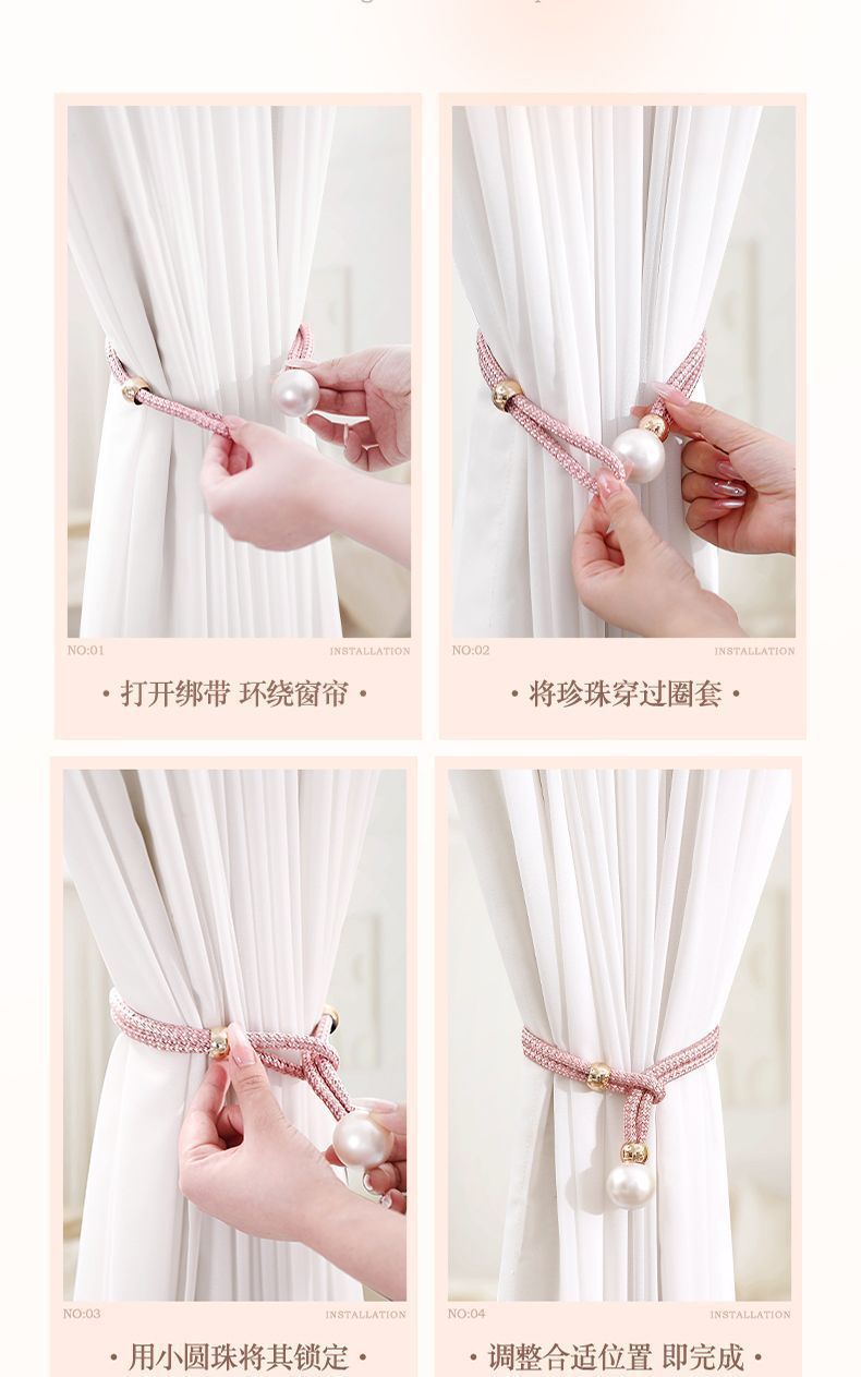 가벼운 럭셔리 간단한 커튼 진주 스트랩 패브릭 장식 레이스 업 비 펀칭 조정 가능한 드로다운 커튼 레이스업 케이블 타이스토어 가기