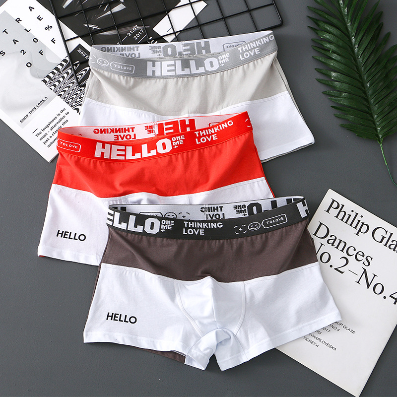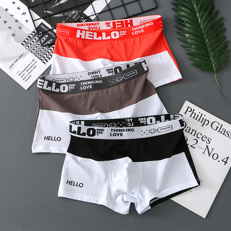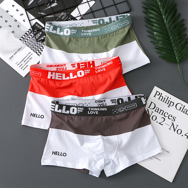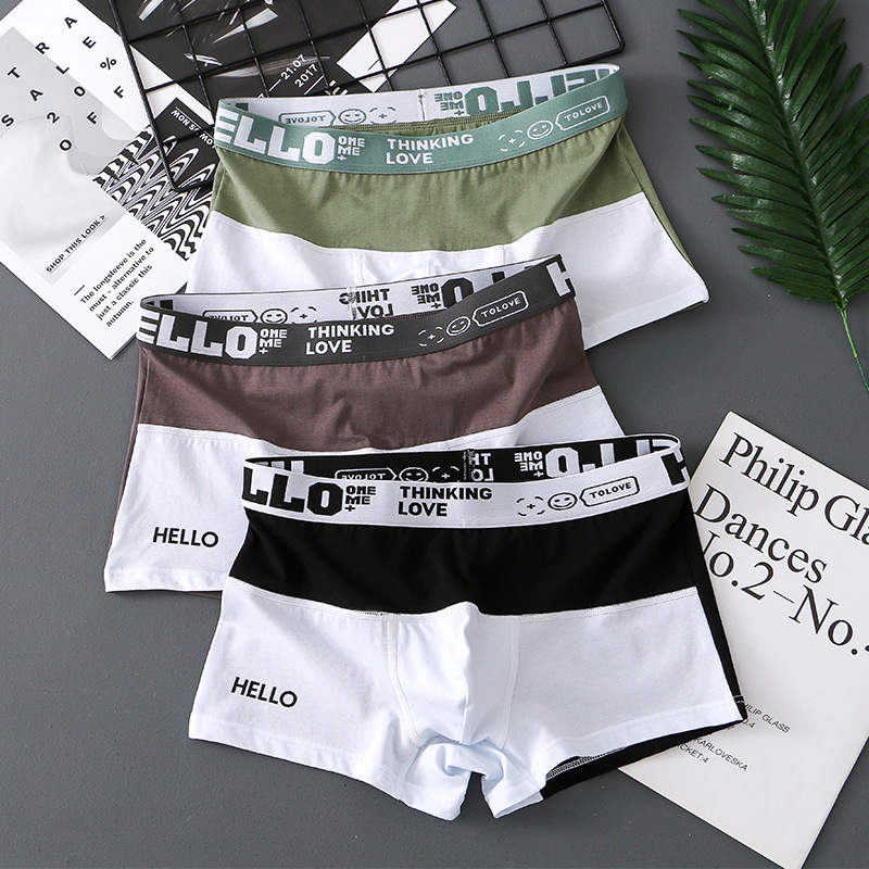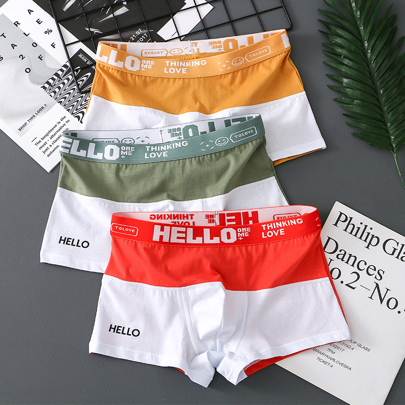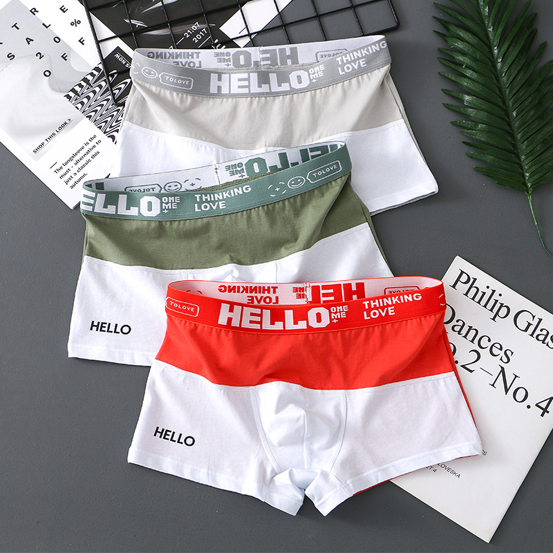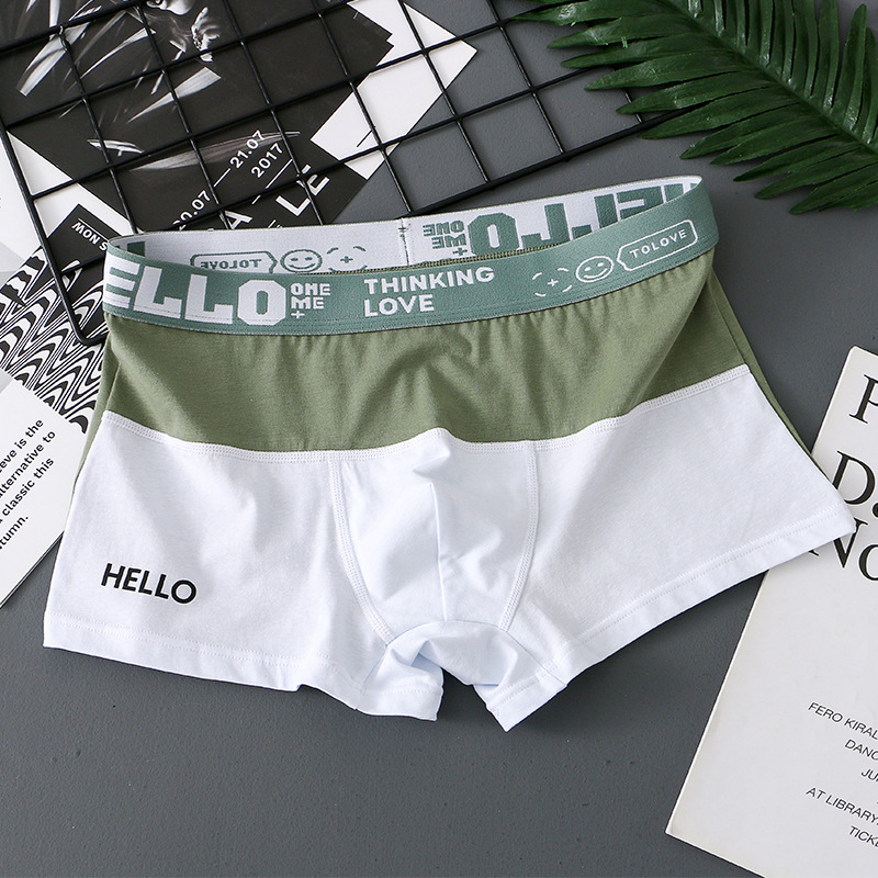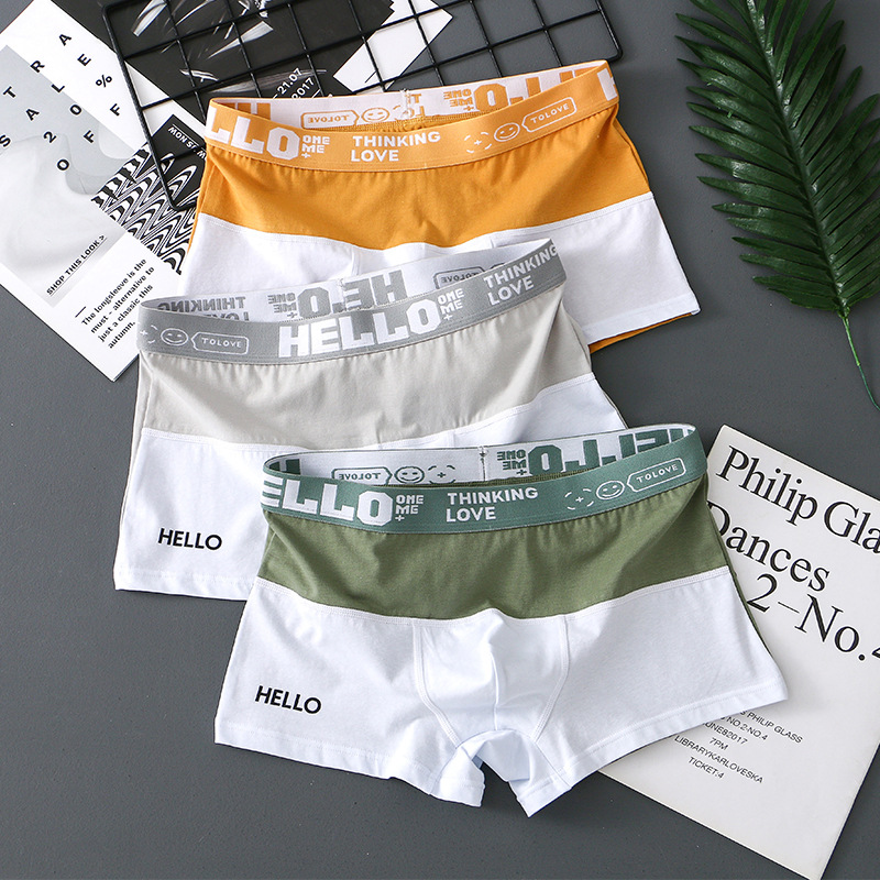 새로운 색상 매칭 남성 속옷 면 도매 청소년 복서 미드 웨이스트 복서 코튼 남성 반바지 홈 팬츠