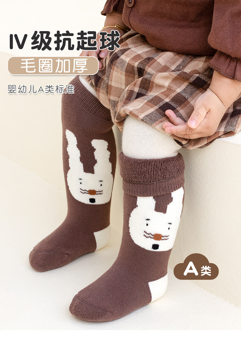 아기 스타킹 2023 겨울 새로운 테리 두꺼운 만화 동물 신생아 어린이 소녀 무릎 양말