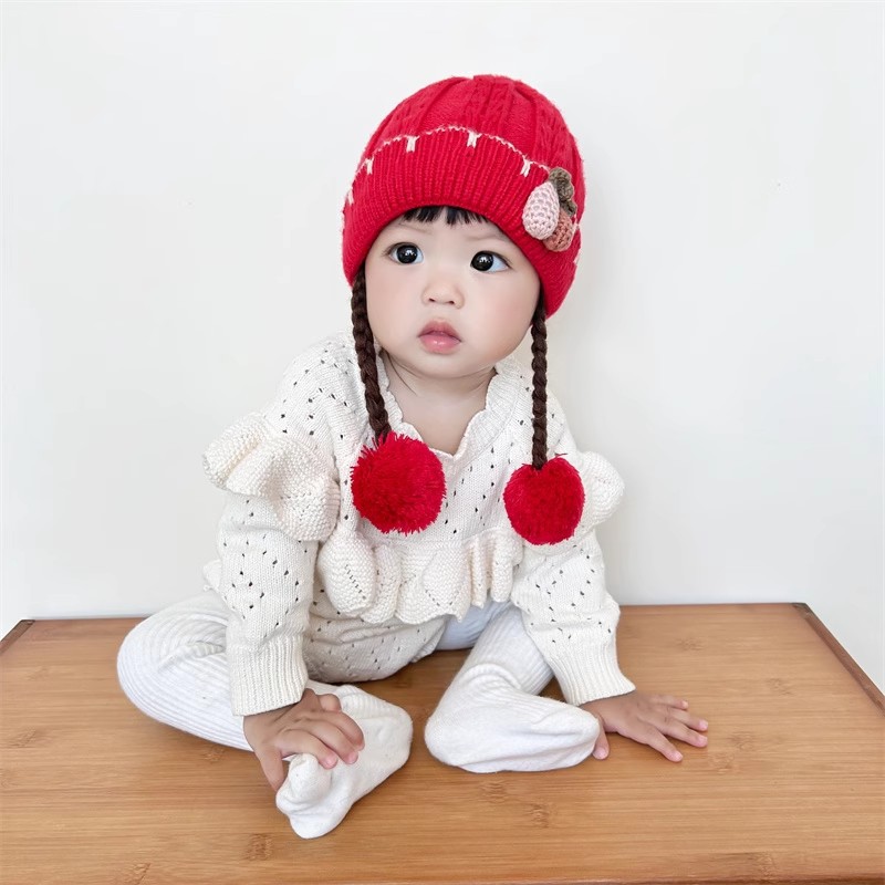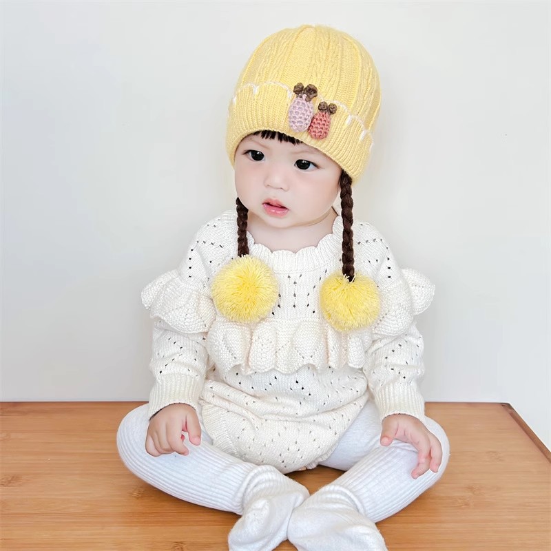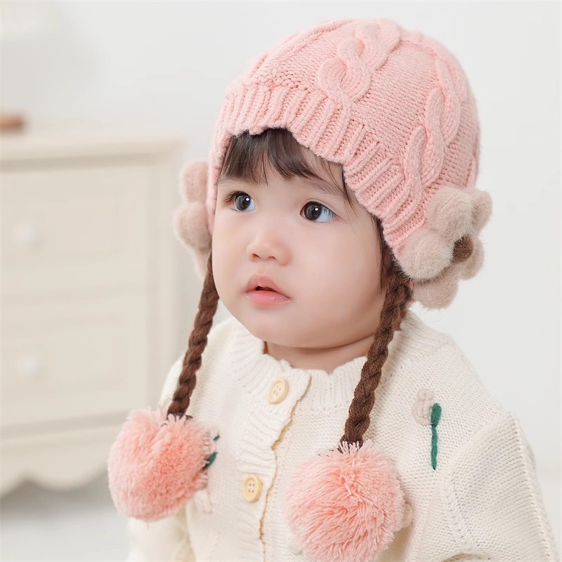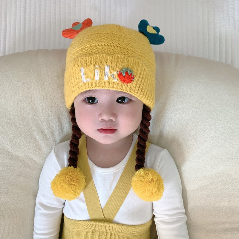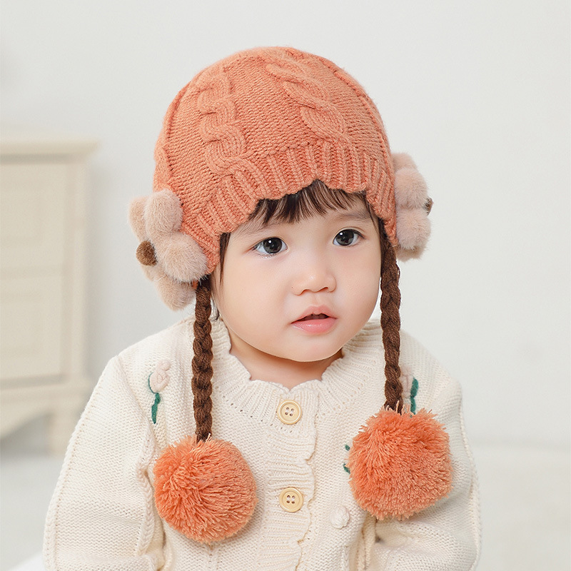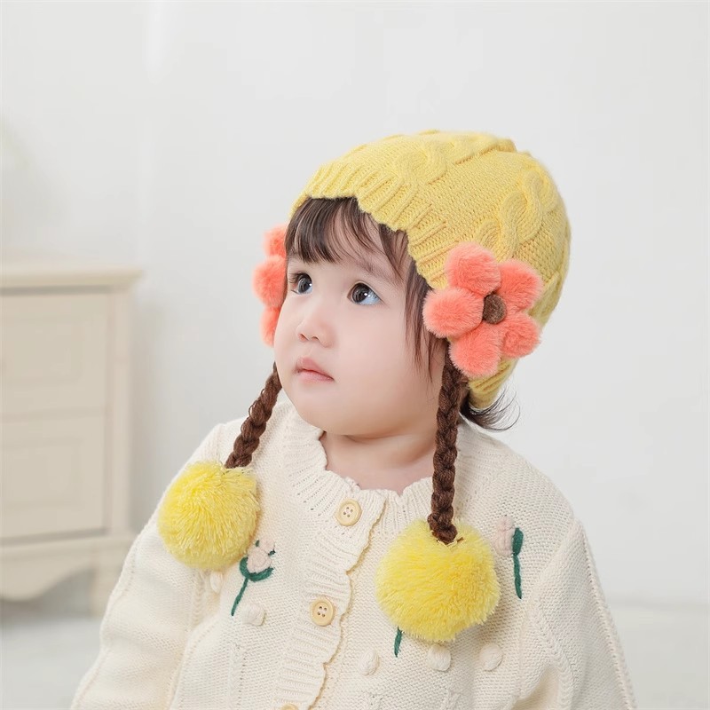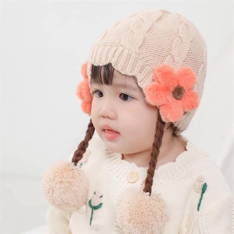 꽃 헤어 볼 가발 풀오버 니트 모자 소녀의 여행 따뜻한 공주 모자 소녀의 귀여운 머리띠 울 모자스토어 가기