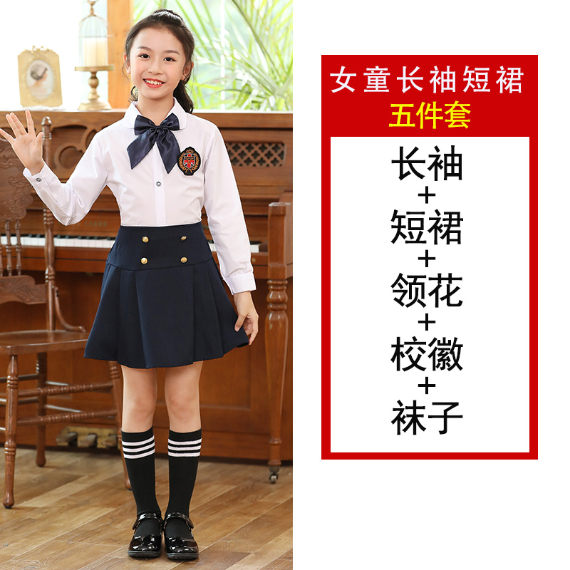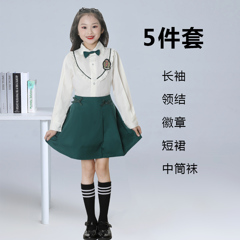 • 6 조끼 스커트 긴 소매 나비 넥타이 배지 양말