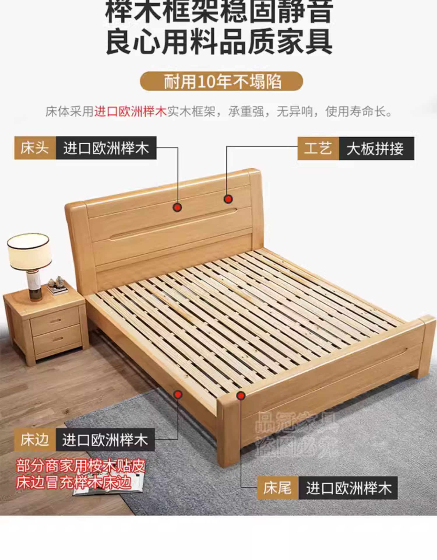 쌀 쌀 5 너도밤 나무 직판매 22002 구조 811 단단한 나무 침대 더블 침대 공장 장붓 구멍 및 장부 조인트 더블 쌀 나무 침대 200스토어 가기