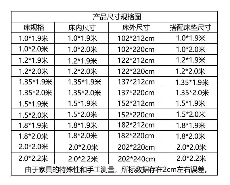 • 침대 + 20cm 스프링 매트리스 + 침대 옆 탁자 1 개