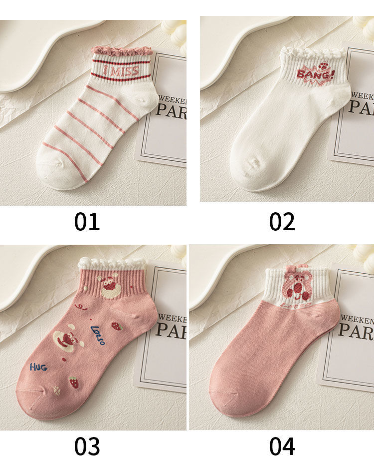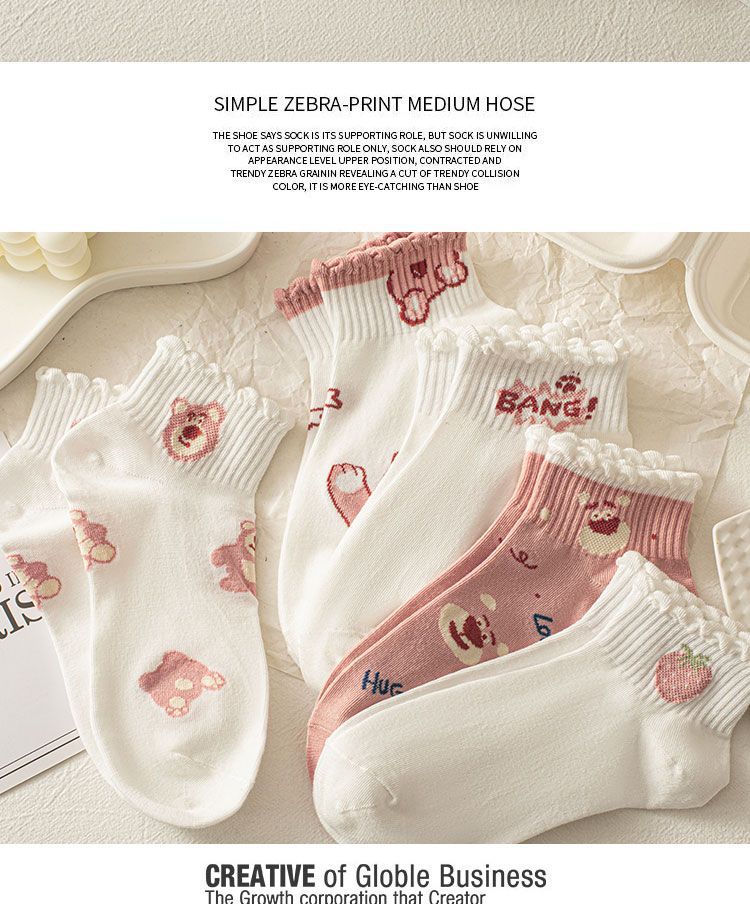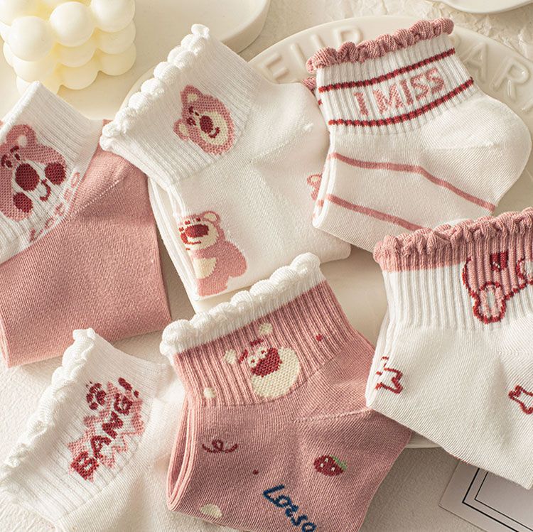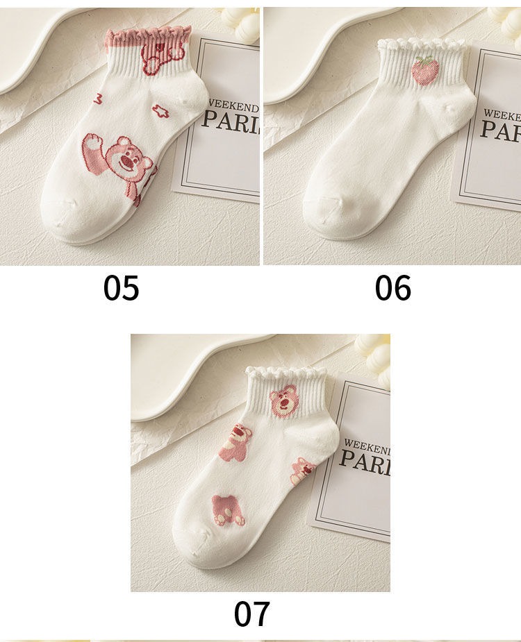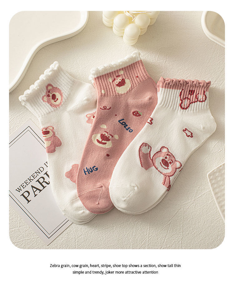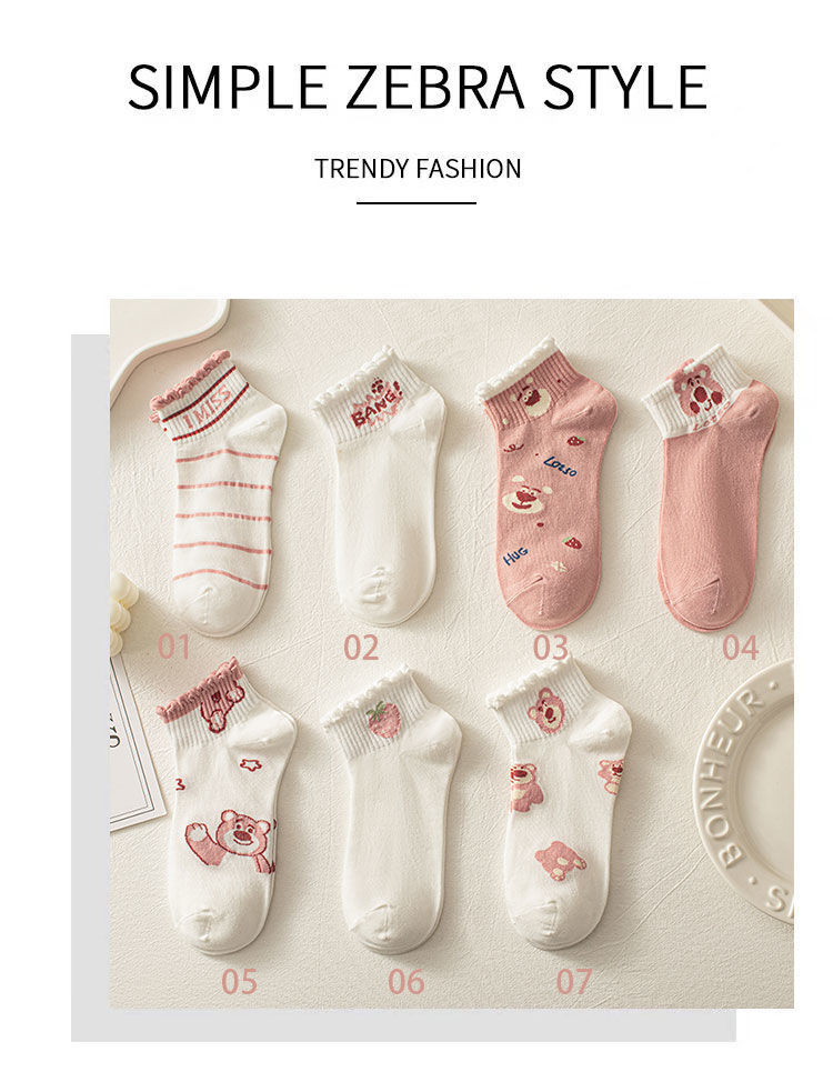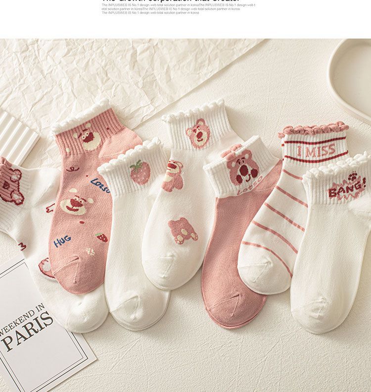 딸기 곰 양말 여성용 여름 얇은 핑크 짧은 양말 에 트렌디 한 고 가치 모든 경기 귀여운 학생 얕은 탑 보트 양말스토어 가기