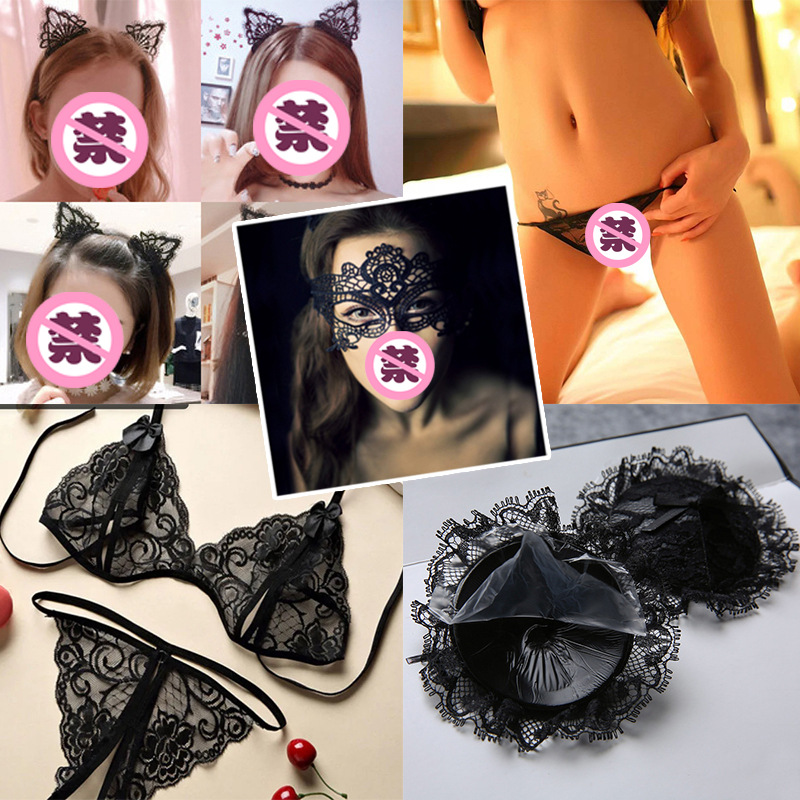 헤드 기어 섹시한 속옷 모자 유방 스티커 보석 조합 SM 실크 스타킹 T 자형 내부 바지 아이섀치 레이스 교육 유방 스티커스토어 가기