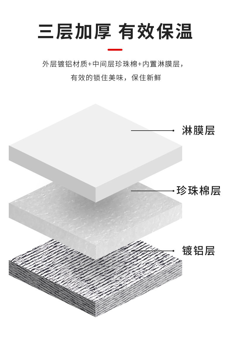 工厂现货销售外卖铝箔保温袋,低价批发供应,每一个品质保证。日产50000个,量大价优,欢迎客户来电咨询。产品标价不含增值税【需要开票请联系客服】